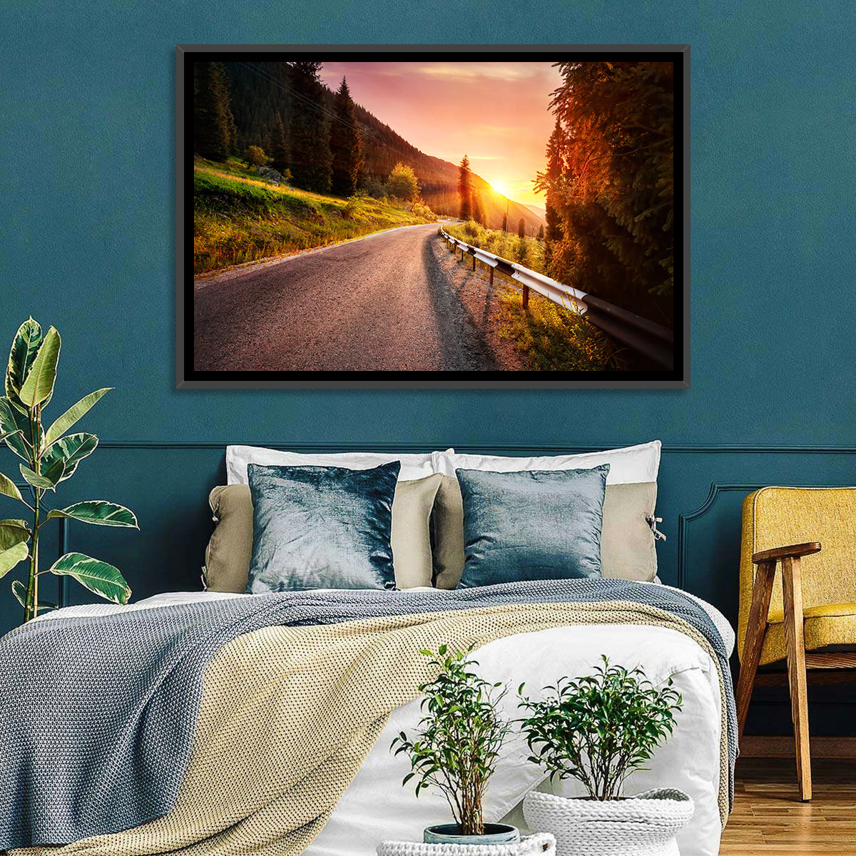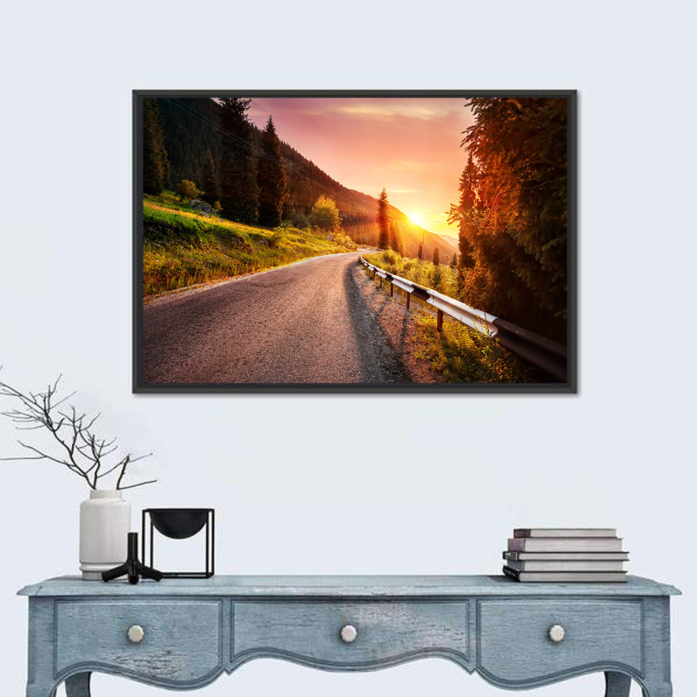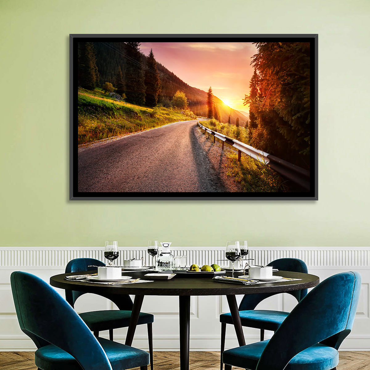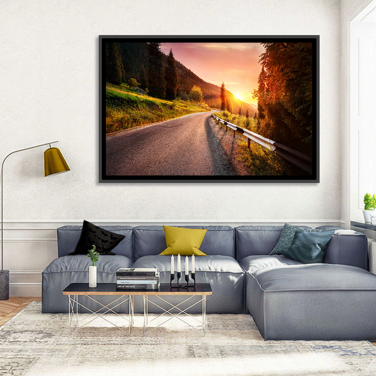 Whether you love art or just looking to decorate your home, this striking and powerful Countryside Road Sunrise Wall Art is an eye-catching decor element that can't go unnoticed. This art print by CanvasPiece is designed to resonate and spark a mix of feelings.