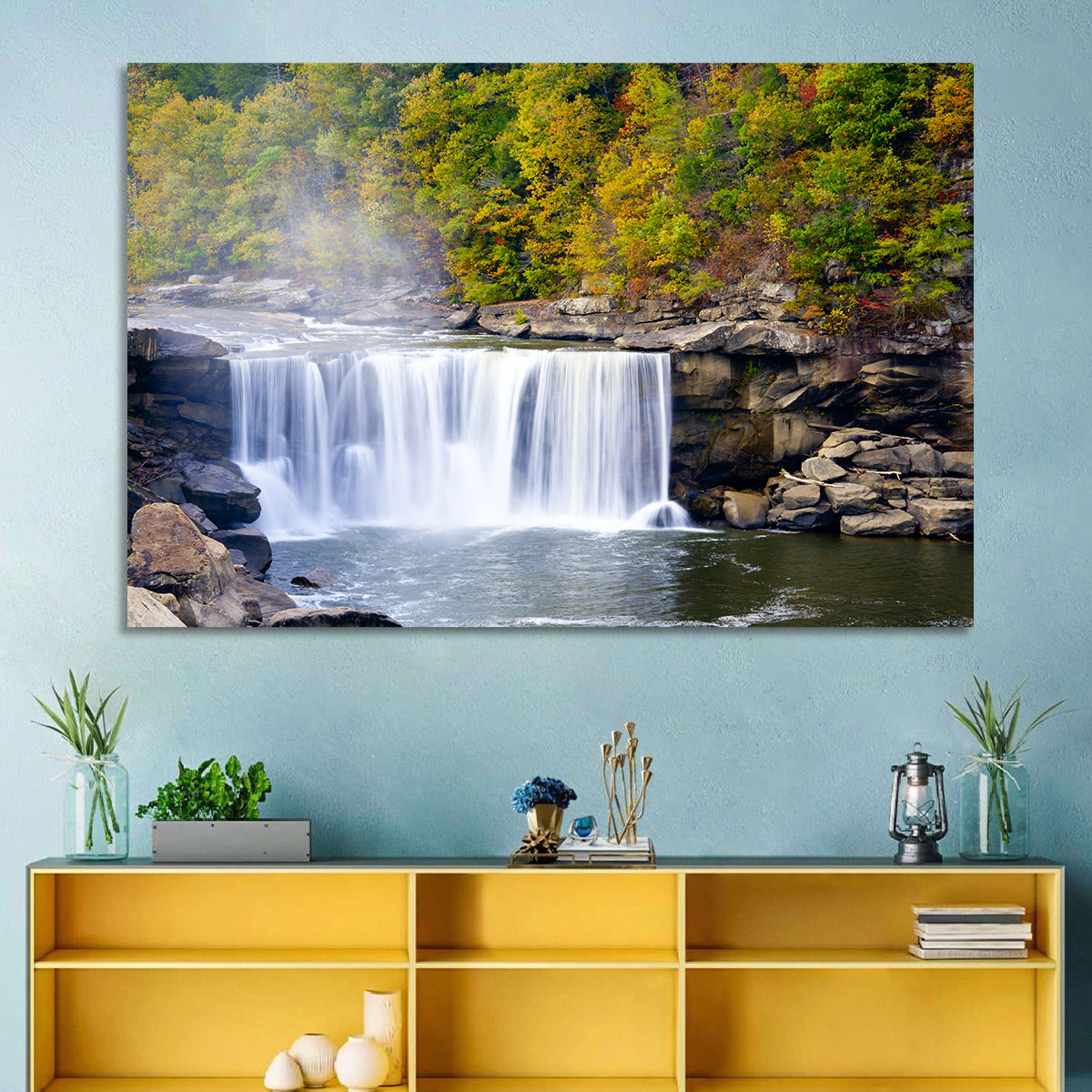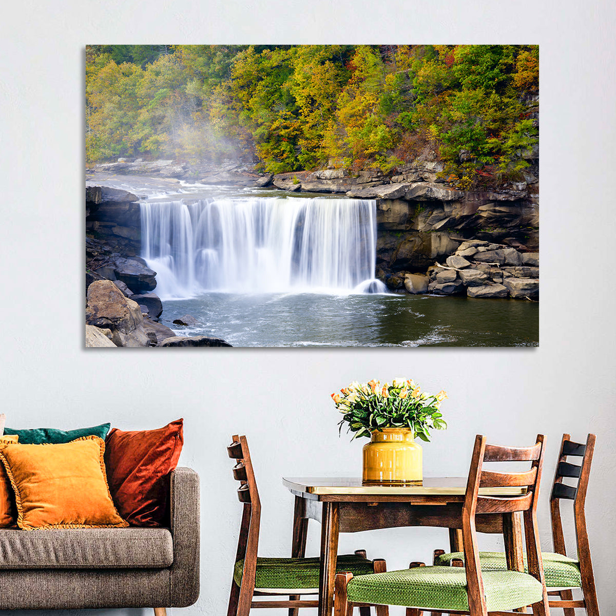 Whether you love art or just looking to decorate your home, this striking and powerful Cumberland Falls Wall Art is an eye-catching decor element that can't go unnoticed. This art print by CanvasPiece is designed to resonate and spark a mix of feelings.