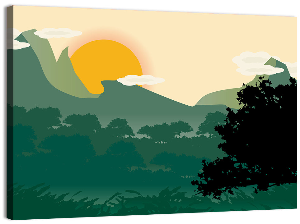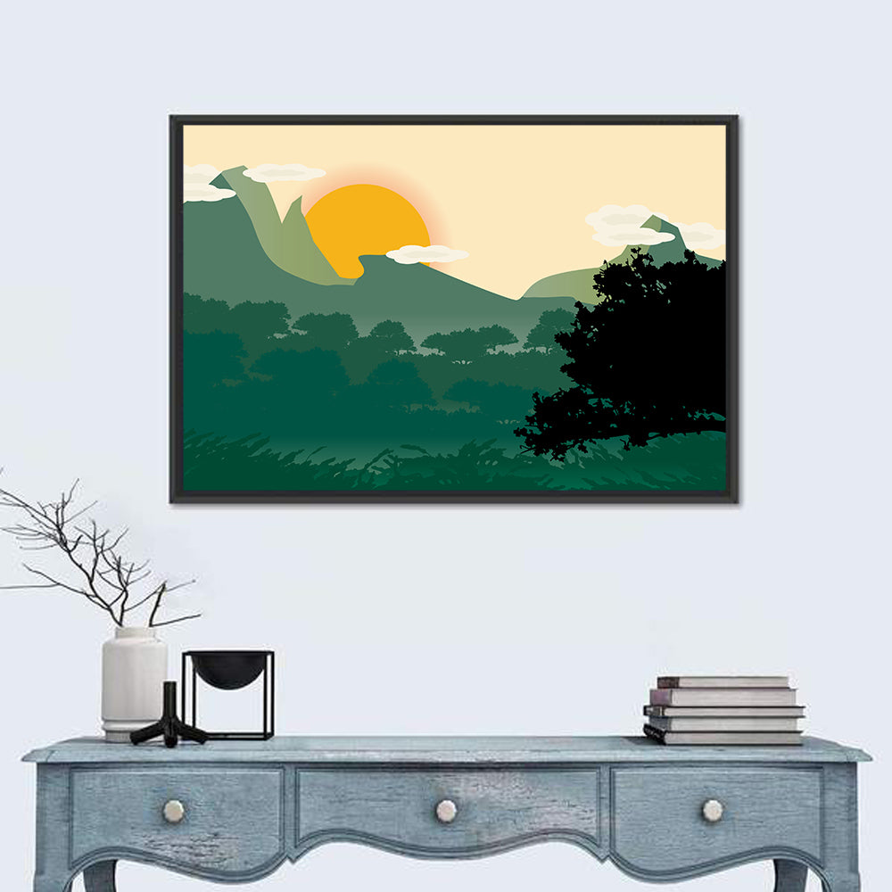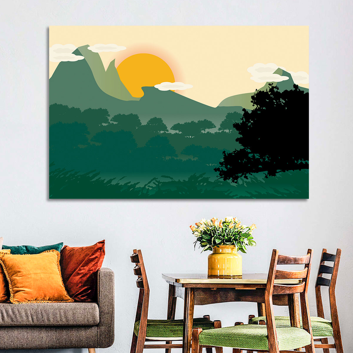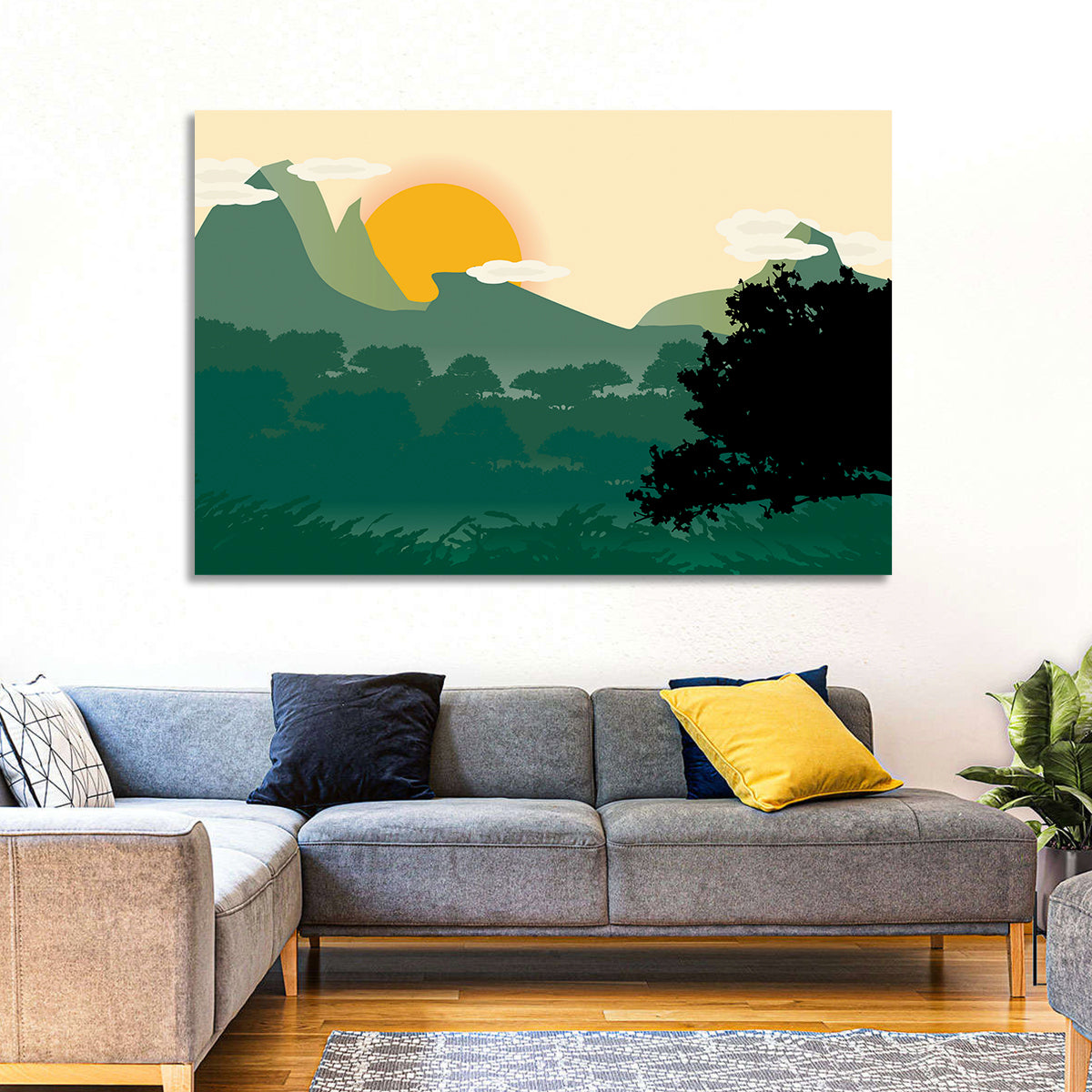 Whether you love art or just looking to decorate your home, this striking and powerful Digital Mountains Forest Wall Art is an eye-catching decor element that can't go unnoticed. This art print by CanvasPiece is designed to resonate and spark a mix of feelings.