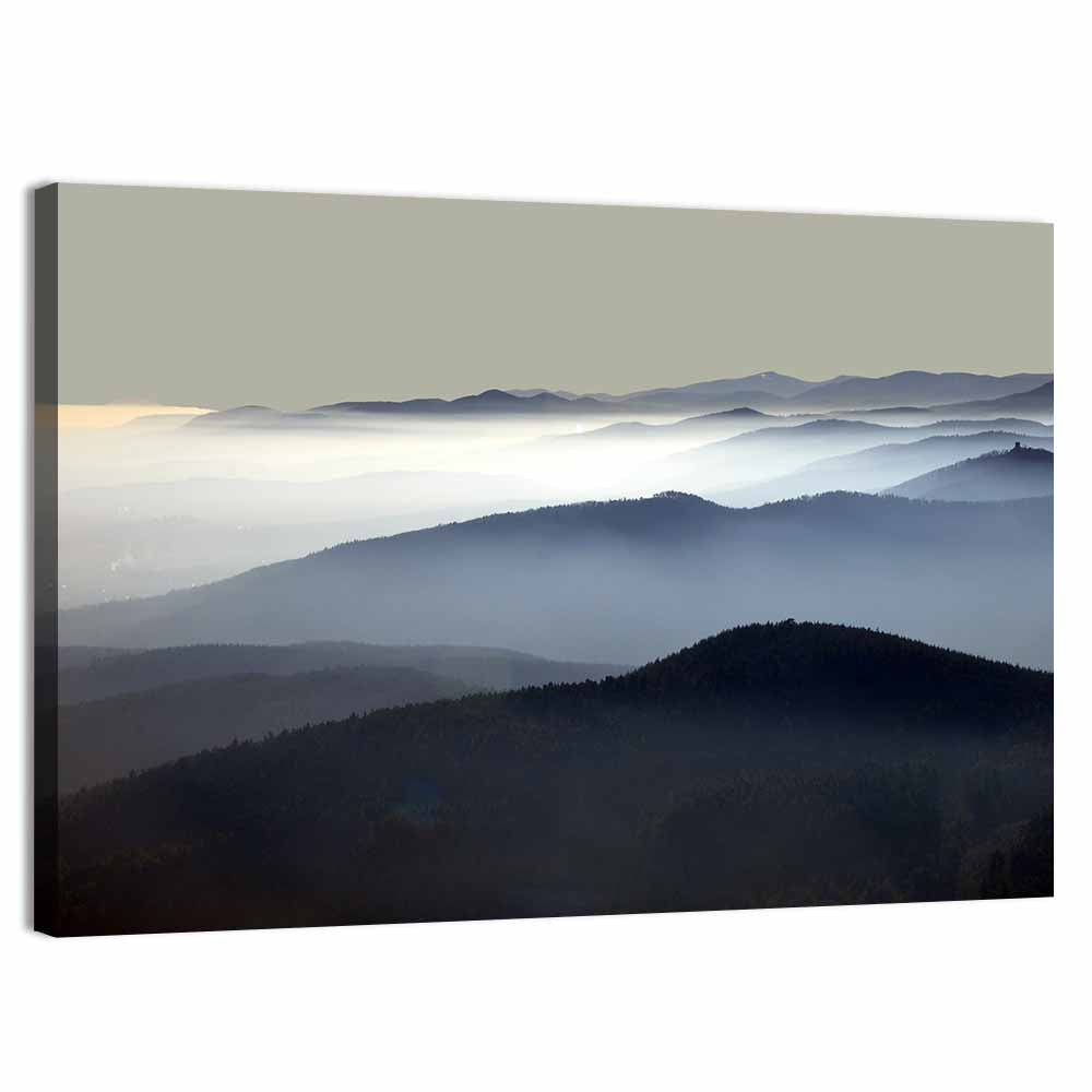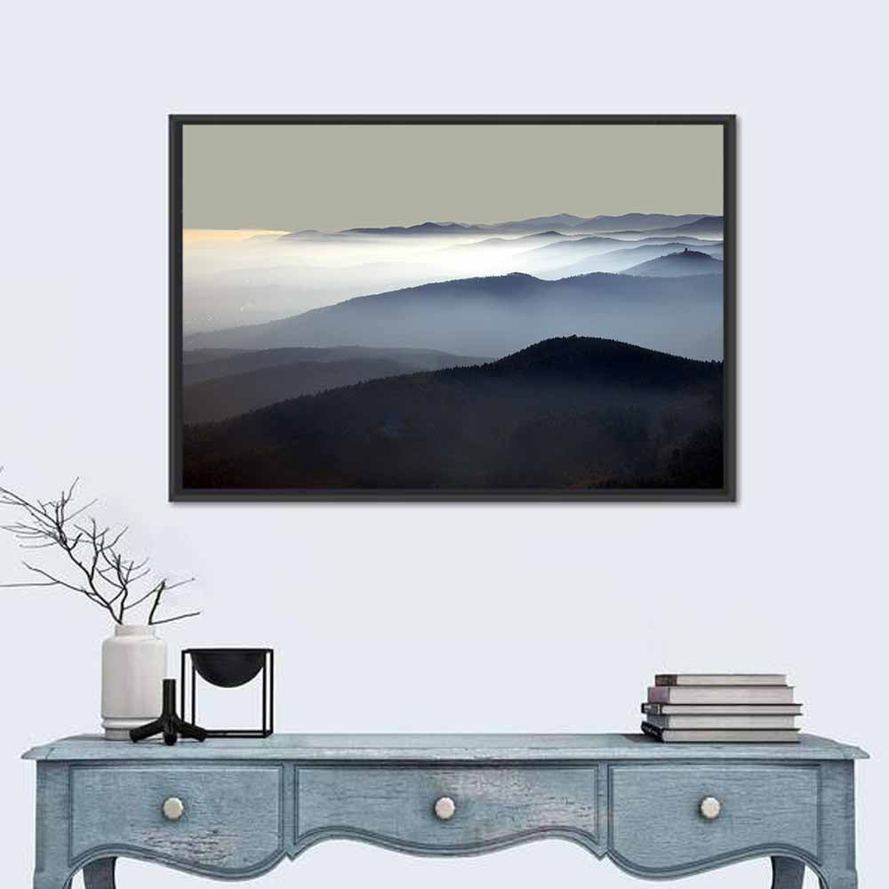 Whether you love art or just looking to decorate your home, this striking and powerful distant mountain silhouette in Alsace, France Wall Art is an eye-catching decor element that can't go unnoticed. This art print by CanvasPiece is designed to resonate and spark a mix of feelings.
