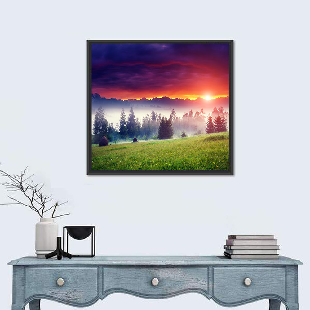 A high-quality print on canvas material, stretched over a wooden frame for a textured and artistic look.