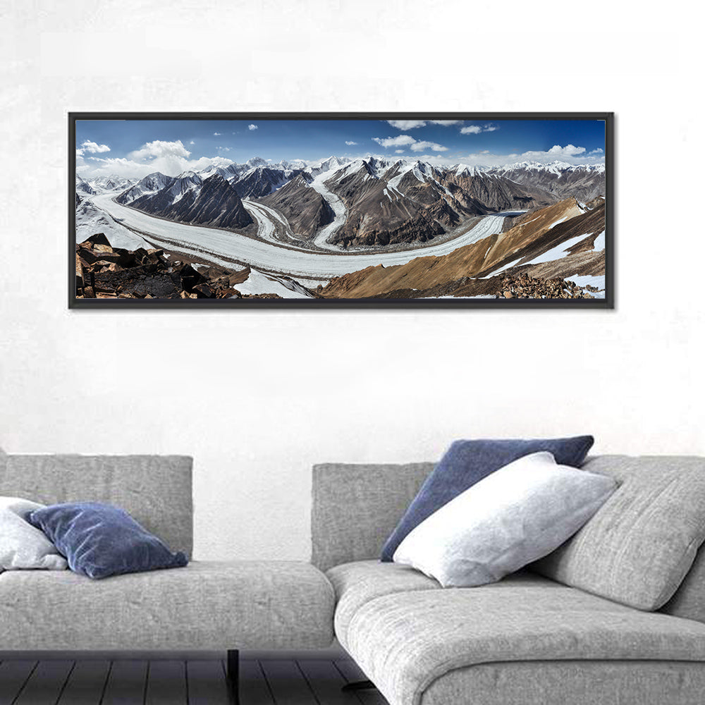 Whether you love art or just looking to decorate your home, this striking and powerful Fedchenko Glacier Wall Art is an eye-catching decor element that can't go unnoticed. This art print by CanvasPiece is designed to resonate and spark a mix of feelings.