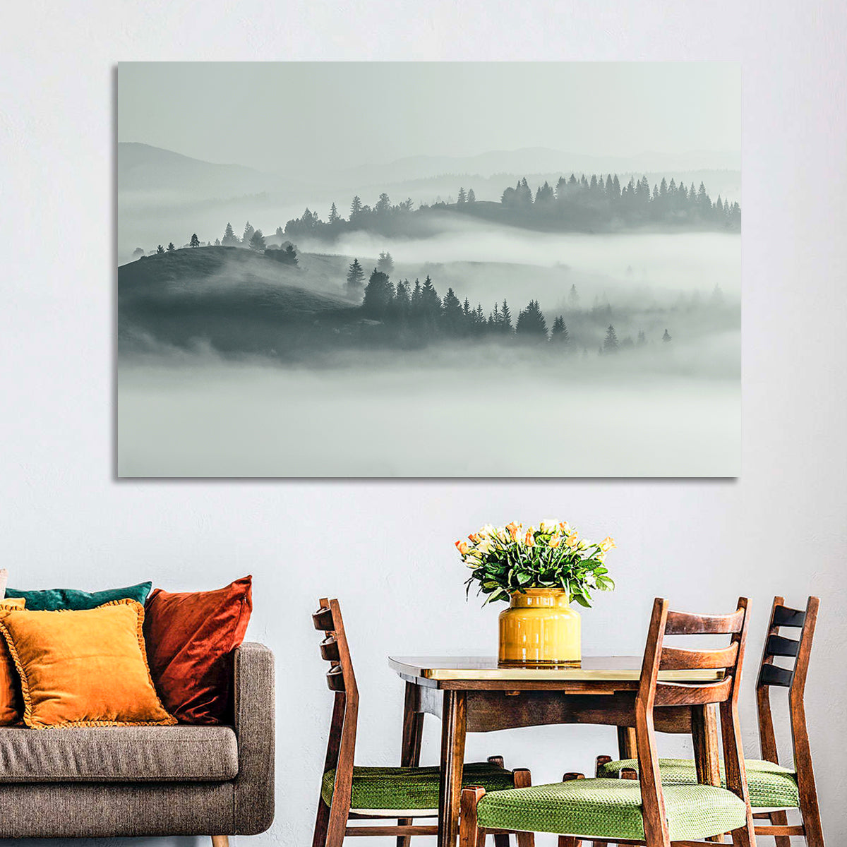 Whether you love art or just looking to decorate your home, this striking and powerful Foggy Carpathian Landscape Wall Art is an eye-catching decor element that can't go unnoticed. This art print by CanvasPiece is designed to resonate and spark a mix of feelings.