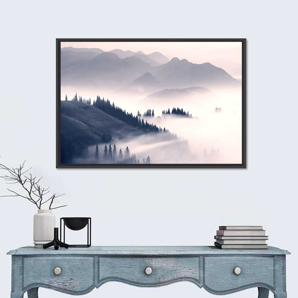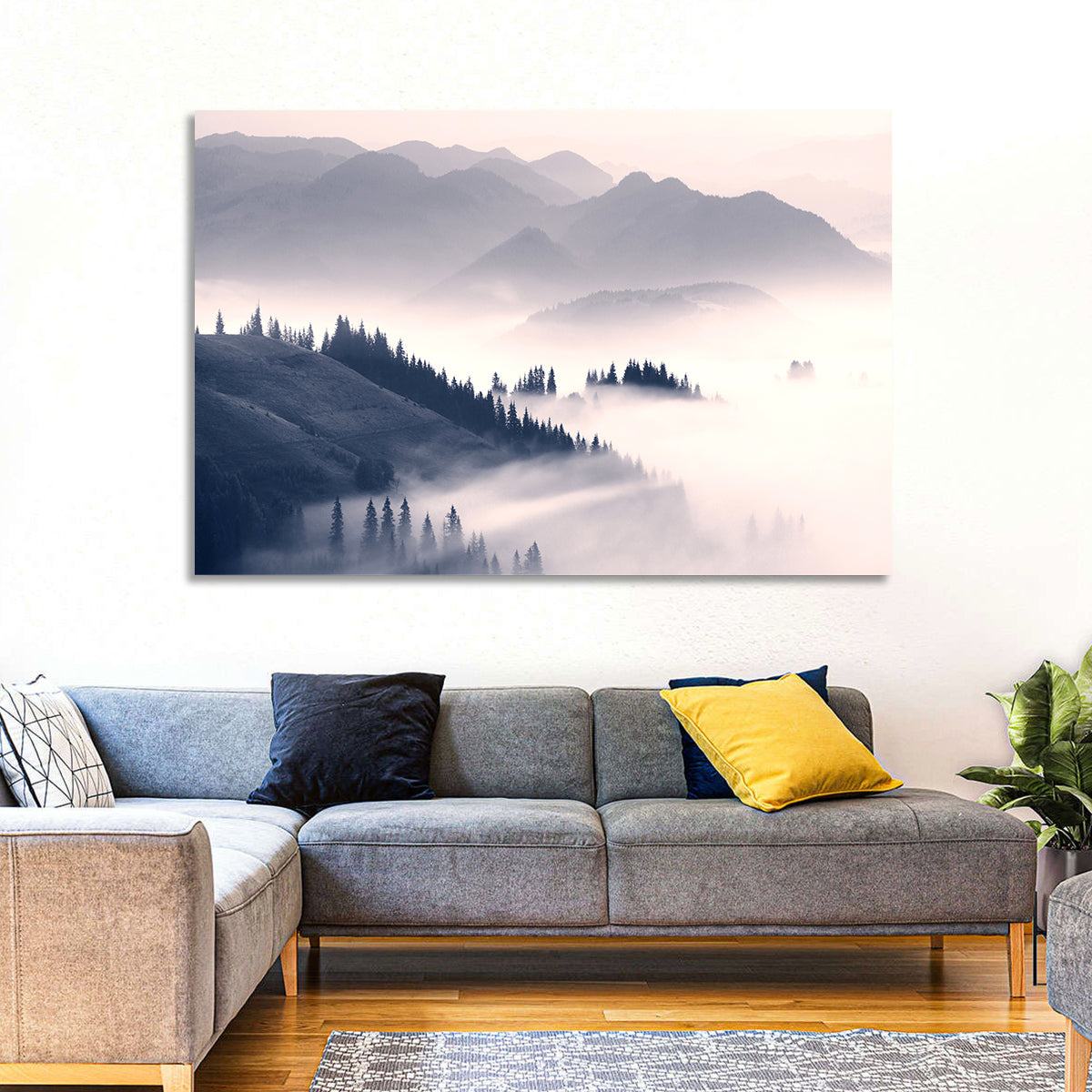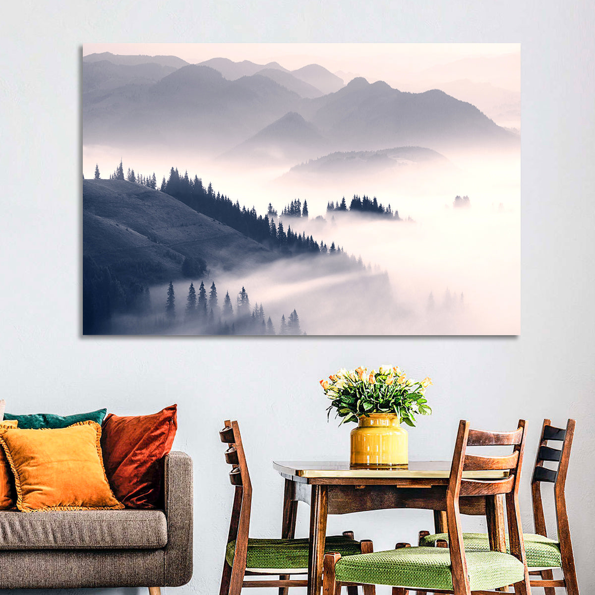 Whether you love art or just looking to decorate your home, this striking and powerful Foggy Carpathian Mountains Wall Art is an eye-catching decor element that can't go unnoticed. This art print by CanvasPiece is designed to resonate and spark a mix of feelings.