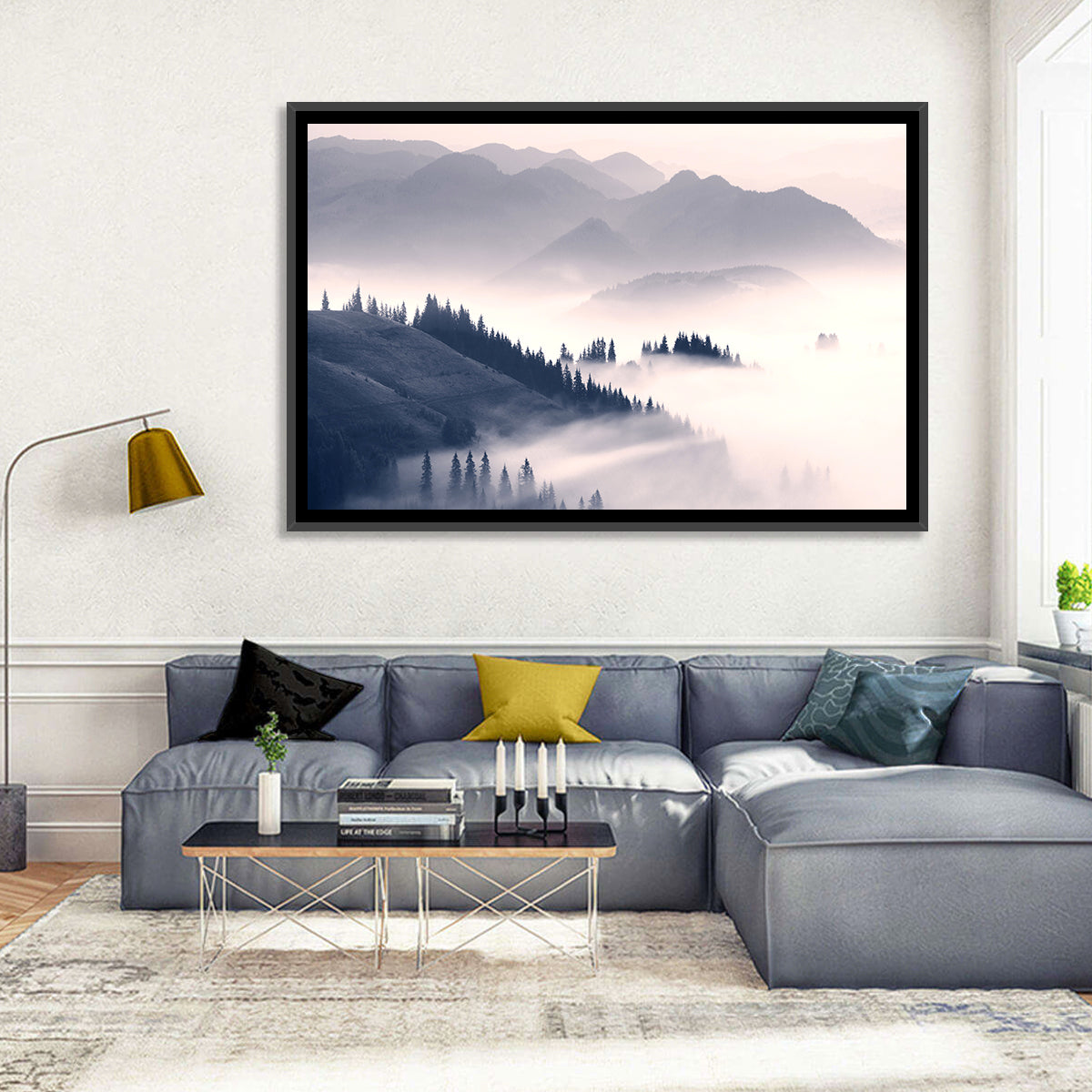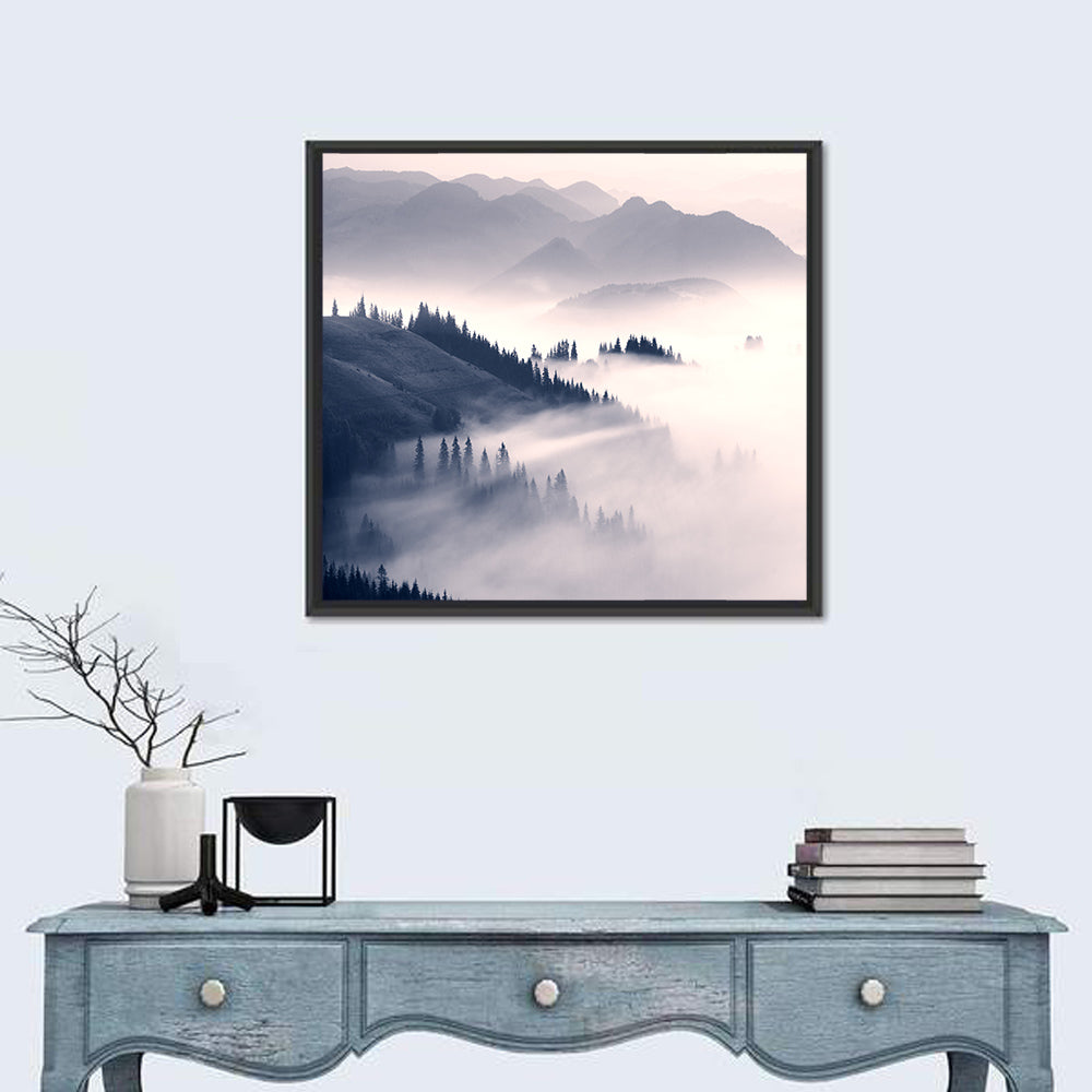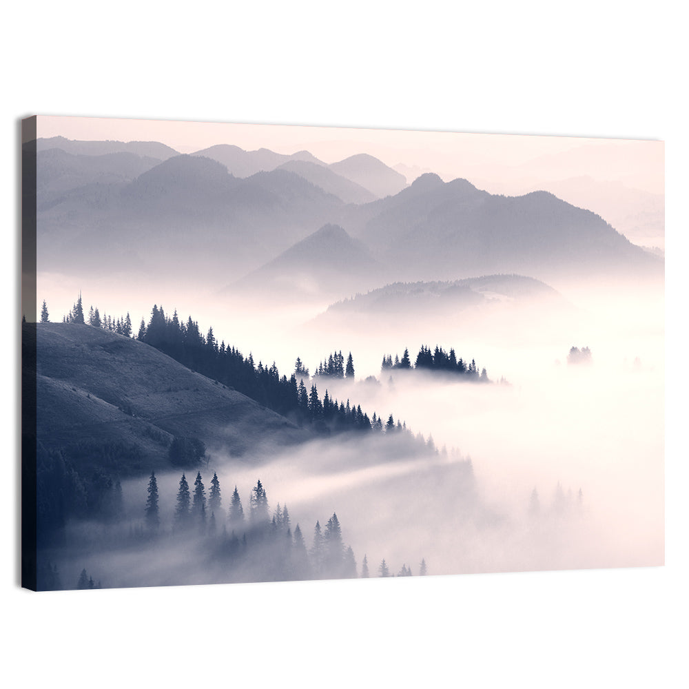 Whether you love art or just looking to decorate your home, this striking and powerful Foggy Carpathian Mountains Wall Art is an eye-catching decor element that can't go unnoticed. This art print by CanvasPiece is designed to resonate and spark a mix of feelings.