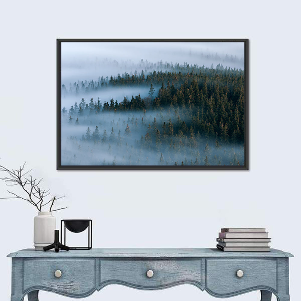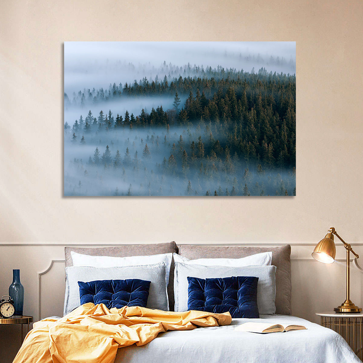 Whether you love art or just looking to decorate your home, this striking and powerful Foggy Forest Wall Art is an eye-catching decor element that can't go unnoticed. This art print by CanvasPiece is designed to resonate and spark a mix of feelings.