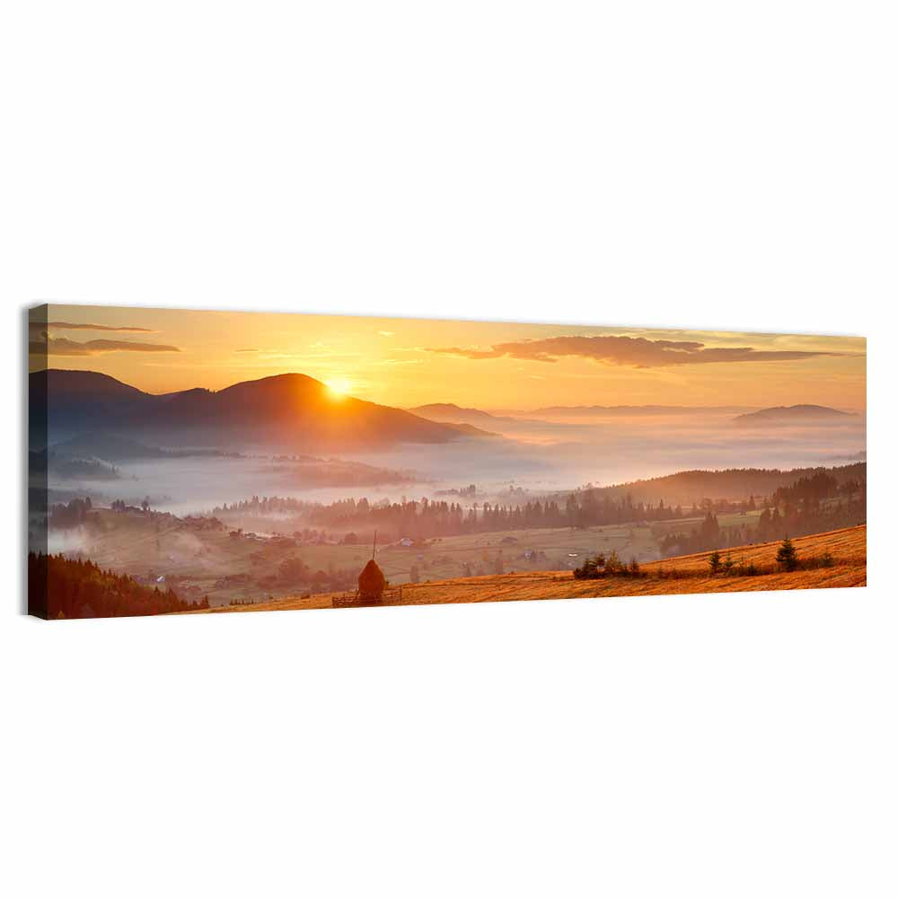 Whether you love art or just looking to decorate your home, this striking and powerful Foggy Mountain Village Wall Art is an eye-catching decor element that can't go unnoticed. This art print by CanvasPiece is designed to resonate and spark a mix of feelings.