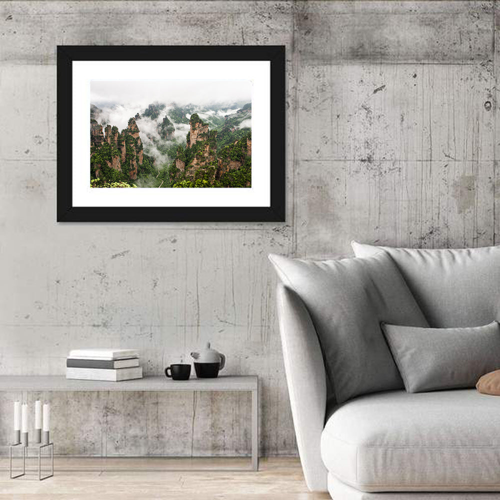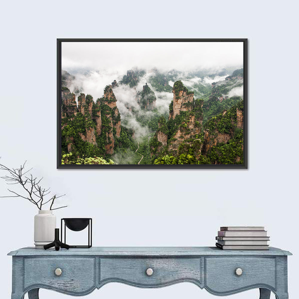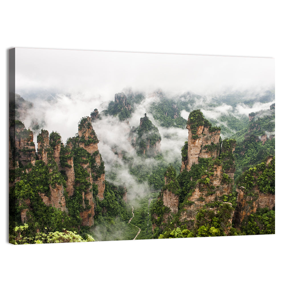 Experience the beauty and majesty of Zhangjiajie with this stunning foggy scene wall art. Created by expert artists at CanvasPiece, this striking piece will add a touch of wonder and emotion to any space. Let it transport you to another world and inspire your imagination.