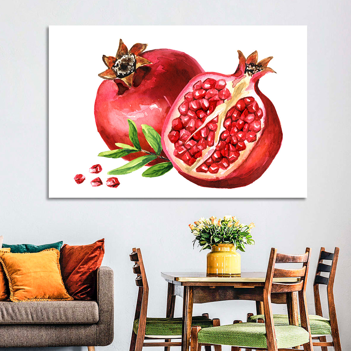Whether you love art or just looking to decorate your home, this striking and powerful Fresh Pomegranate Wall Art is an eye-catching decor element that can't go unnoticed. This art print by CanvasPiece is designed to resonate and spark a mix of feelings.