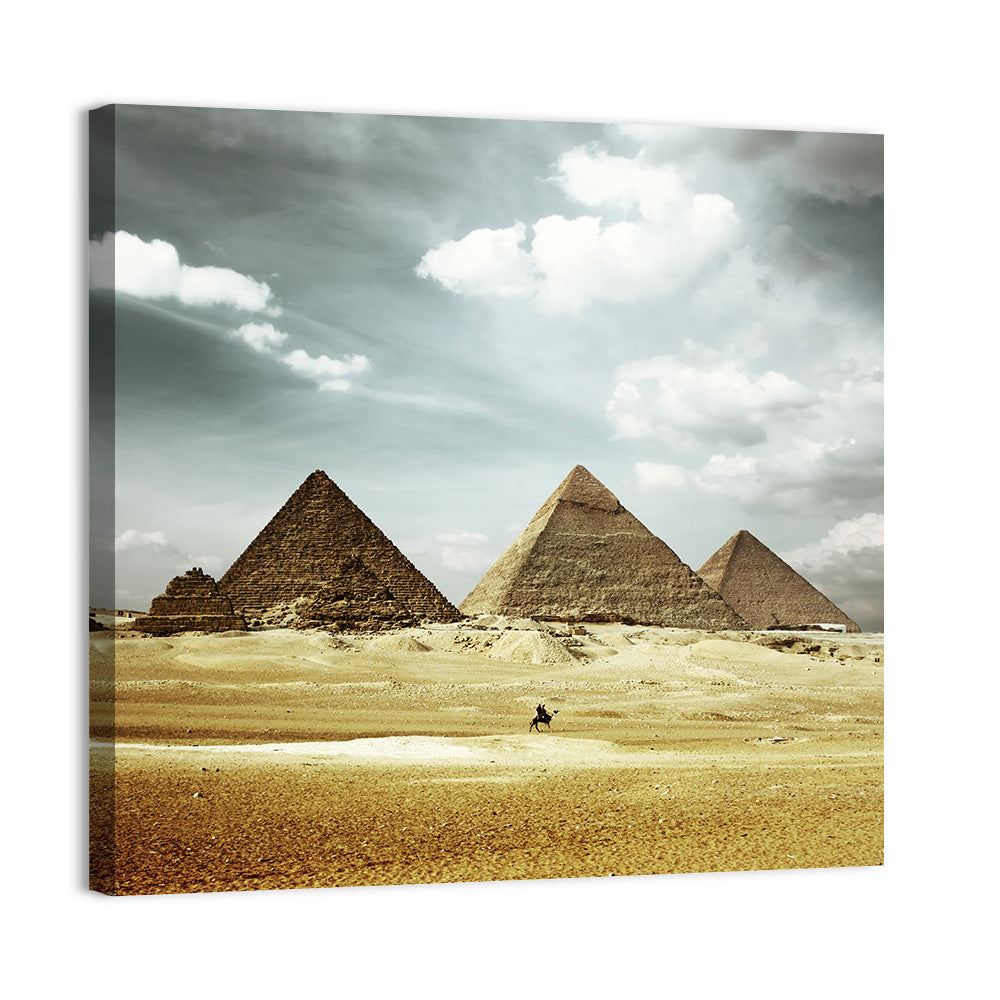 Whether you love art or just looking to decorate your home, this striking and powerful Great Pyramids in Giza Valley I wall art is an eye-catching decor element that can't go unnoticed. This art print by CanvasPiece is designed to resonate and spark a mix of feelings.
