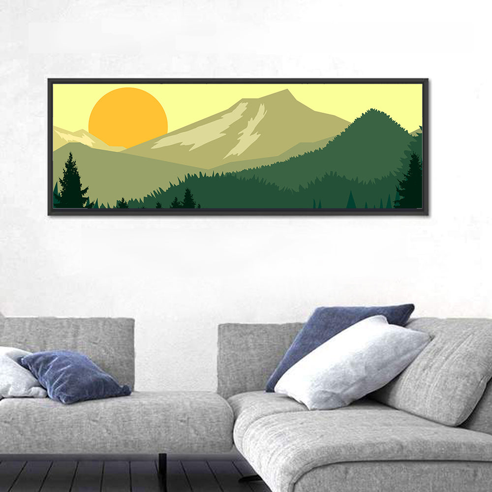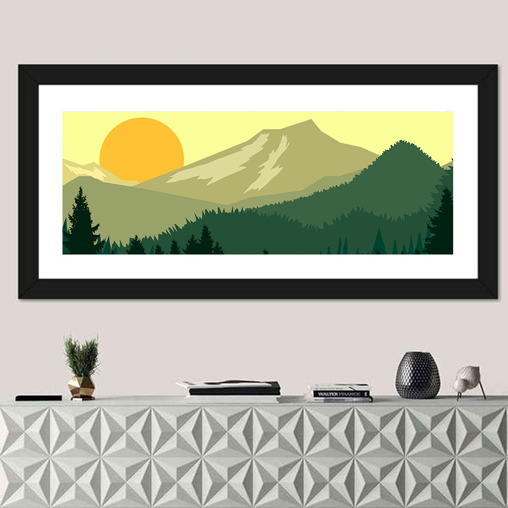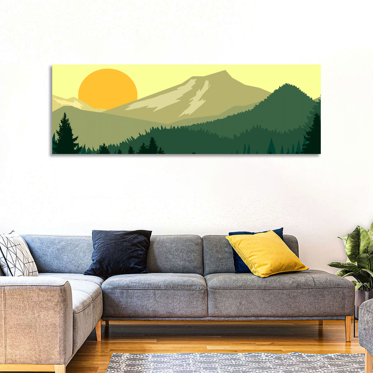 Whether you love art or just looking to decorate your home, this striking and powerful Green Mountains Sunset Wall Art is an eye-catching decor element that can't go unnoticed. This art print by CanvasPiece is designed to resonate and spark a mix of feelings.