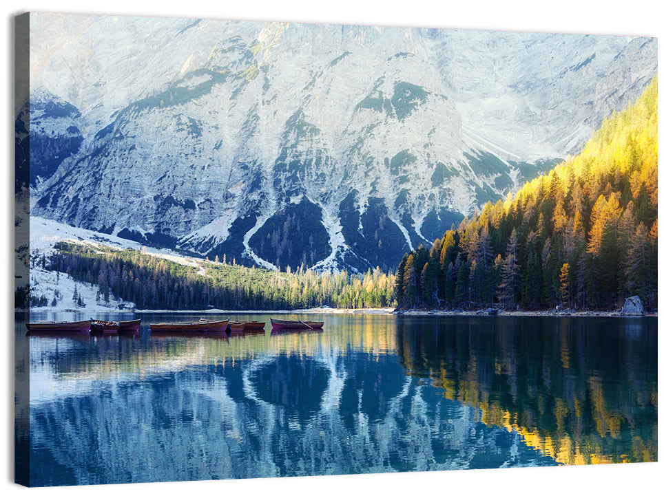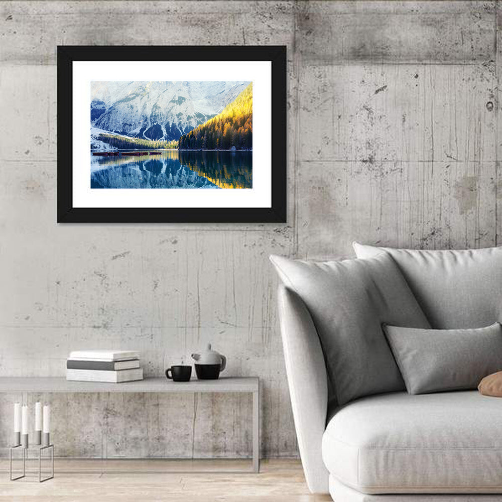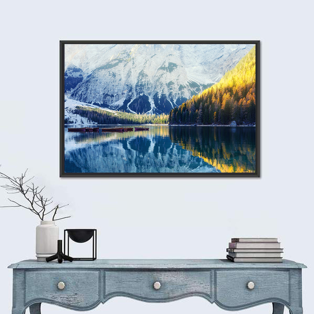 Whether you love art or just looking to decorate your home, this striking and powerful Lago di Braies Dolomites Wall Art is an eye-catching decor element that can't go unnoticed. This art print by CanvasPiece is designed to resonate and spark a mix of feelings.