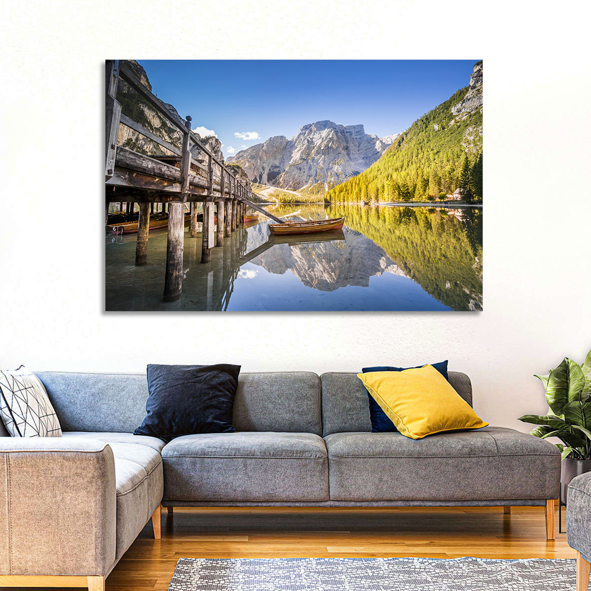 Whether you love art or just looking to decorate your home, this striking and powerful lake Braies Wall Art is an eye-catching decor element that can't go unnoticed. This art print by CanvasPiece is designed to resonate and spark a mix of feelings.