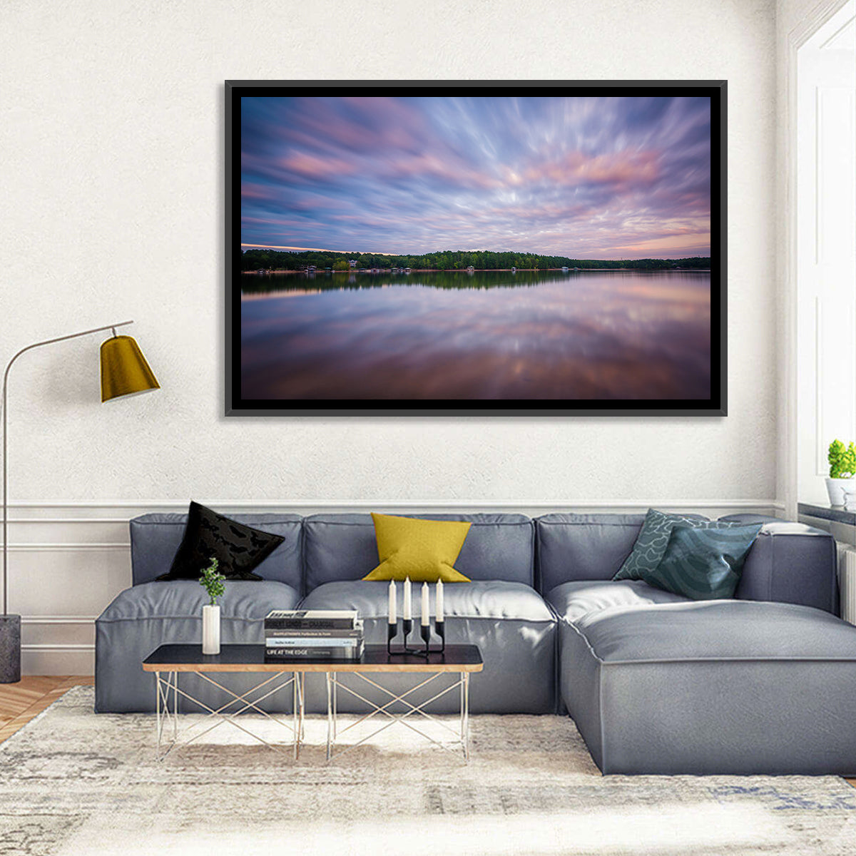 Whether you love art or just looking to decorate your home, this striking and powerful Lake Norman Morning Wall Art is an eye-catching decor element that can't go unnoticed. This art print by CanvasPiece is designed to resonate and spark a mix of feelings.
