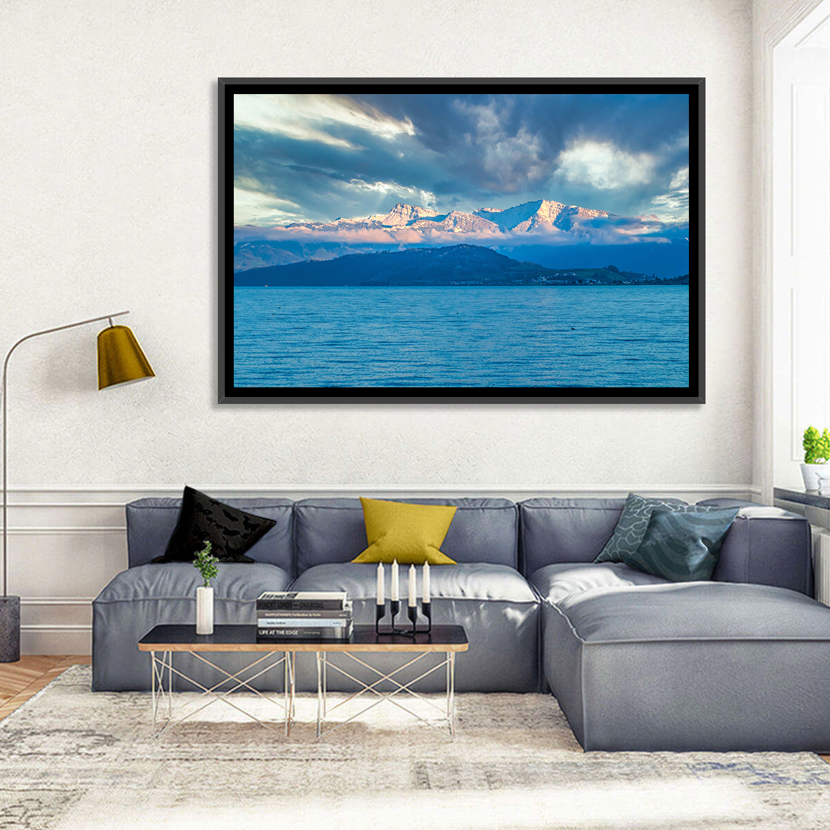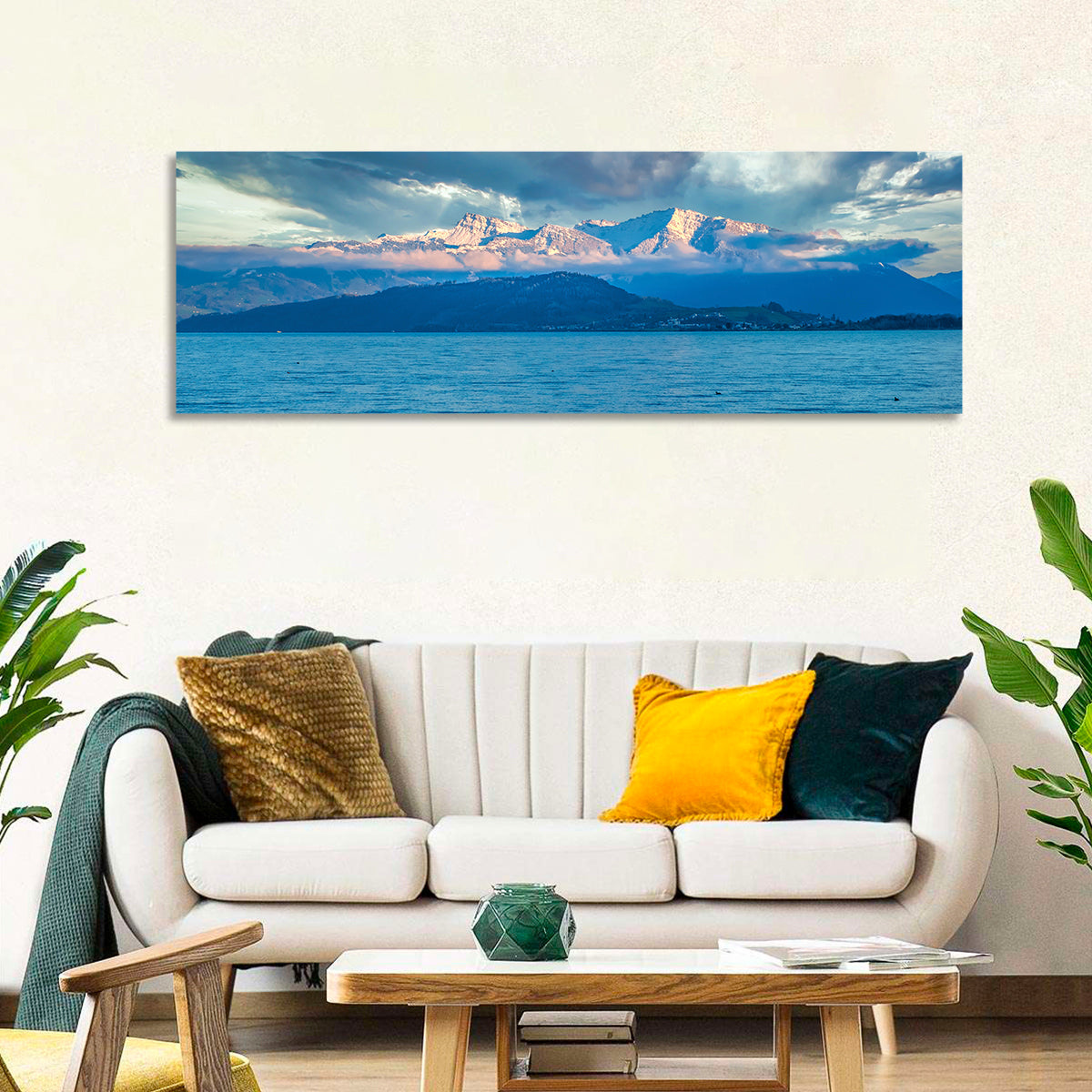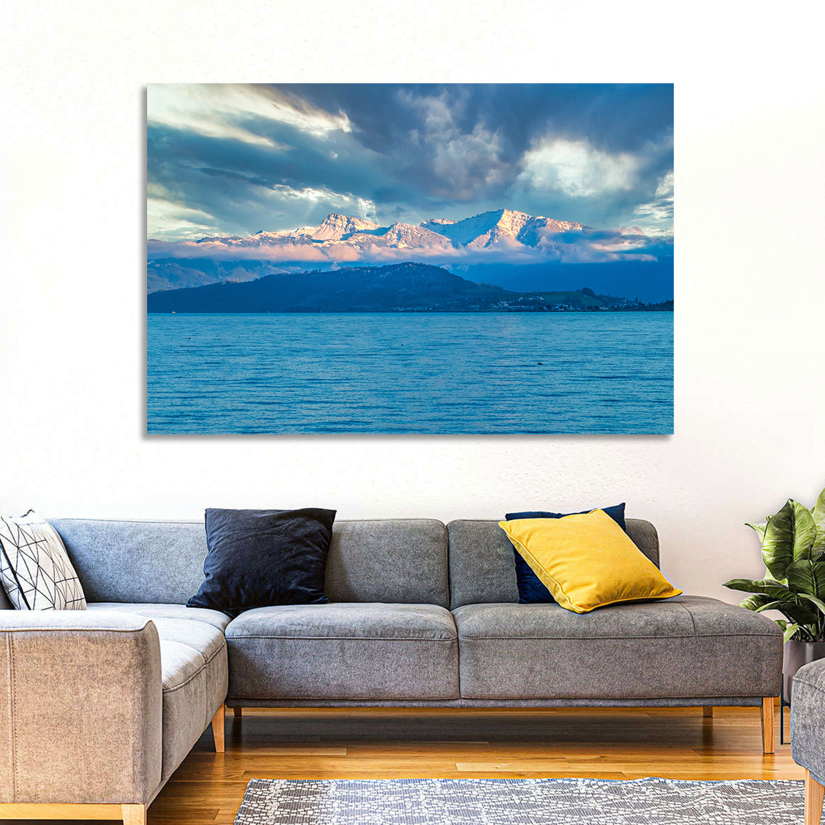 Whether you love art or just looking to decorate your home, this striking and powerful Swiss Alps and Lake Obersee Wall Art is an eye-catching decor element that can't go unnoticed. This art print by CanvasPiece is designed to resonate and spark a mix of feelings.