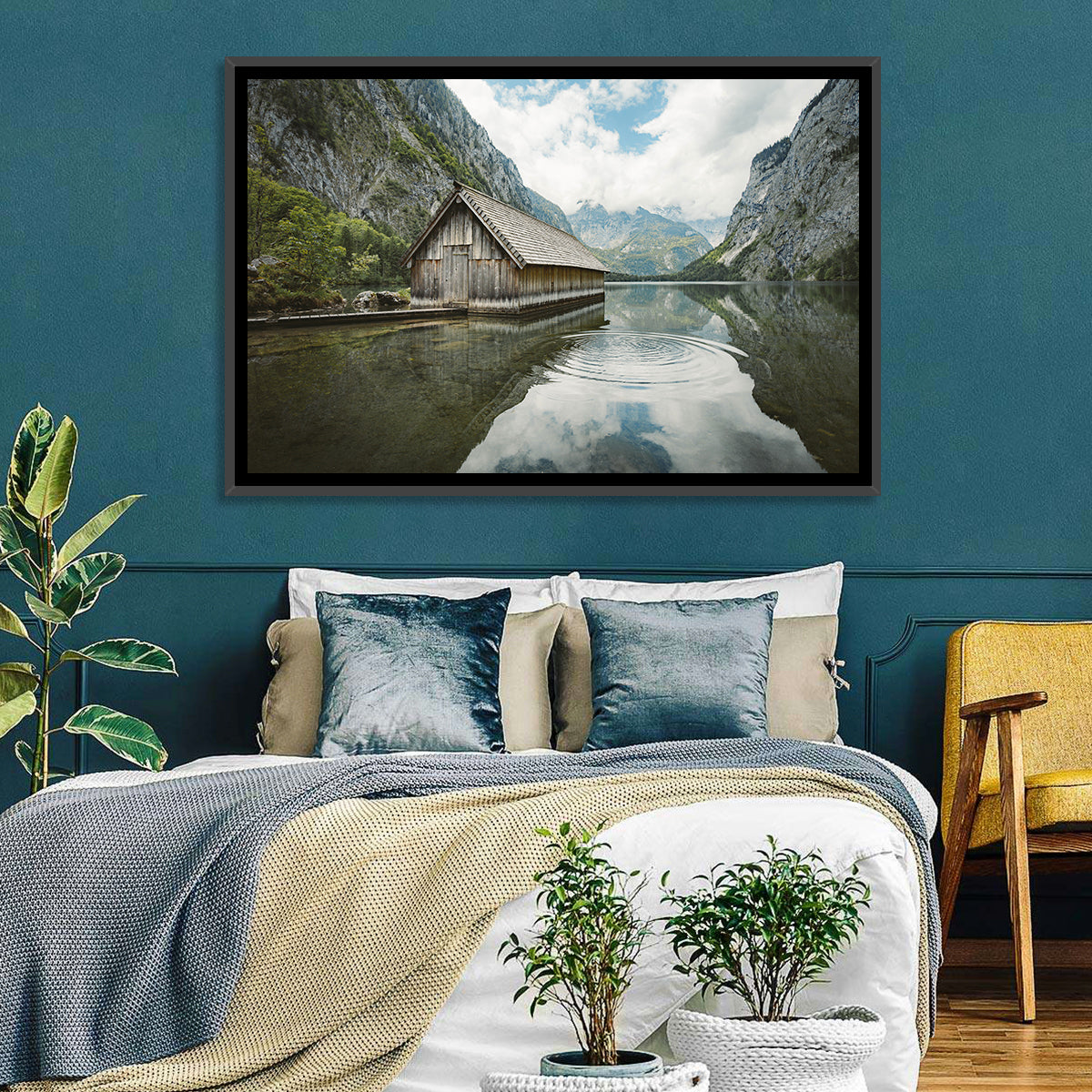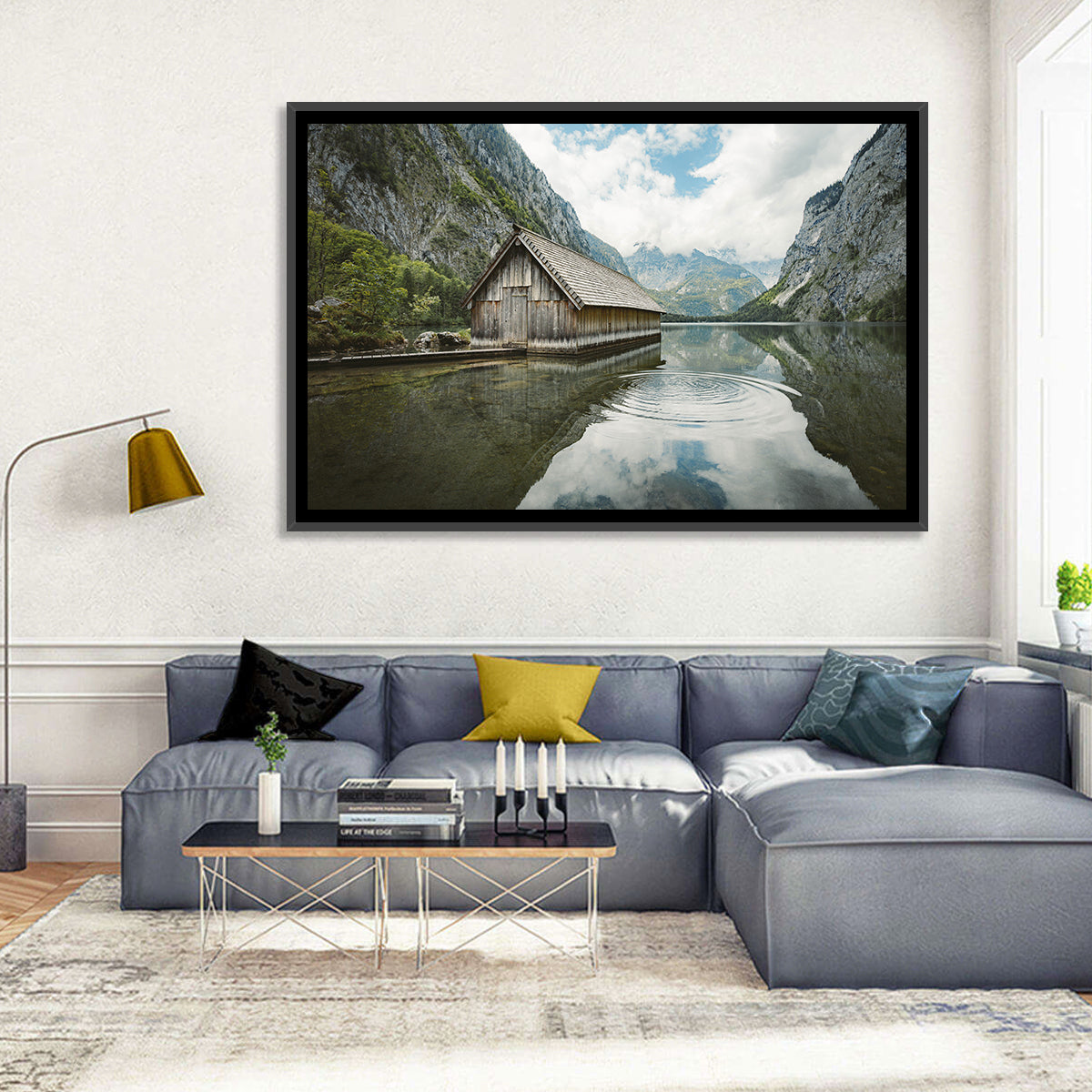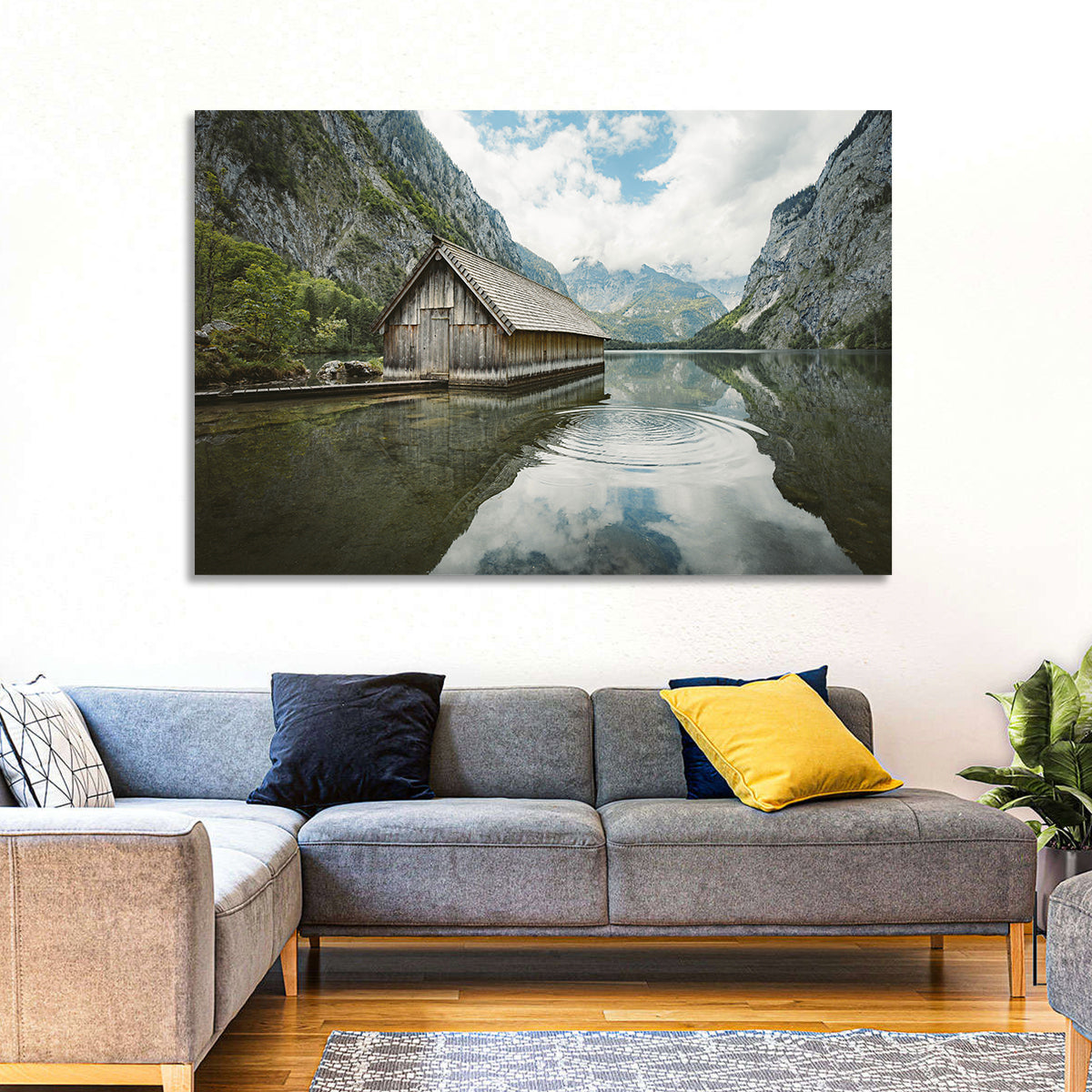 Whether you love art or just looking to decorate your home, this striking and powerful Lake Obersee boat house Wall Art is an eye-catching decor element that can't go unnoticed. This art print by CanvasPiece is designed to resonate and spark a mix of feelings.