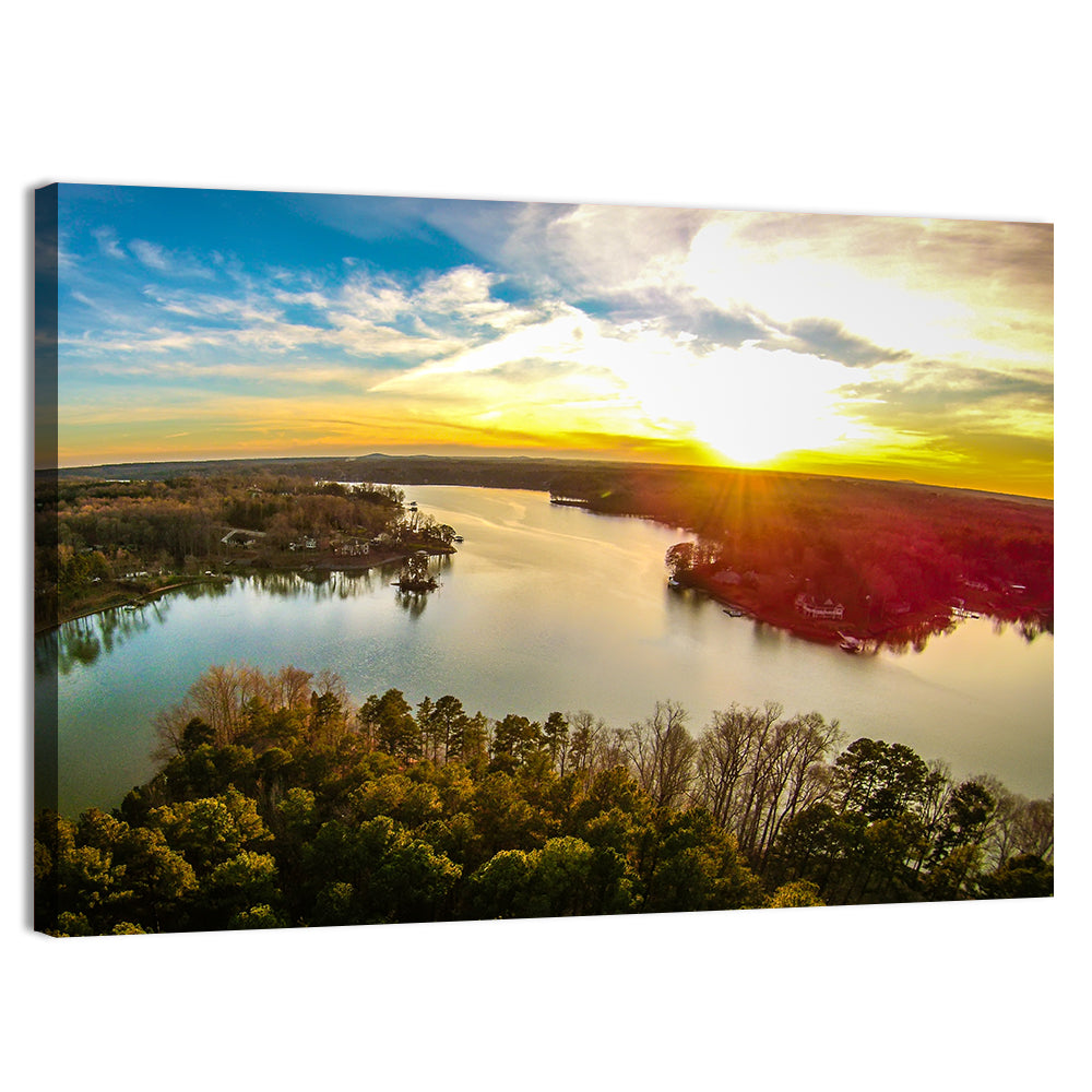 Whether you love art or just looking to decorate your home, this striking and powerful Lake Wylie Sunset Wall Art is an eye-catching decor element that can't go unnoticed. This art print by CanvasPiece is designed to resonate and spark a mix of feelings.