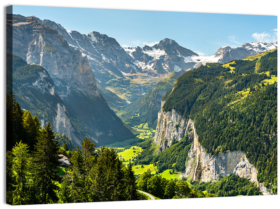 Whether you love art or just looking to decorate your home, this striking and powerful Lauterbrunnen Valley Wall Art is an eye-catching decor element that can't go unnoticed. This art print by CanvasPiece is designed to resonate and spark a mix of feelings.
