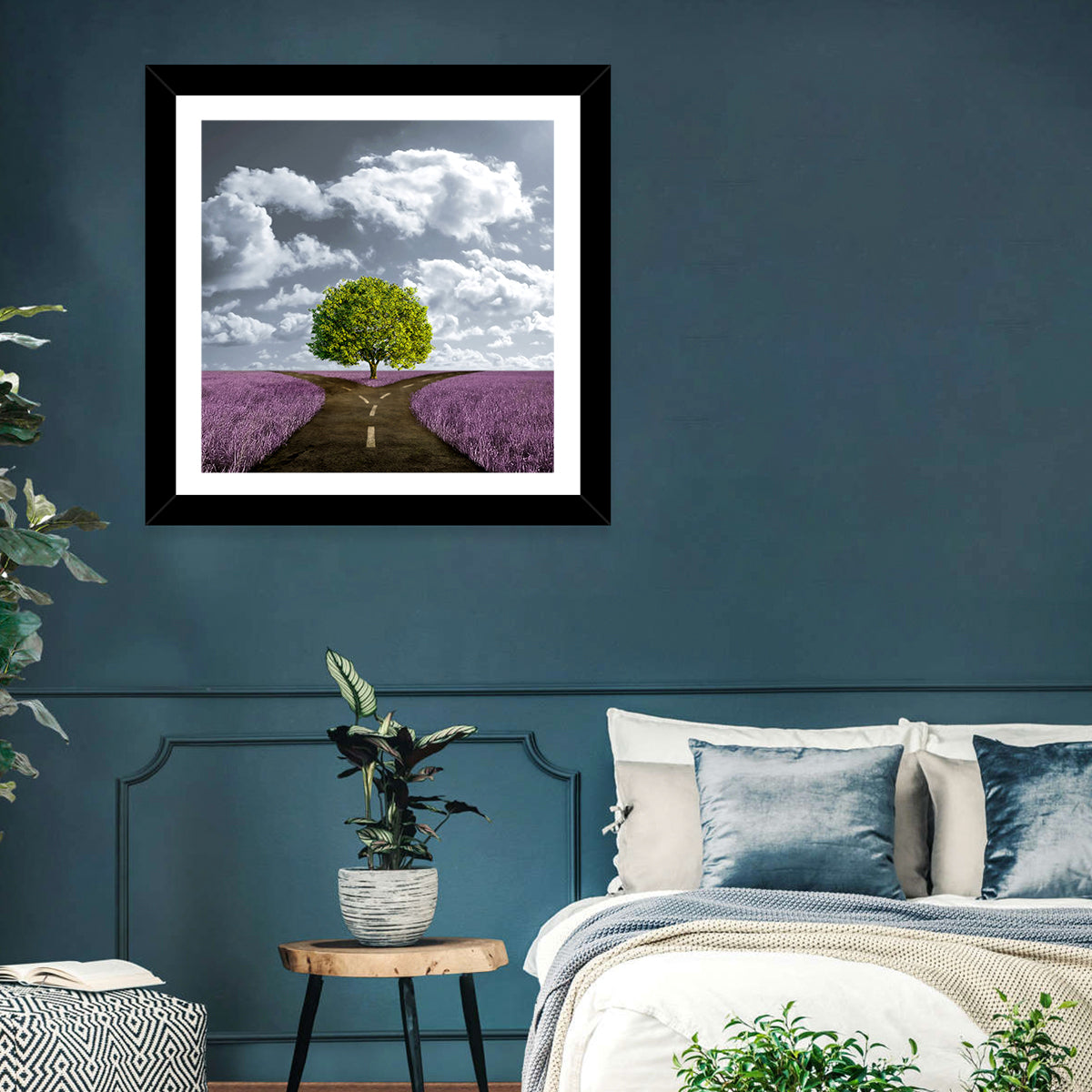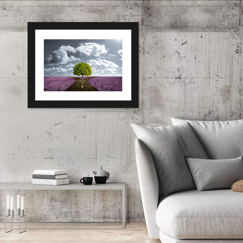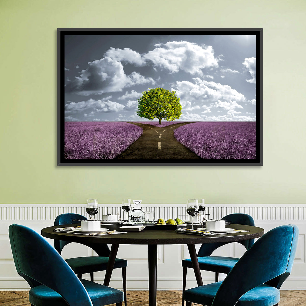 Whether you love art or just looking to decorate your home, this striking and powerful Lavender Meadow Crossroad Wall Art is an eye-catching decor element that can't go unnoticed. This art print by CanvasPiece is designed to resonate and spark a mix of feelings.