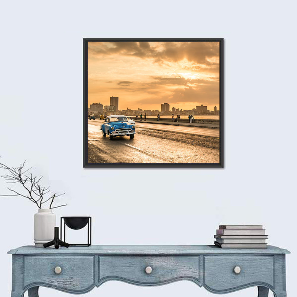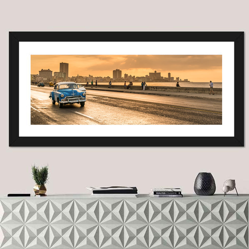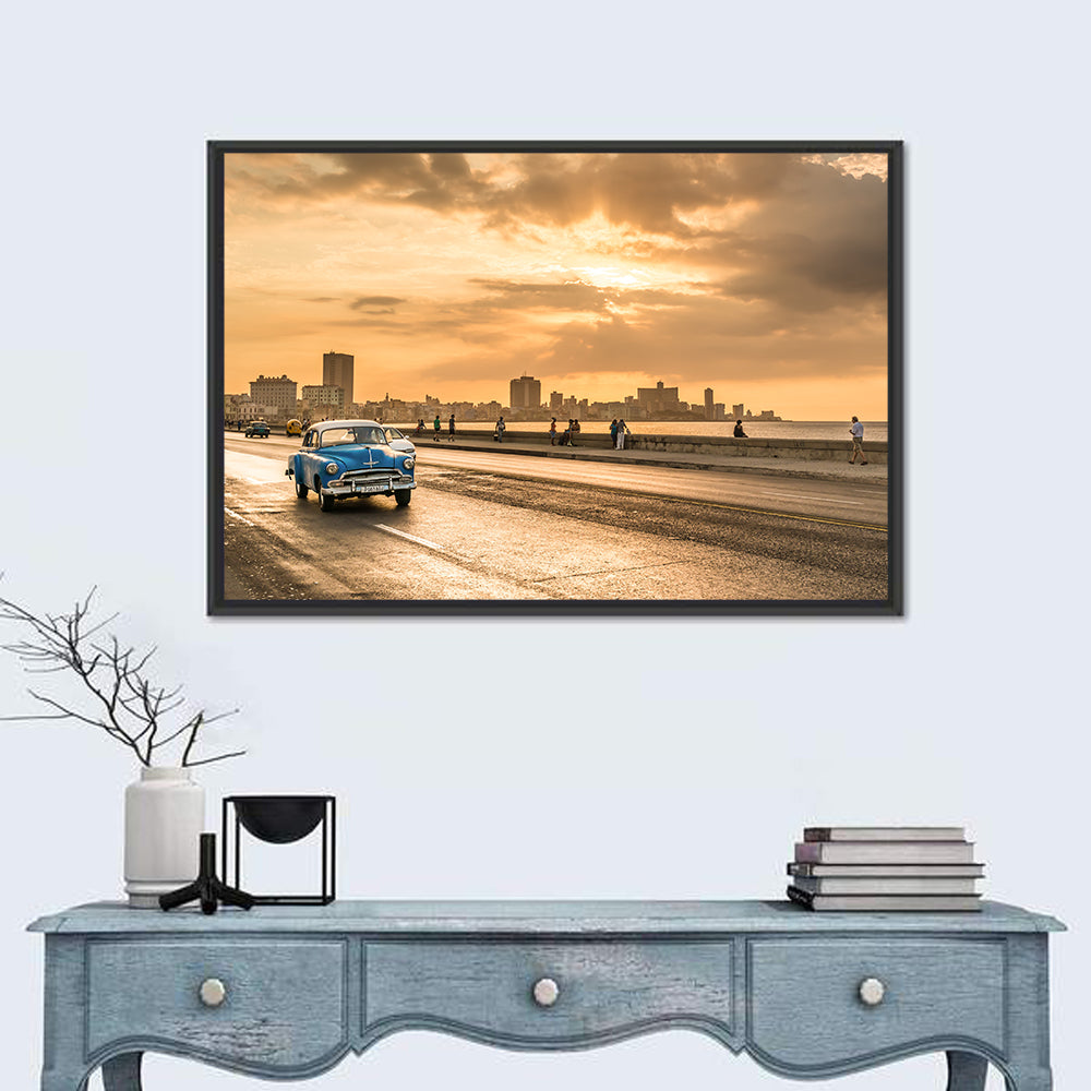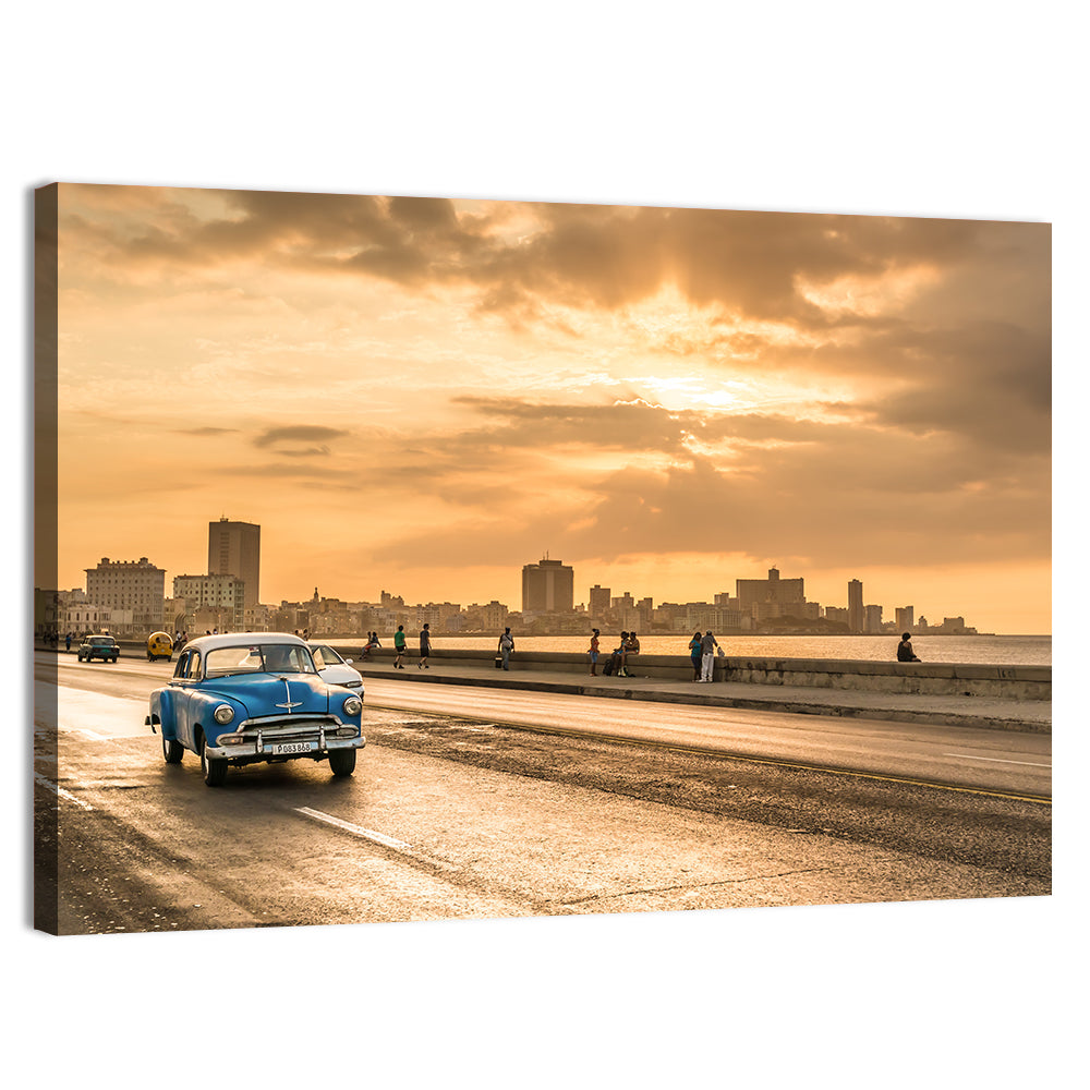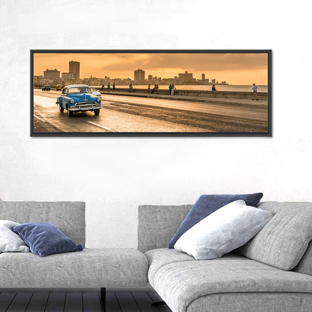 Experience the vibrant city of Havana, Cuba with this stunning Malecon Avenue Sunset Wall Art by CanvasPiece. The striking depiction of the iconic Malecon avenue at sunset will add character to any room and stir emotions in all who view it. Transform your home decor into a work of art with this powerful and eye-catching piece.