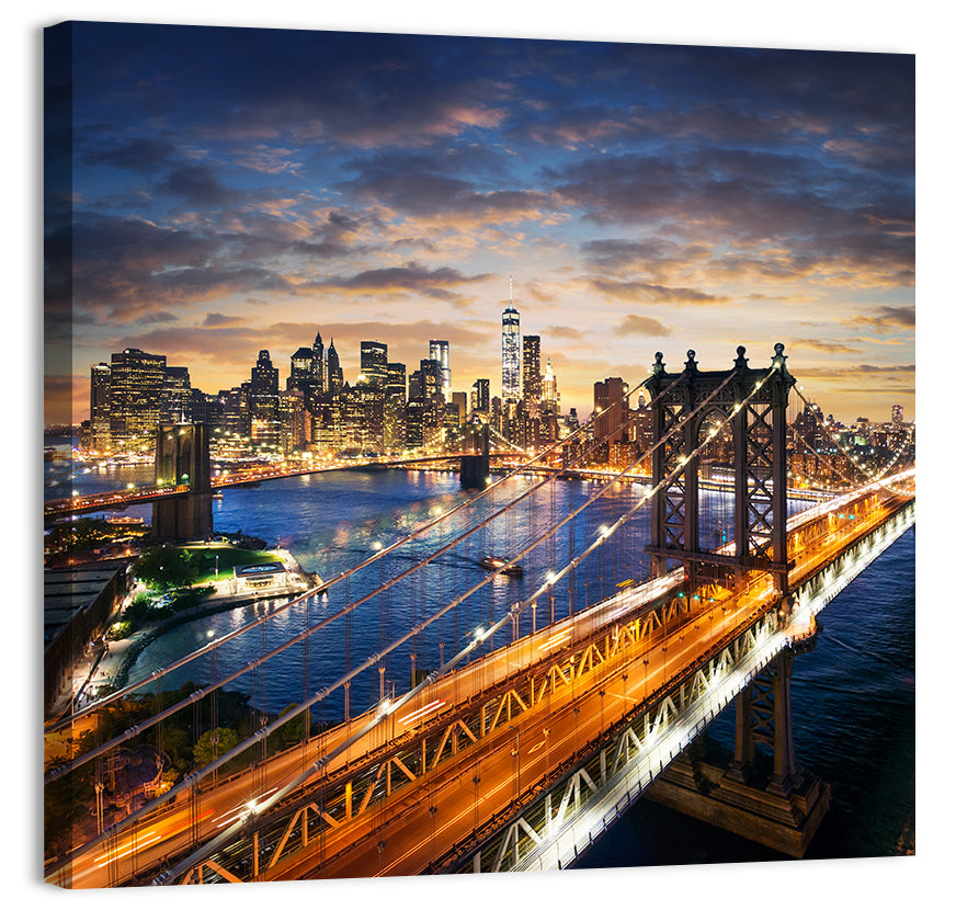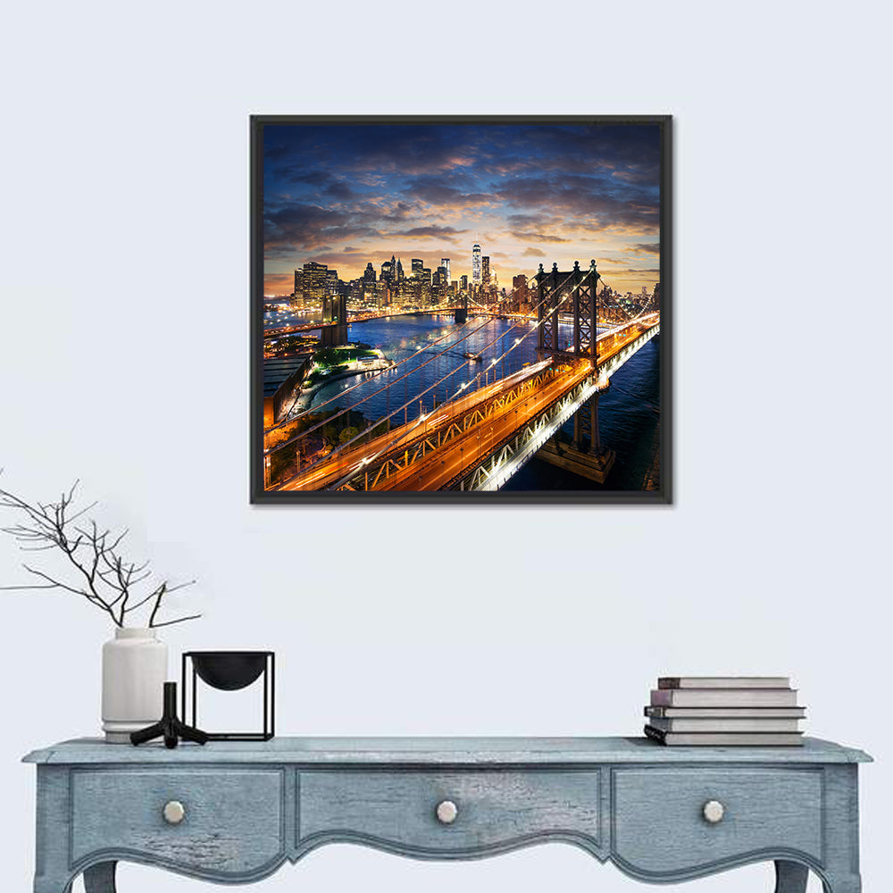Whether you love art or just looking to decorate your home, this striking and powerful Manhattan Bridge at Sunset Wall Art is an eye-catching decor element that can't go unnoticed. This art print by CanvasPiece is designed to resonate and spark a mix of feelings.