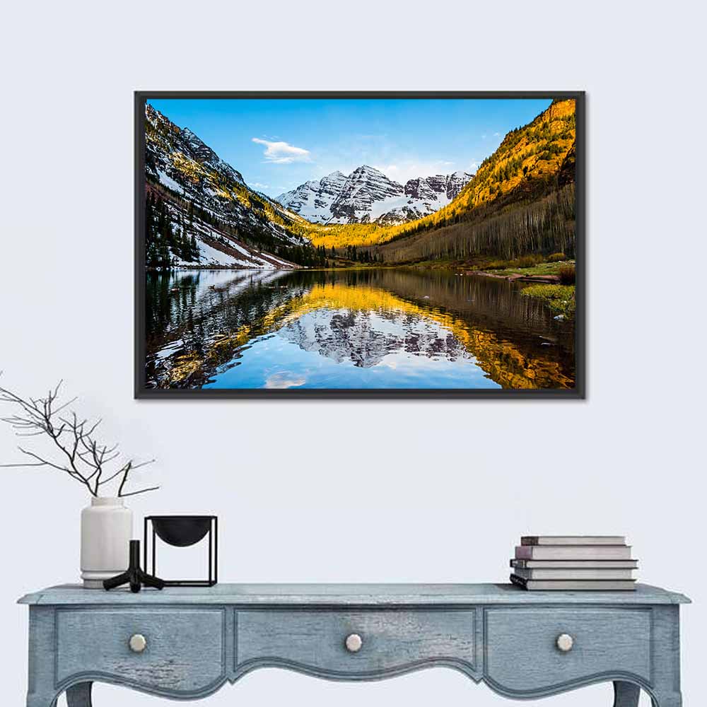 Whether you love art or just looking to decorate your home, this striking and powerful Maroon Bells peak Wall Art is an eye-catching decor element that can't go unnoticed. This art print by CanvasPiece is designed to resonate and spark a mix of feelings.