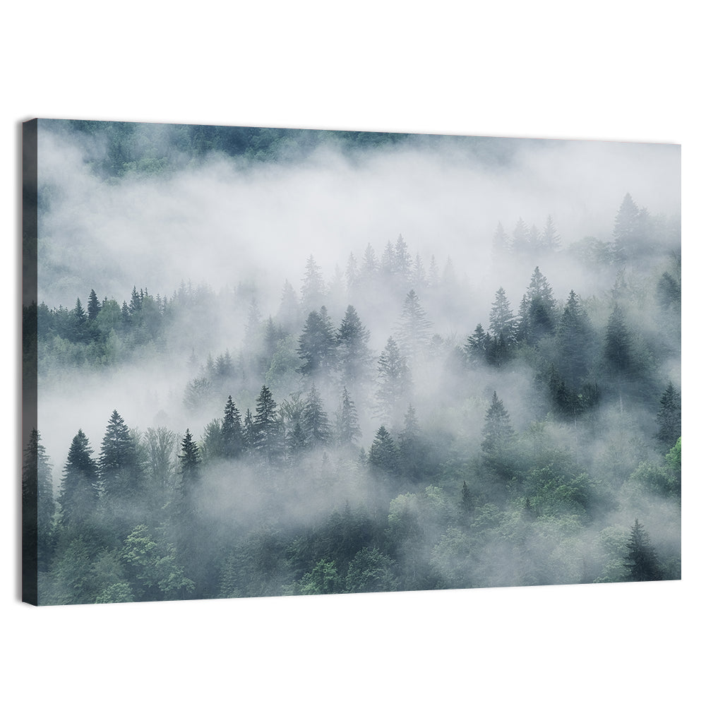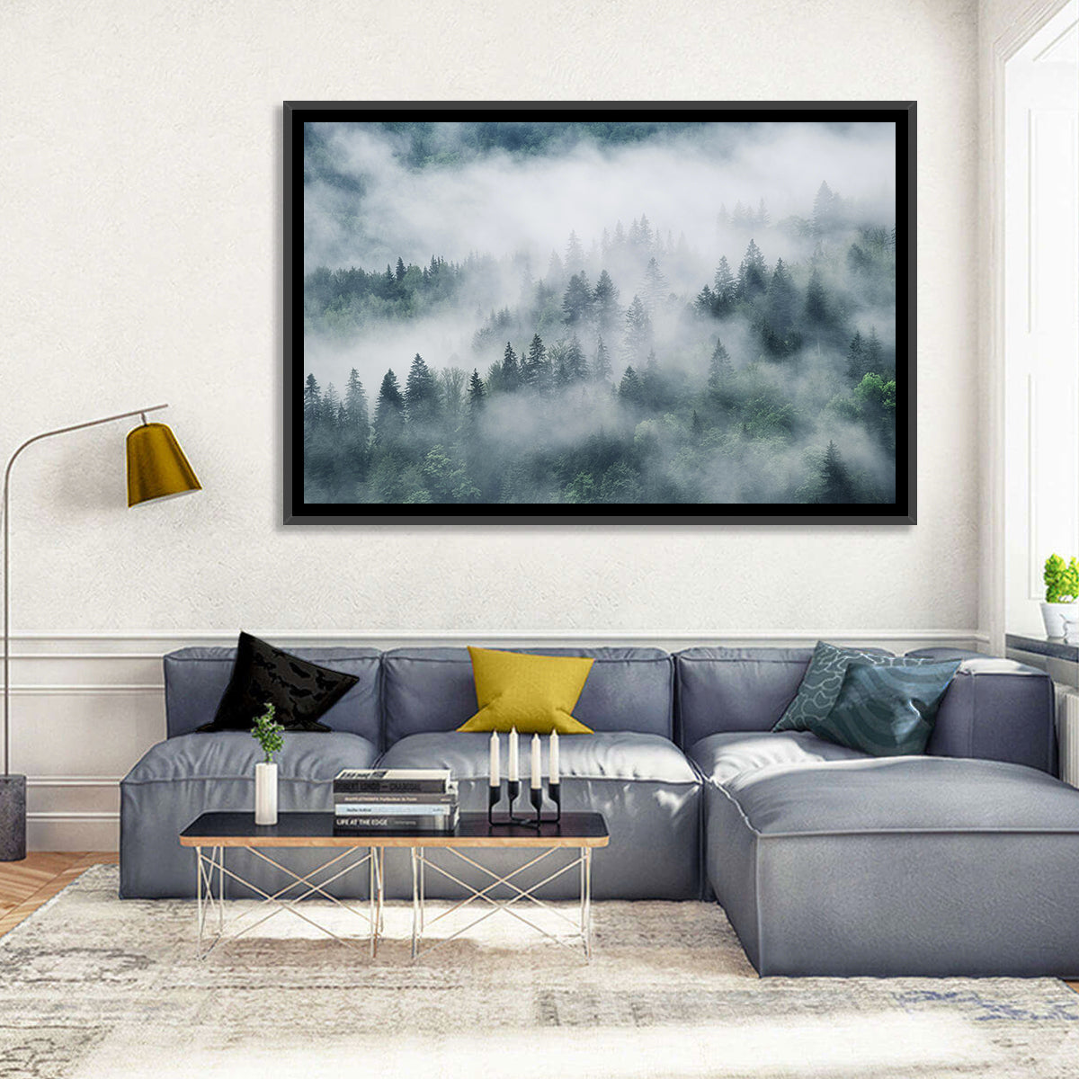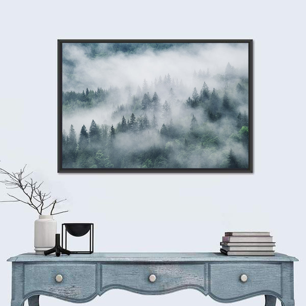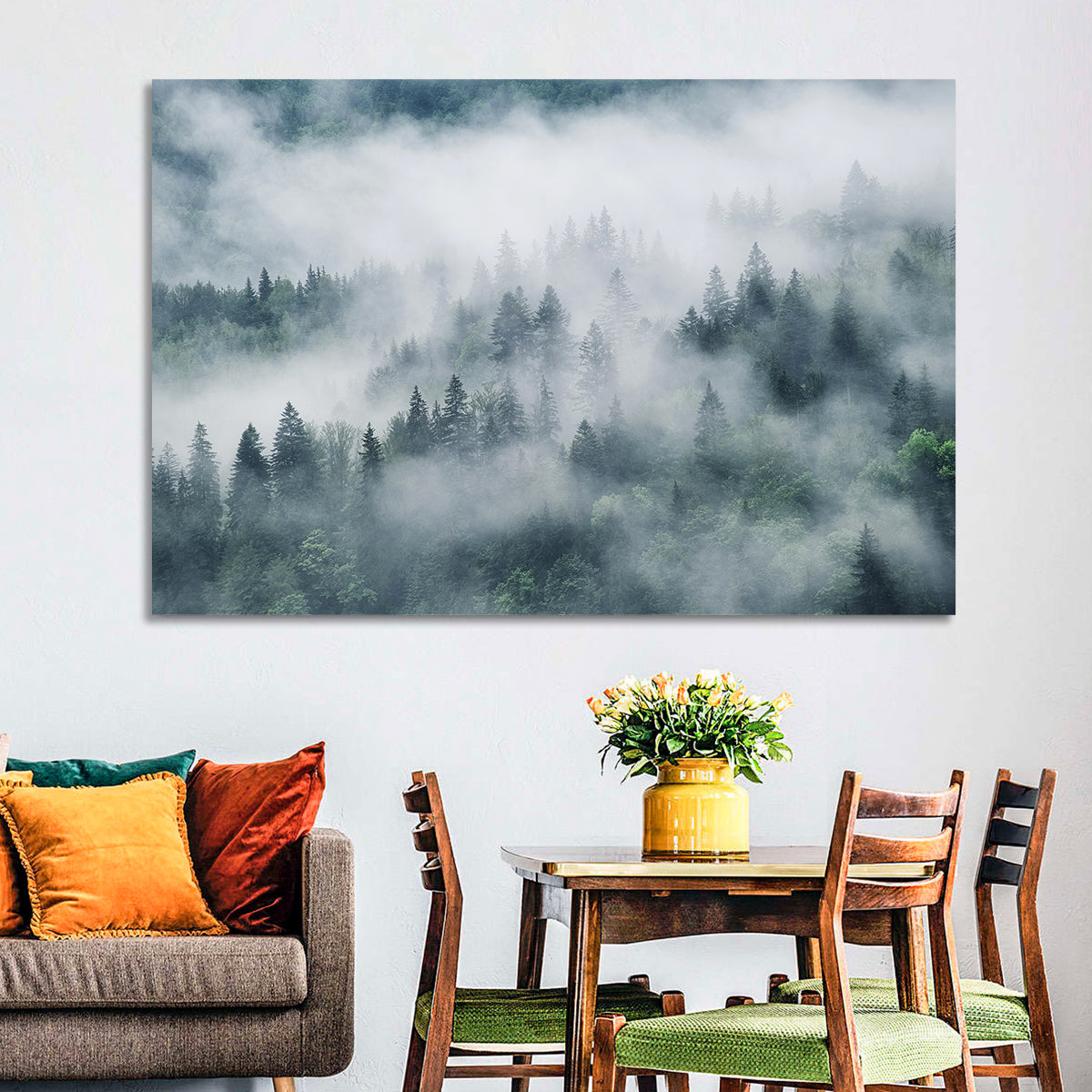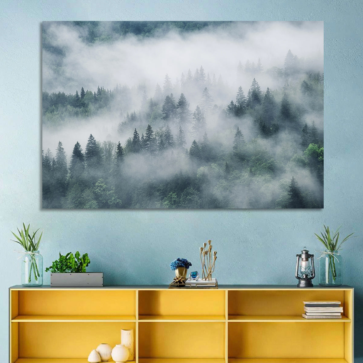 Whether you love art or just looking to decorate your home, this striking and powerful Misty Mountain Forest Wall Art is an eye-catching decor element that can't go unnoticed. This art print by CanvasPiece is designed to resonate and spark a mix of feelings.