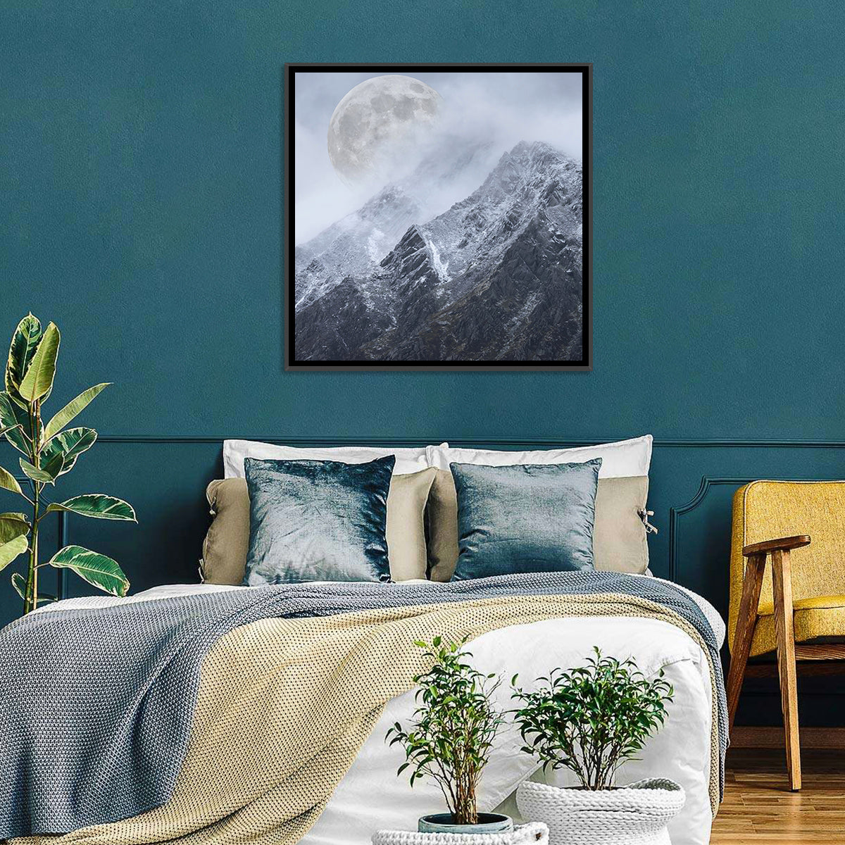 Whether you love art or just looking to decorate your home, this striking and powerful Moon & Mountains Wall Art is an eye-catching decor element that can't go unnoticed. This art print by CanvasPiece is designed to resonate and spark a mix of feelings.