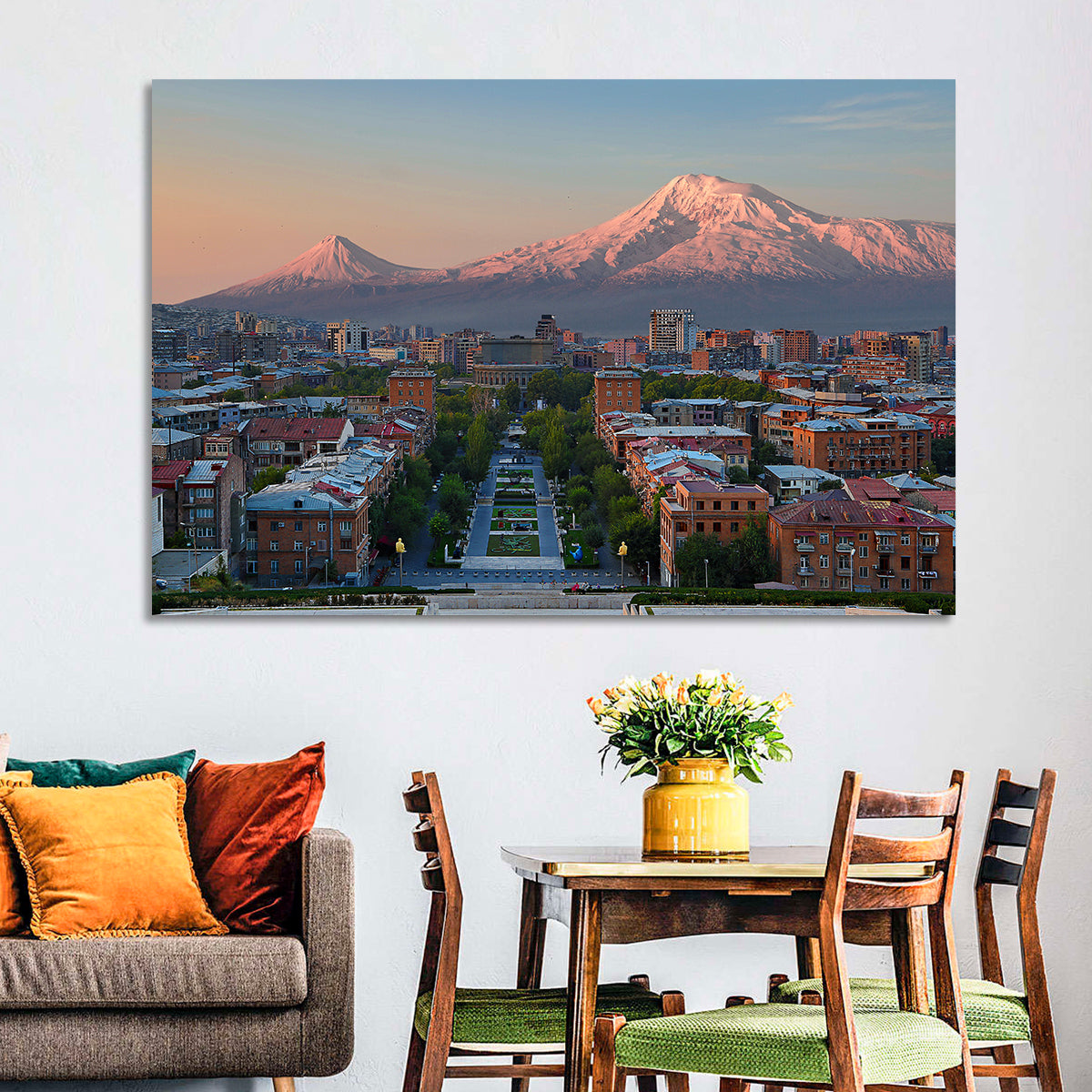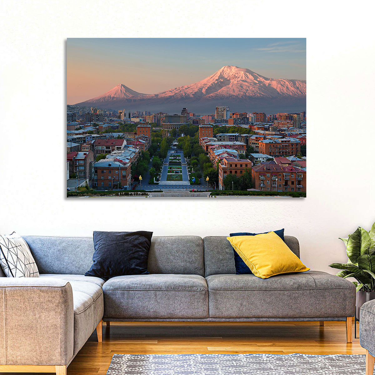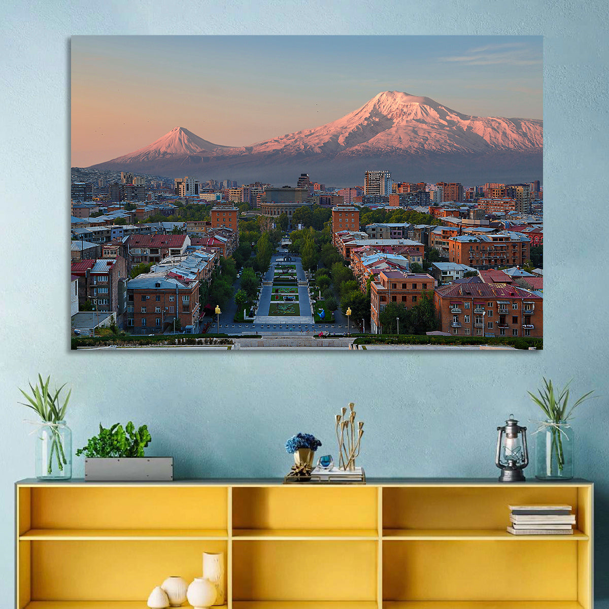 Whether you love art or just looking to decorate your home, this striking and powerful Yerevan city and Mount Ararat Wall Art is an eye-catching decor element that can't go unnoticed. This art print by CanvasPiece is designed to resonate and spark a mix of feelings.