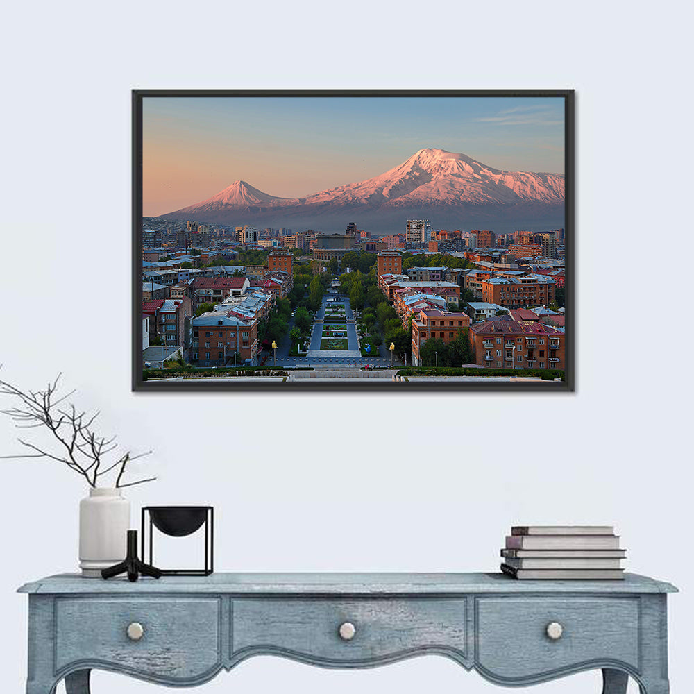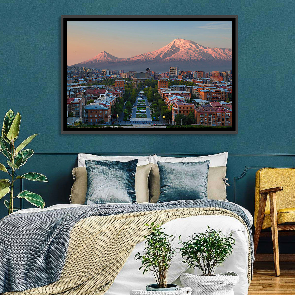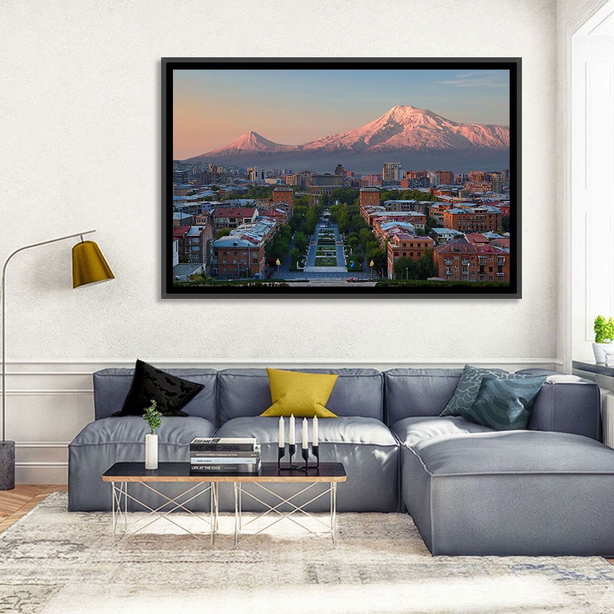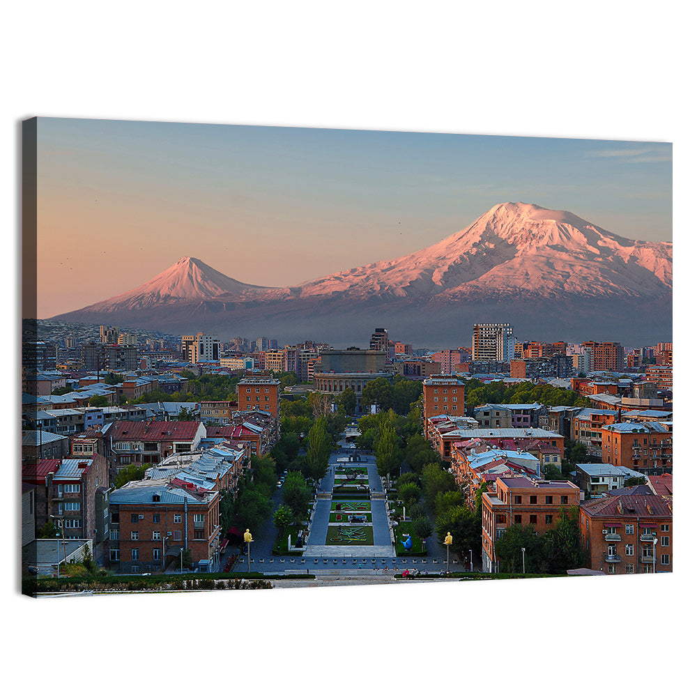 Whether you love art or just looking to decorate your home, this striking and powerful Yerevan city and Mount Ararat Wall Art is an eye-catching decor element that can't go unnoticed. This art print by CanvasPiece is designed to resonate and spark a mix of feelings.