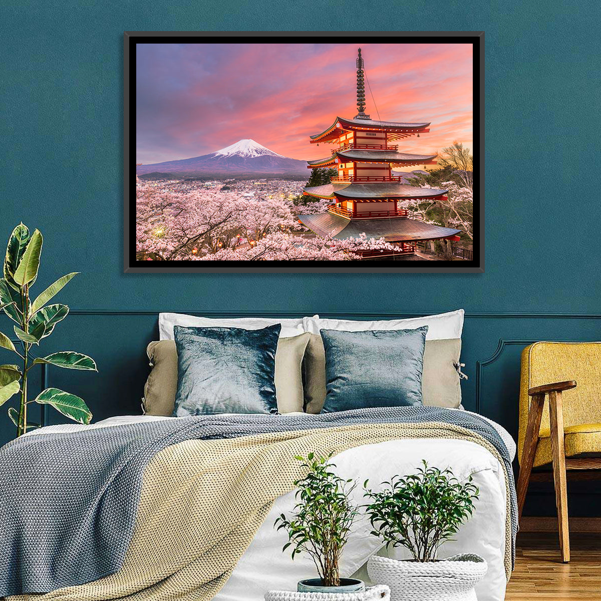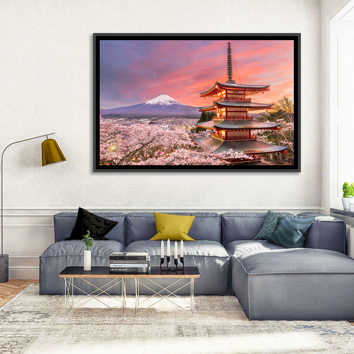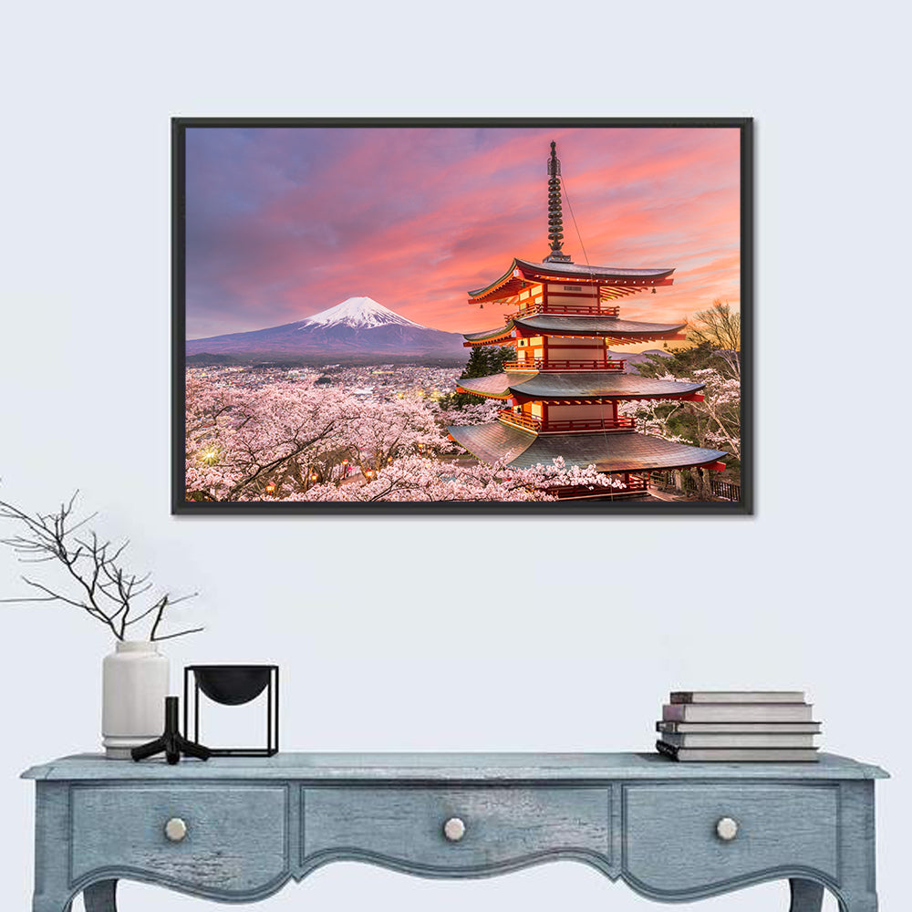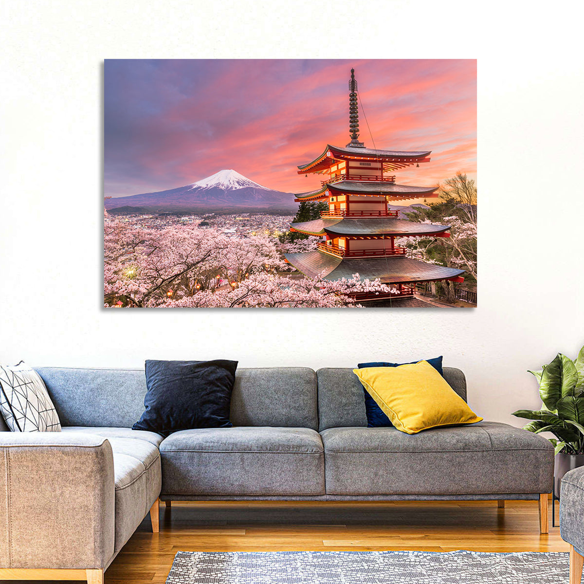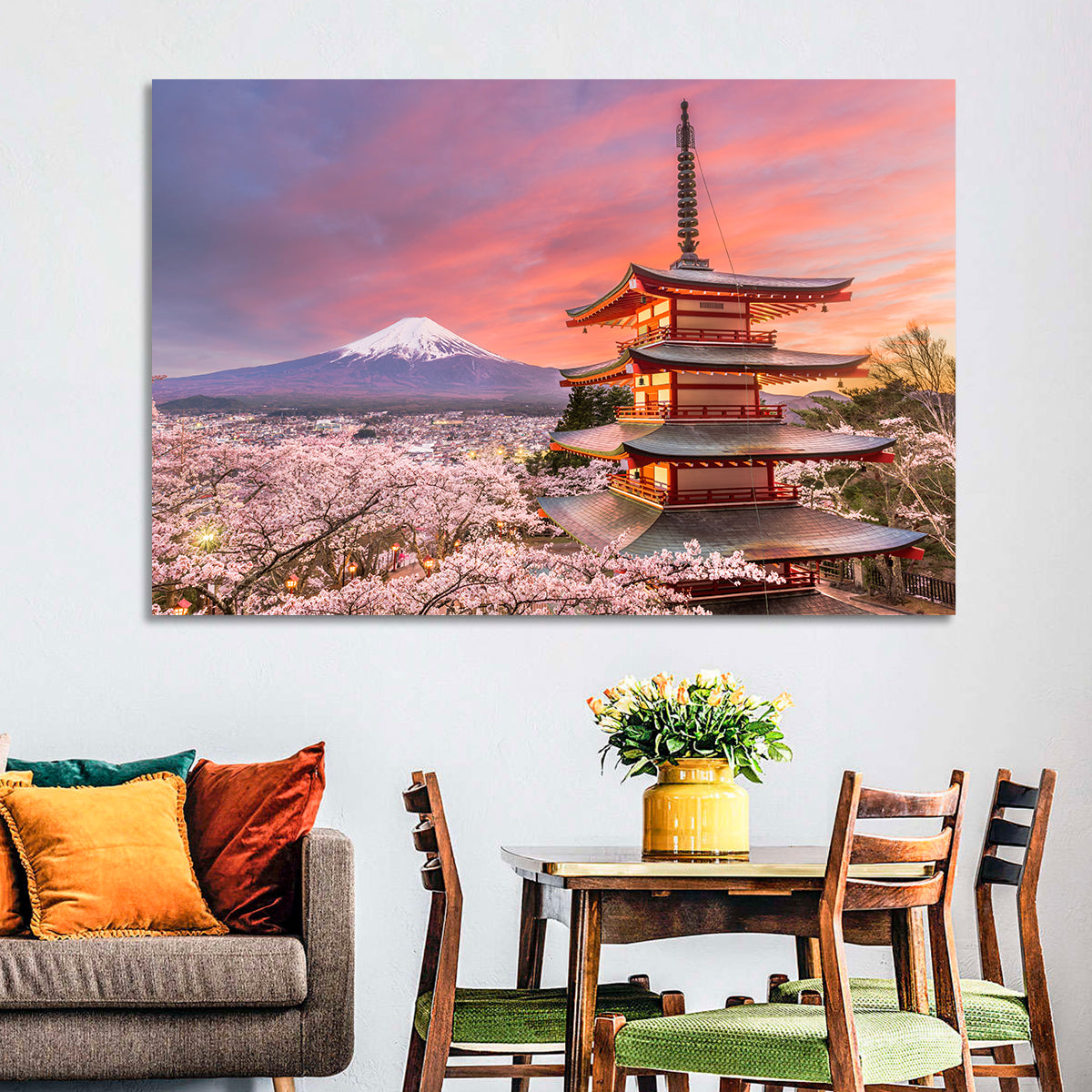 Whether you love art or just looking to decorate your home, this striking and powerful Mount Fuji & Pagoda Wall Art is an eye-catching decor element that can't go unnoticed. This art print by CanvasPiece is designed to resonate and spark a mix of feelings.