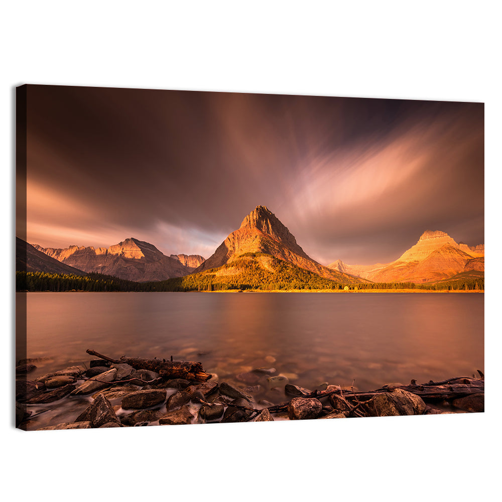Introducing the Mount Grinnell At Sunrise Wall Art - a striking addition to any home decor. This powerful art print by CanvasPiece will captivate your guests and evoke a range of emotions. Expertly designed, it is sure to leave a lasting impression.