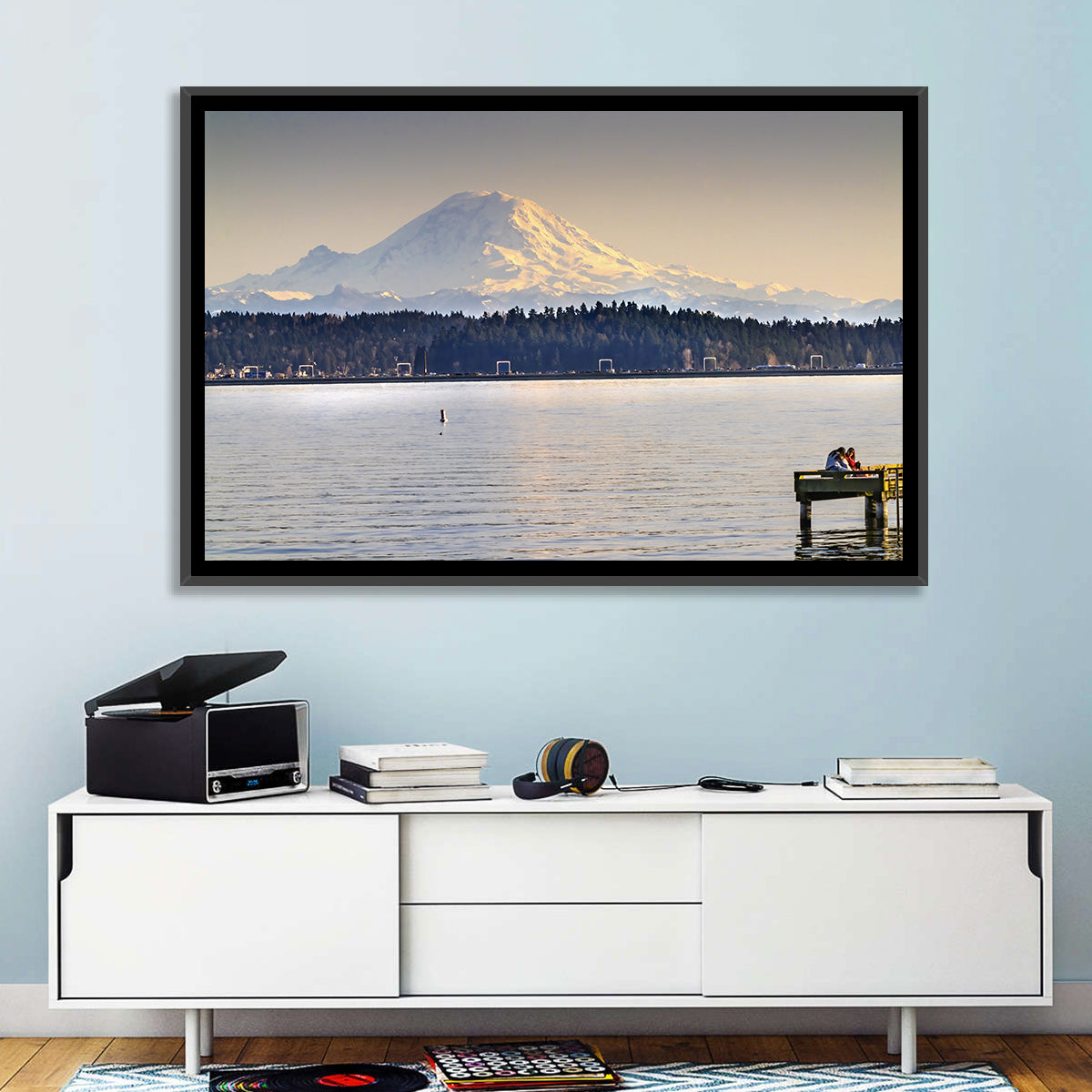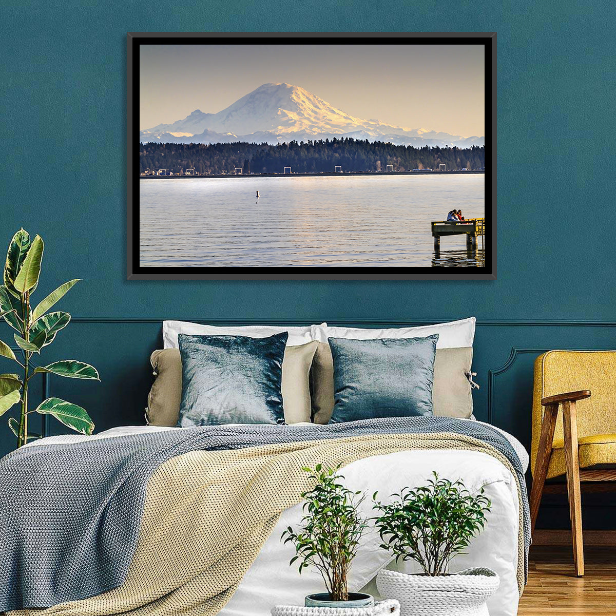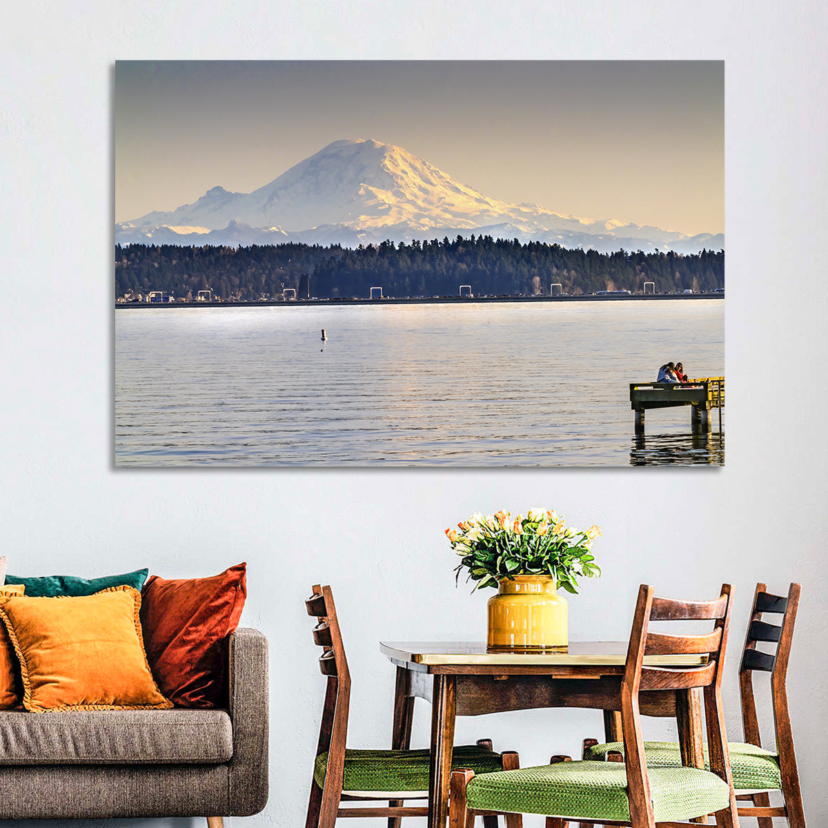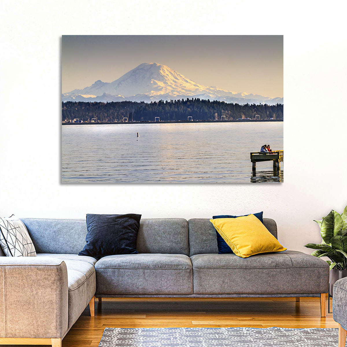 Whether you love art or just looking to decorate your home, this striking and powerful I 90 Bridge near lake Washington with snow capped mount Rainier Wall Art is an eye-catching decor element that can't go unnoticed. This art print by CanvasPiece is designed to resonate and spark a mix of feelings.