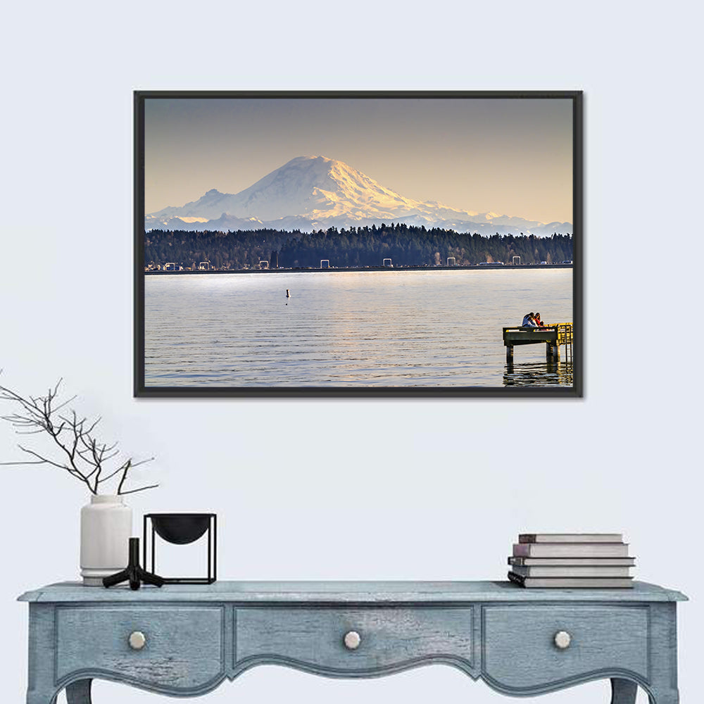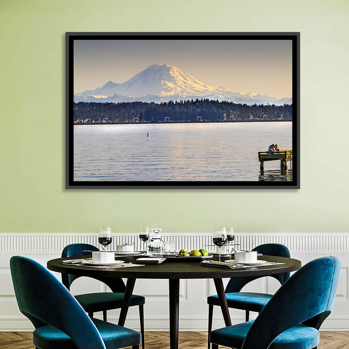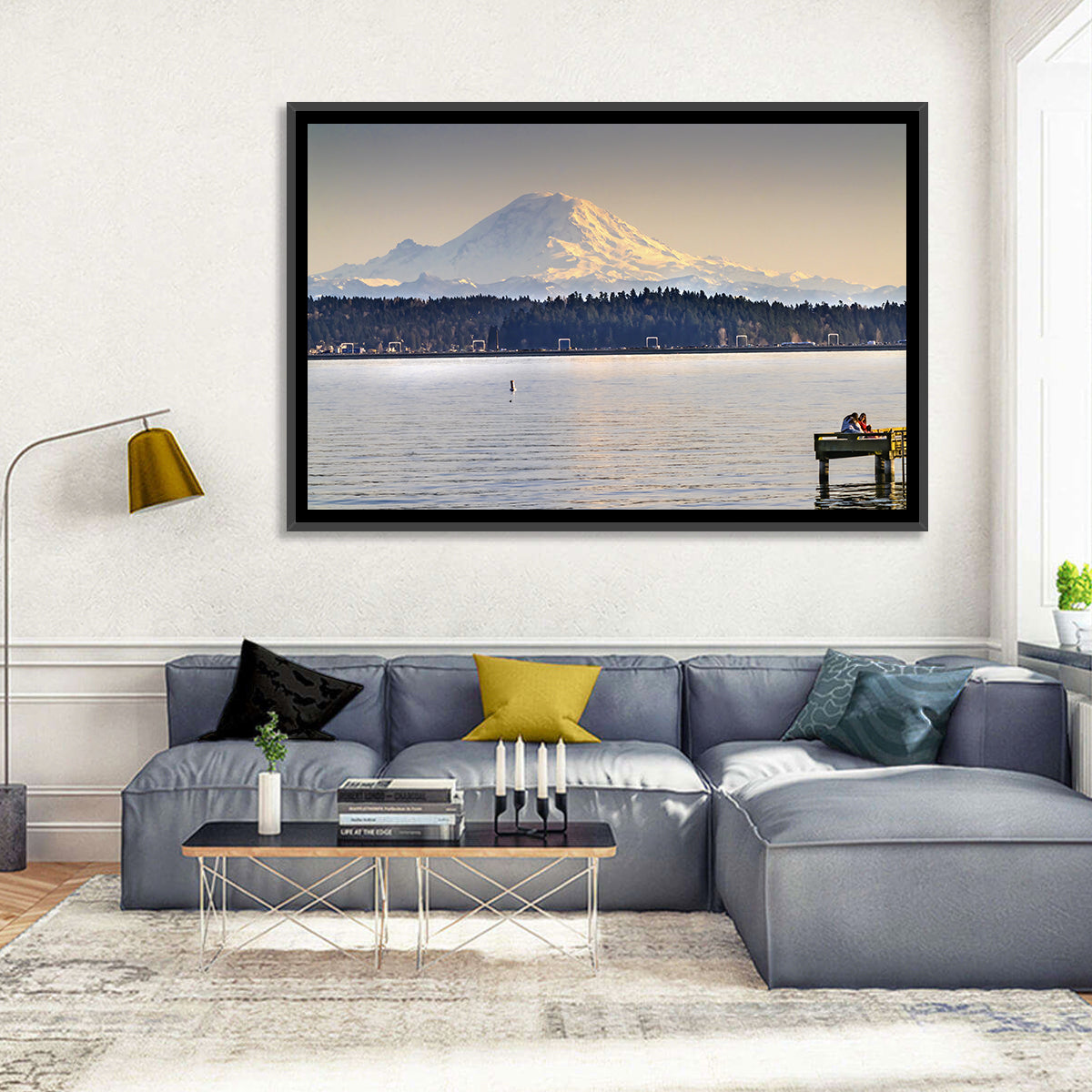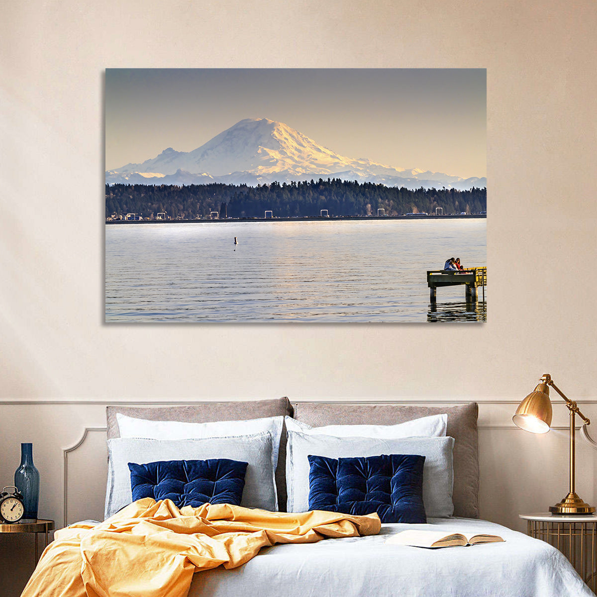 Whether you love art or just looking to decorate your home, this striking and powerful I 90 Bridge near lake Washington with snow capped mount Rainier Wall Art is an eye-catching decor element that can't go unnoticed. This art print by CanvasPiece is designed to resonate and spark a mix of feelings.