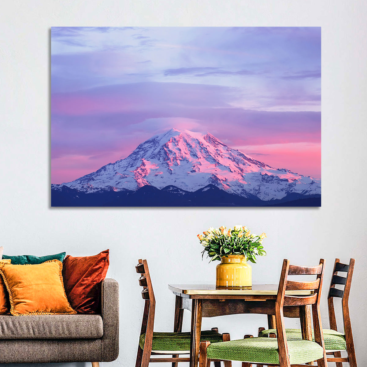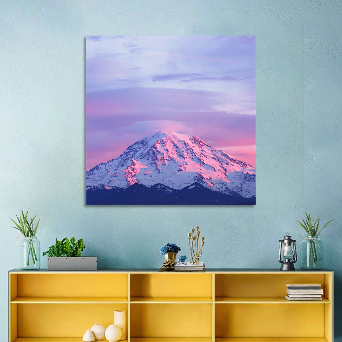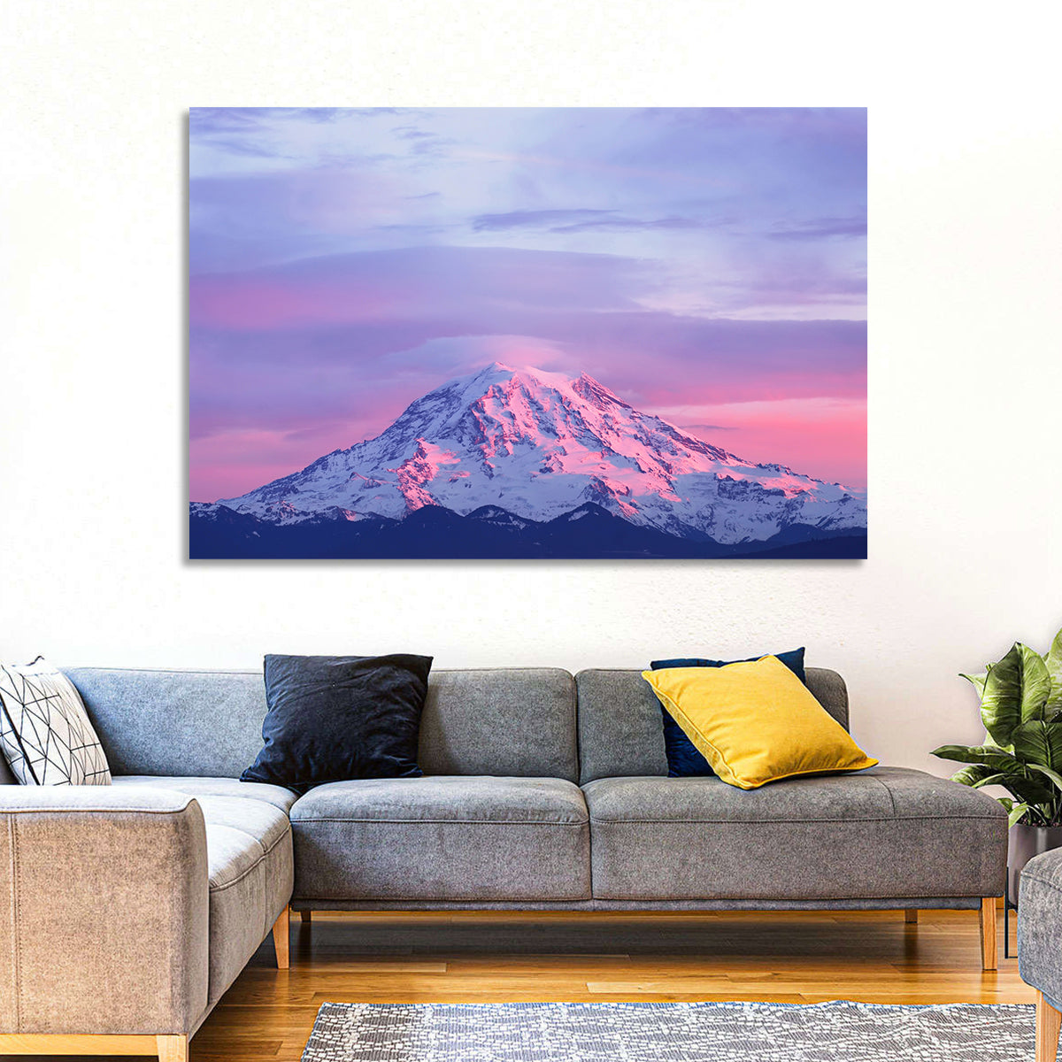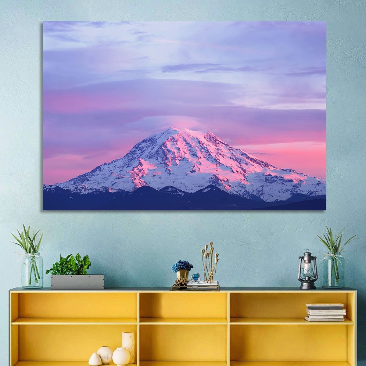 Whether you love art or just looking to decorate your home, this striking and powerful Mount Rainier Sunset Wall Art is an eye-catching decor element that can't go unnoticed. This art print by CanvasPiece is designed to resonate and spark a mix of feelings.