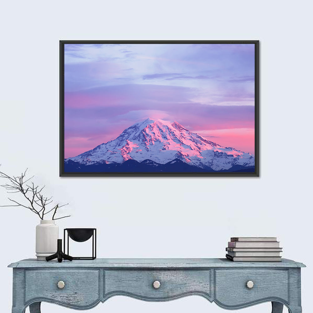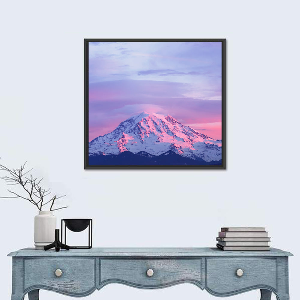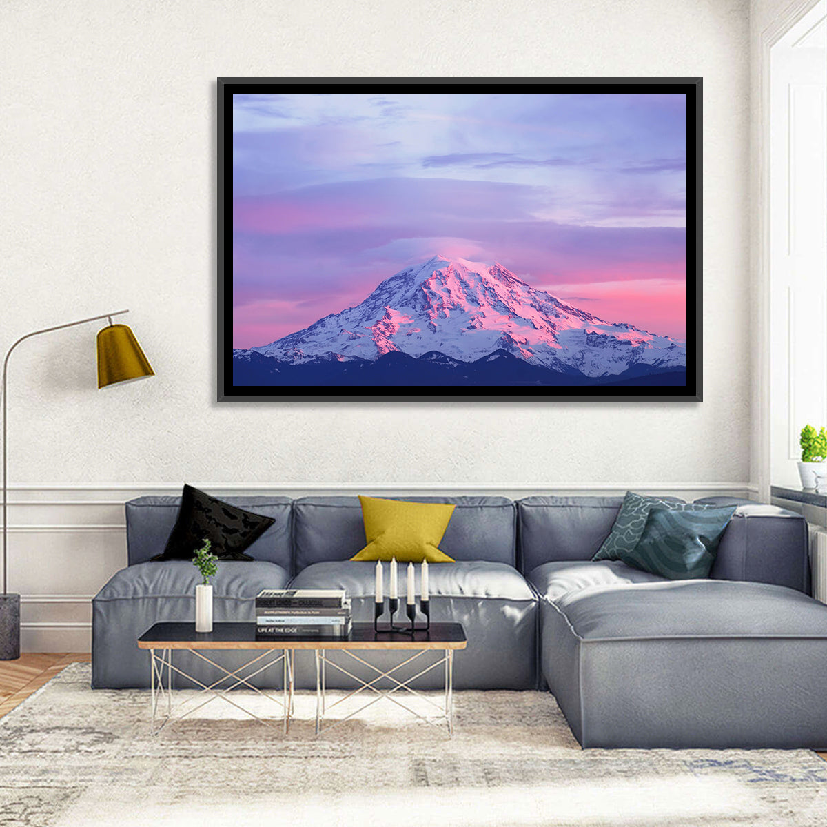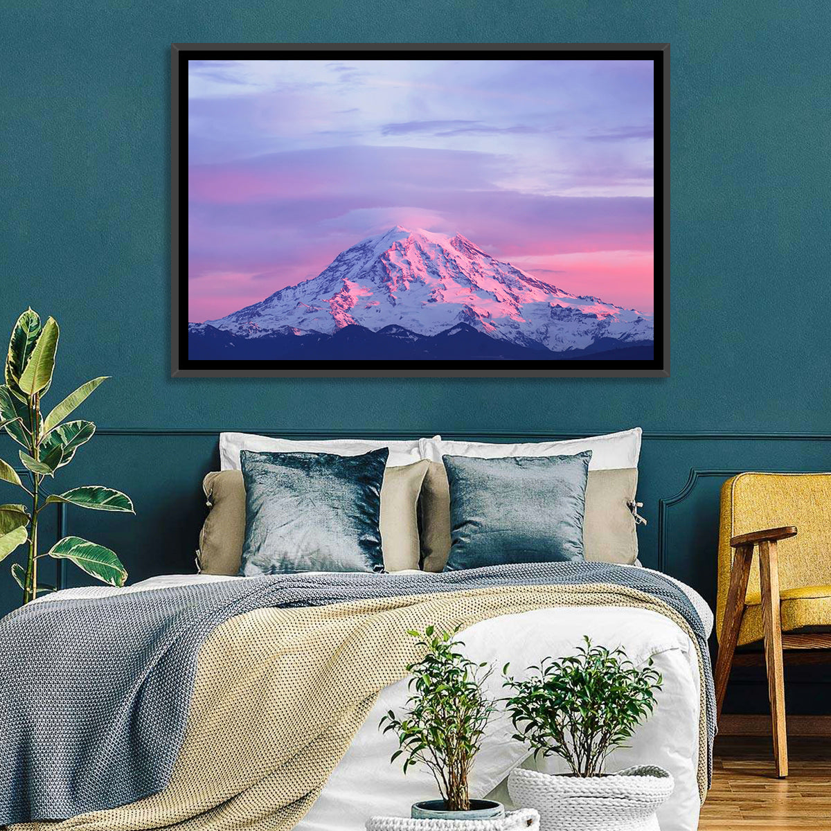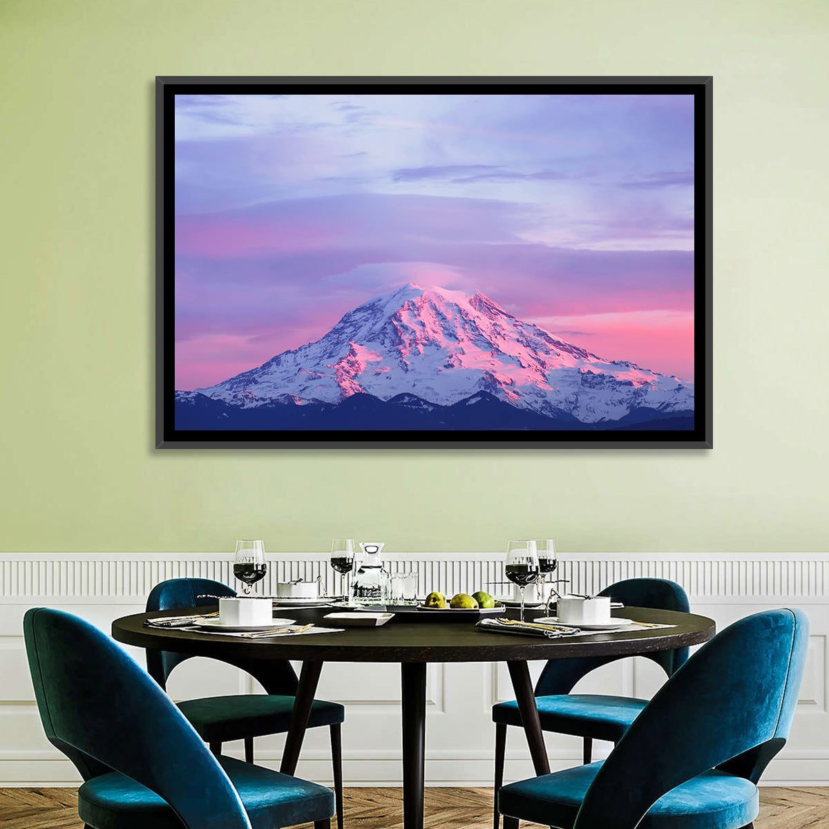 Whether you love art or just looking to decorate your home, this striking and powerful Mount Rainier Sunset Wall Art is an eye-catching decor element that can't go unnoticed. This art print by CanvasPiece is designed to resonate and spark a mix of feelings.