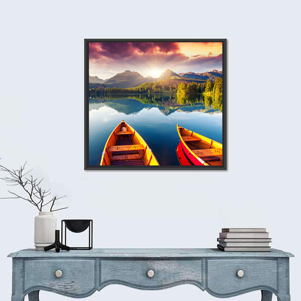 This Mountain Lake In Slovakia Wall Art by CanvasPiece is a must-have for art lovers and home decorators. Featuring the breathtaking scenery of National Park High Tatra, Strbske pleso, and dramatic overcast skies, this print is a striking and captivating addition to any space. Elevate your decor with this powerful piece.