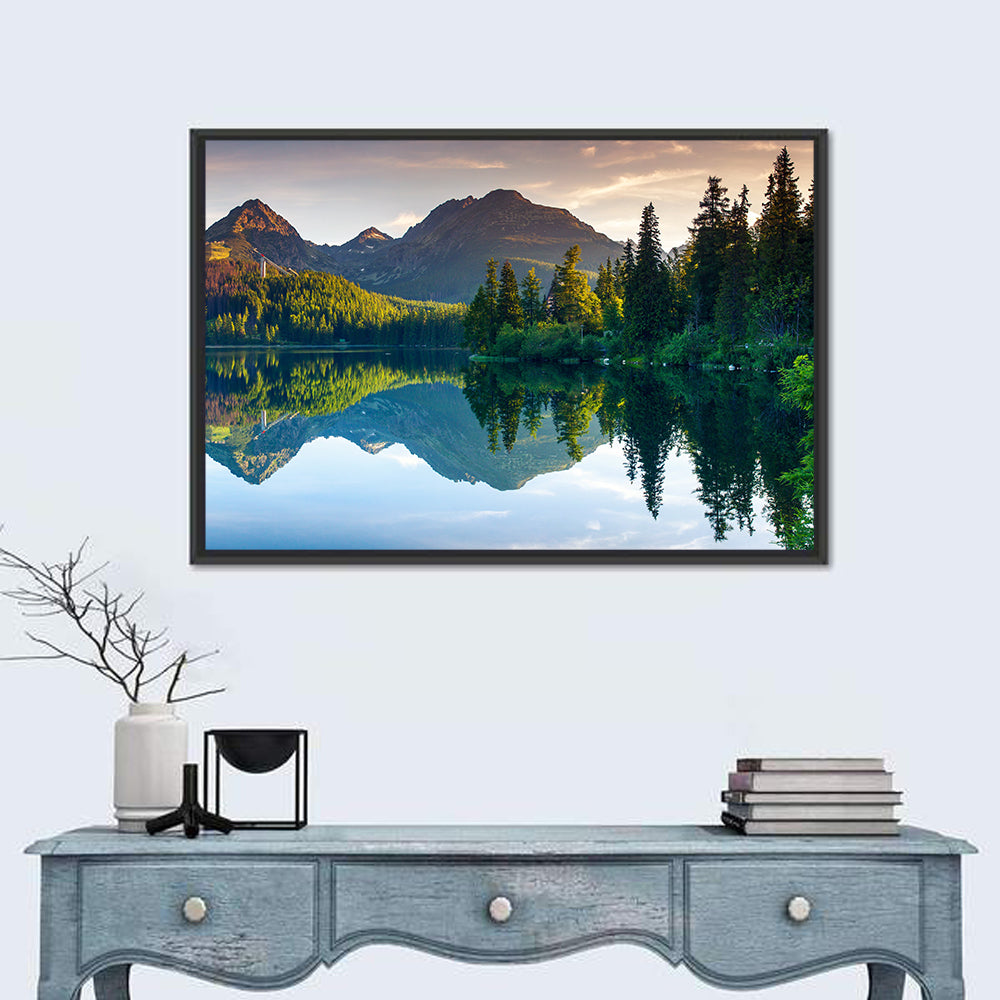 Introduce a touch of nature to your home with the Mountain Lake In Slovakia Wall Art. This beautiful print features the stunning and powerful scenery of the High Tatra National Park in Slovakia, Europe. Crafted by CanvasPiece, it's the perfect decor piece to add a sense of peace and awe to your space.