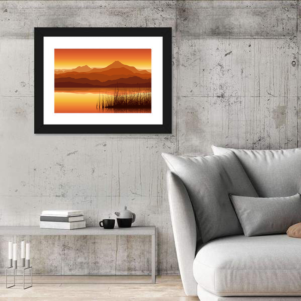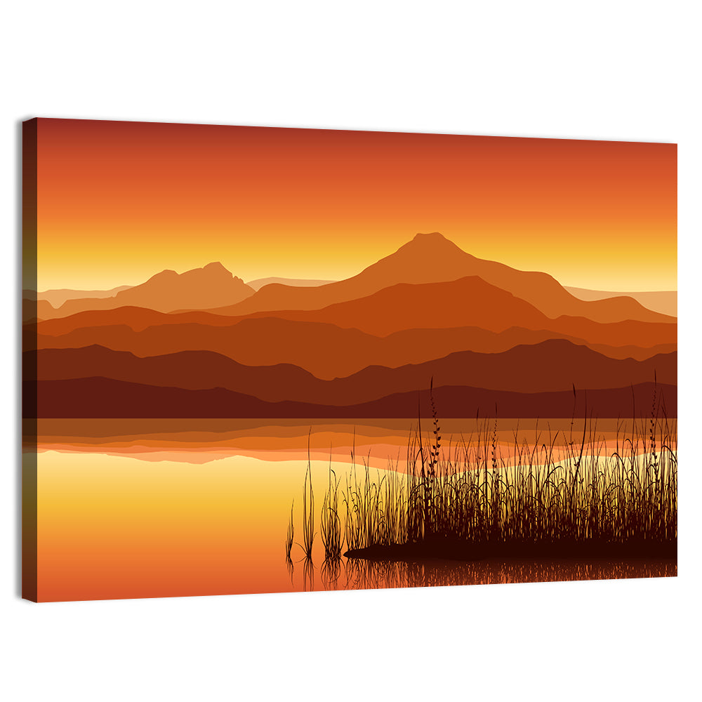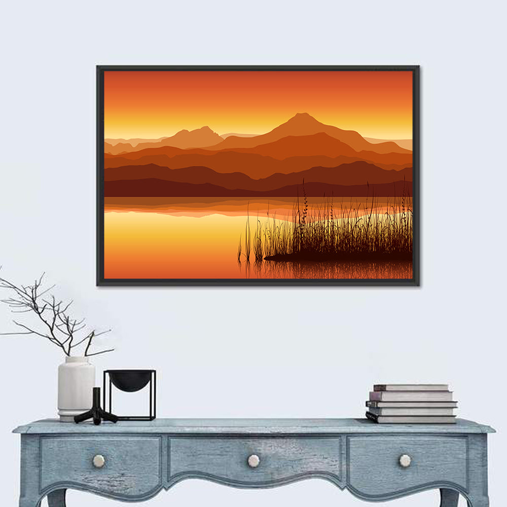 Whether you love art or just looking to decorate your home, this striking and powerful mountain lake sunset wall art is an eye-catching decor element that can't go unnoticed. This art print by CanvasPiece is designed to resonate and spark a mix of feelings.