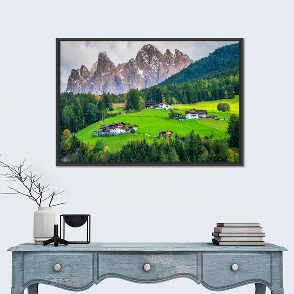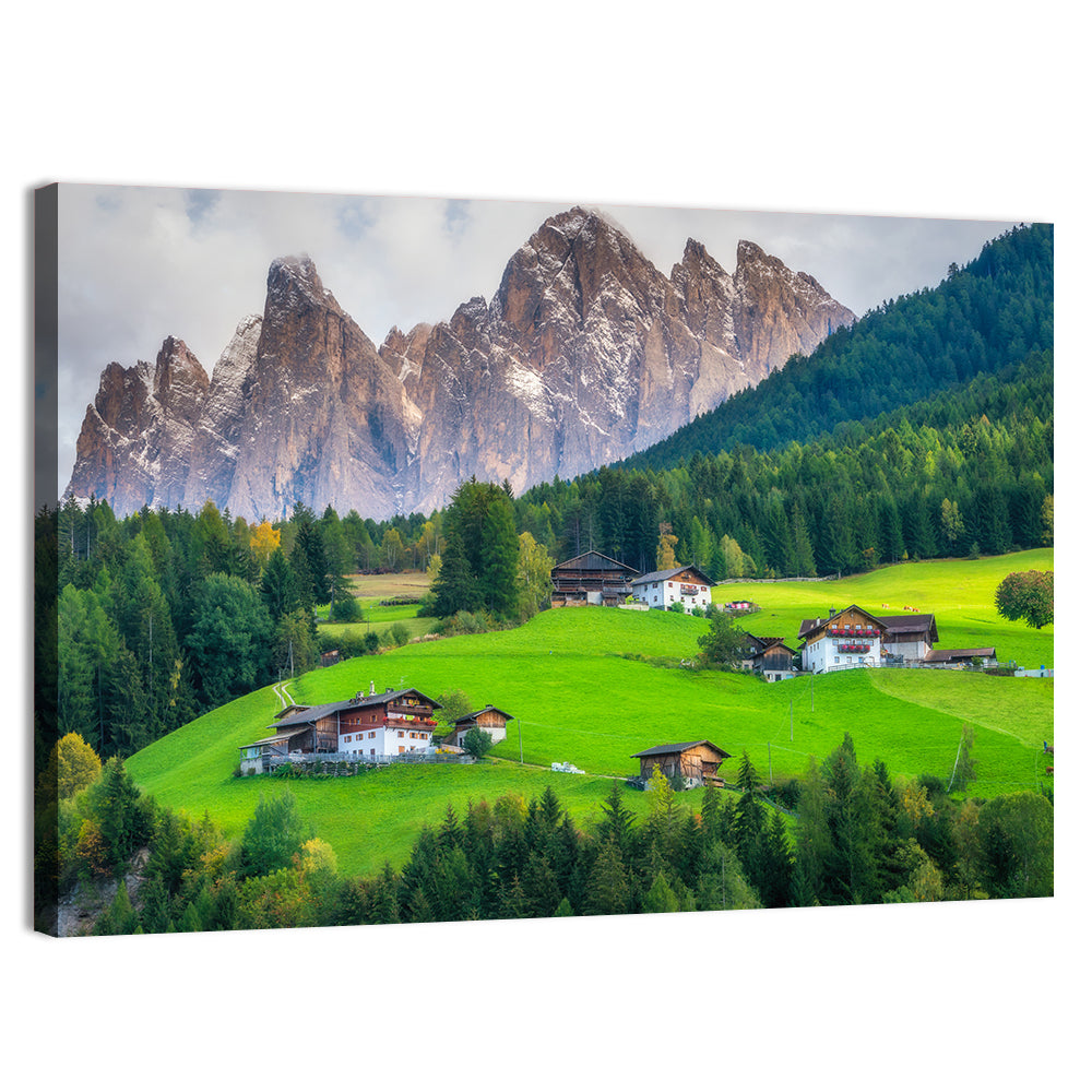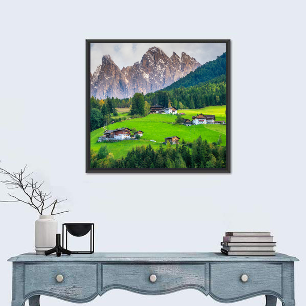 Add a touch of beauty and wonder to your home with this exquisite Mountain Village In Villnoss wall art by CanvasPiece. Featuring the stunning scenery of Geisler Mountain Group in Puez-Geisler Nature Park, this print is sure to evoke a sense of awe and inspiration. Elevate your decor with this striking and powerful piece.