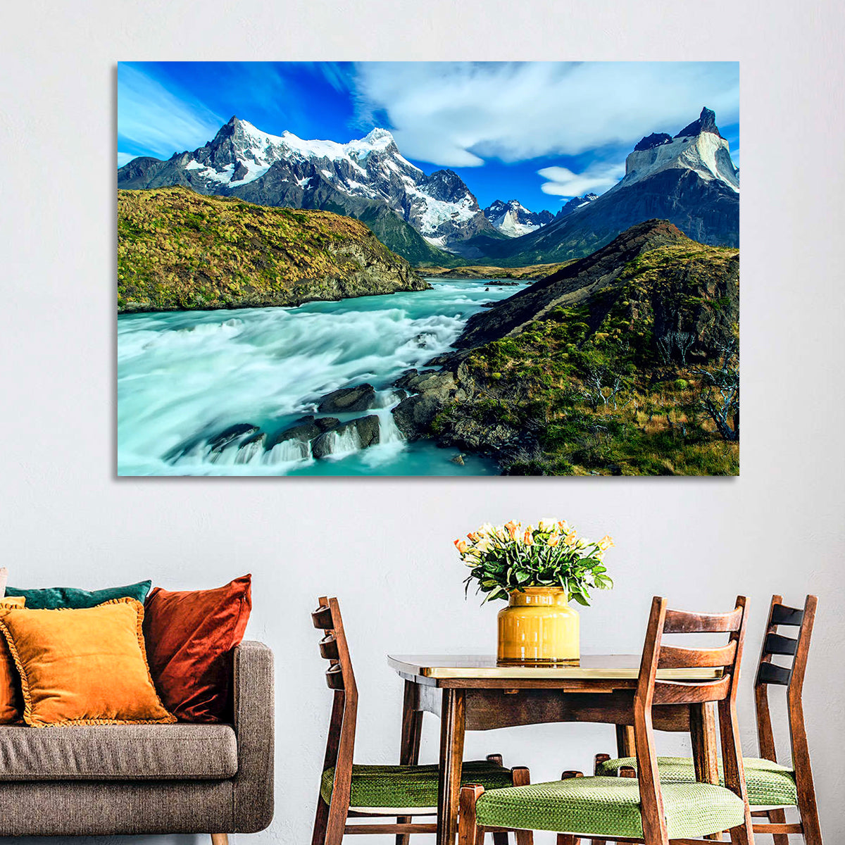 Whether you love art or just looking to decorate your home, this striking and powerful Mountains Stream Wall Art is an eye-catching decor element that can't go unnoticed. This art print by CanvasPiece is designed to resonate and spark a mix of feelings.
