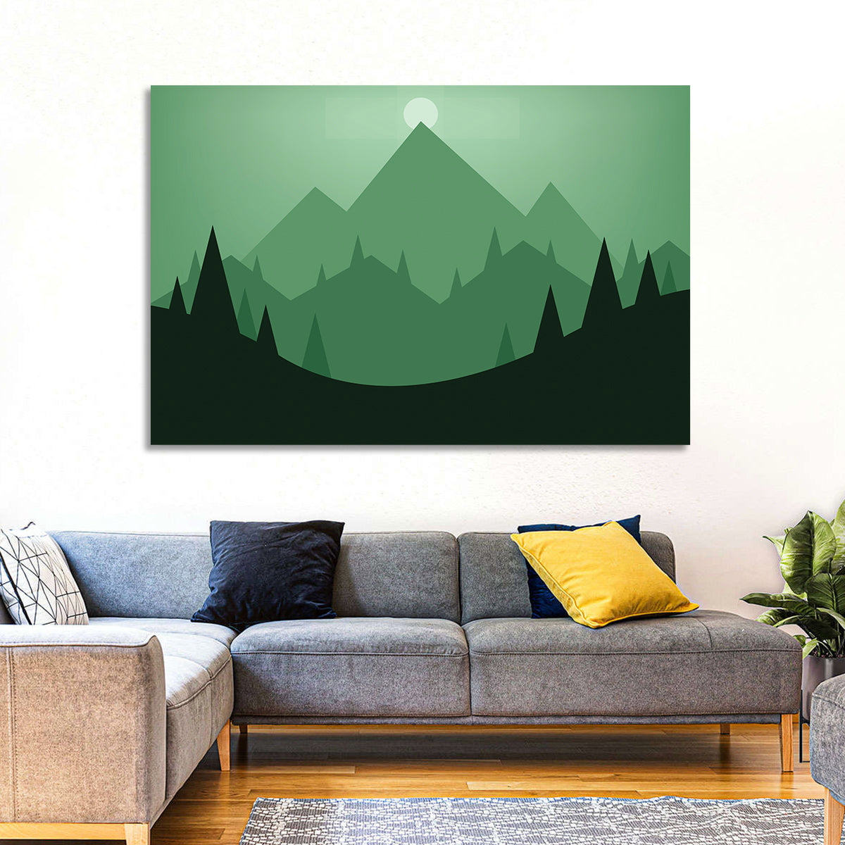 Whether you love art or just looking to decorate your home, this striking and powerful Mountains Sunset Illustration Wall Art is an eye-catching decor element that can't go unnoticed. This art print by CanvasPiece is designed to resonate and spark a mix of feelings.