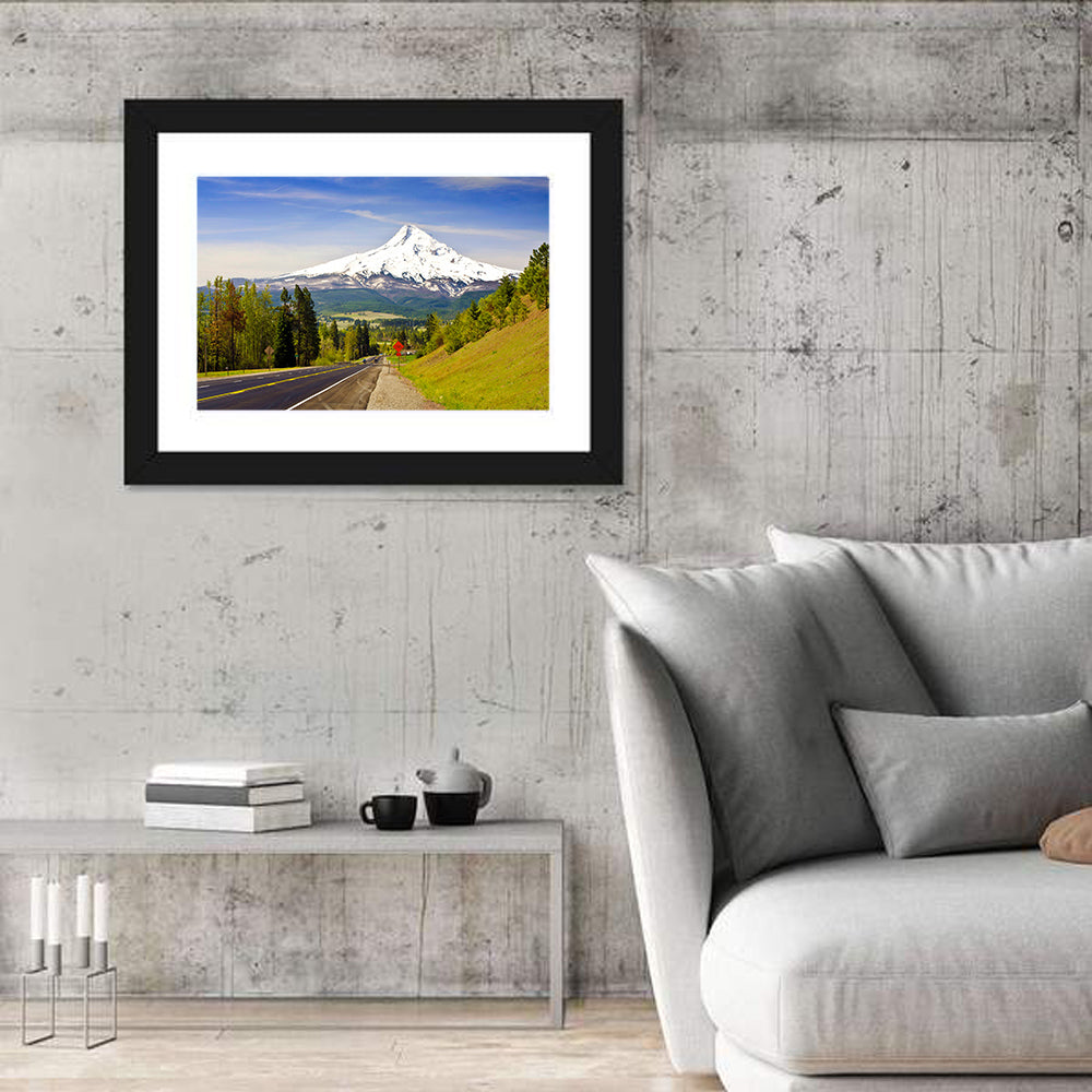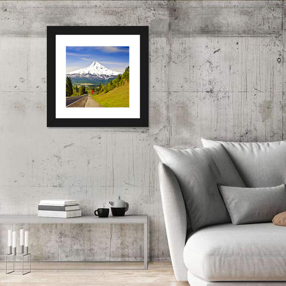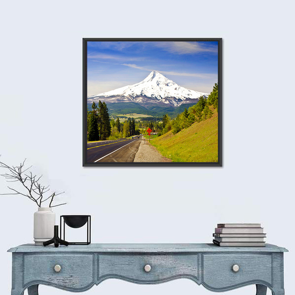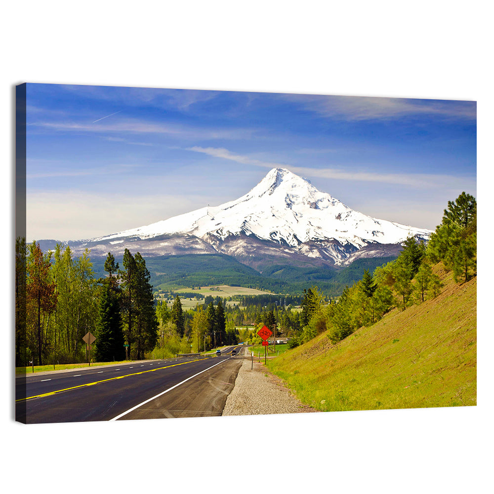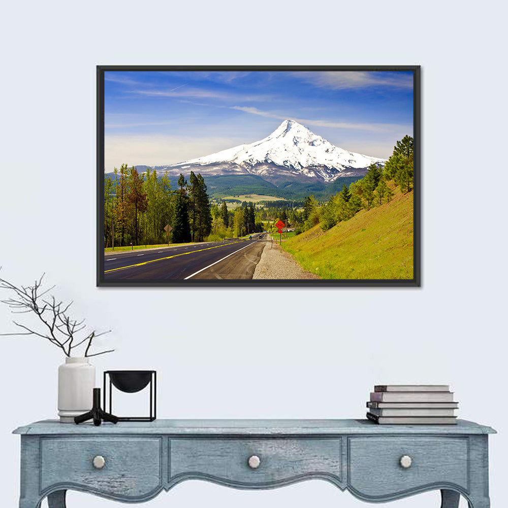 Whether you love art or just looking to decorate your home, this striking and powerful Mt Hood from a Road wall art is an eye-catching decor element that can't go unnoticed. This art print by CanvasPiece is designed to resonate and spark a mix of feelings.