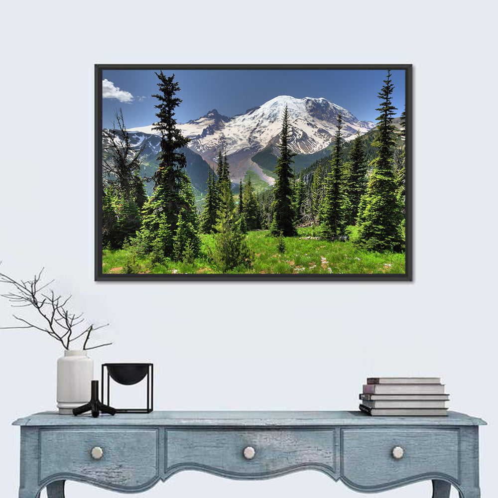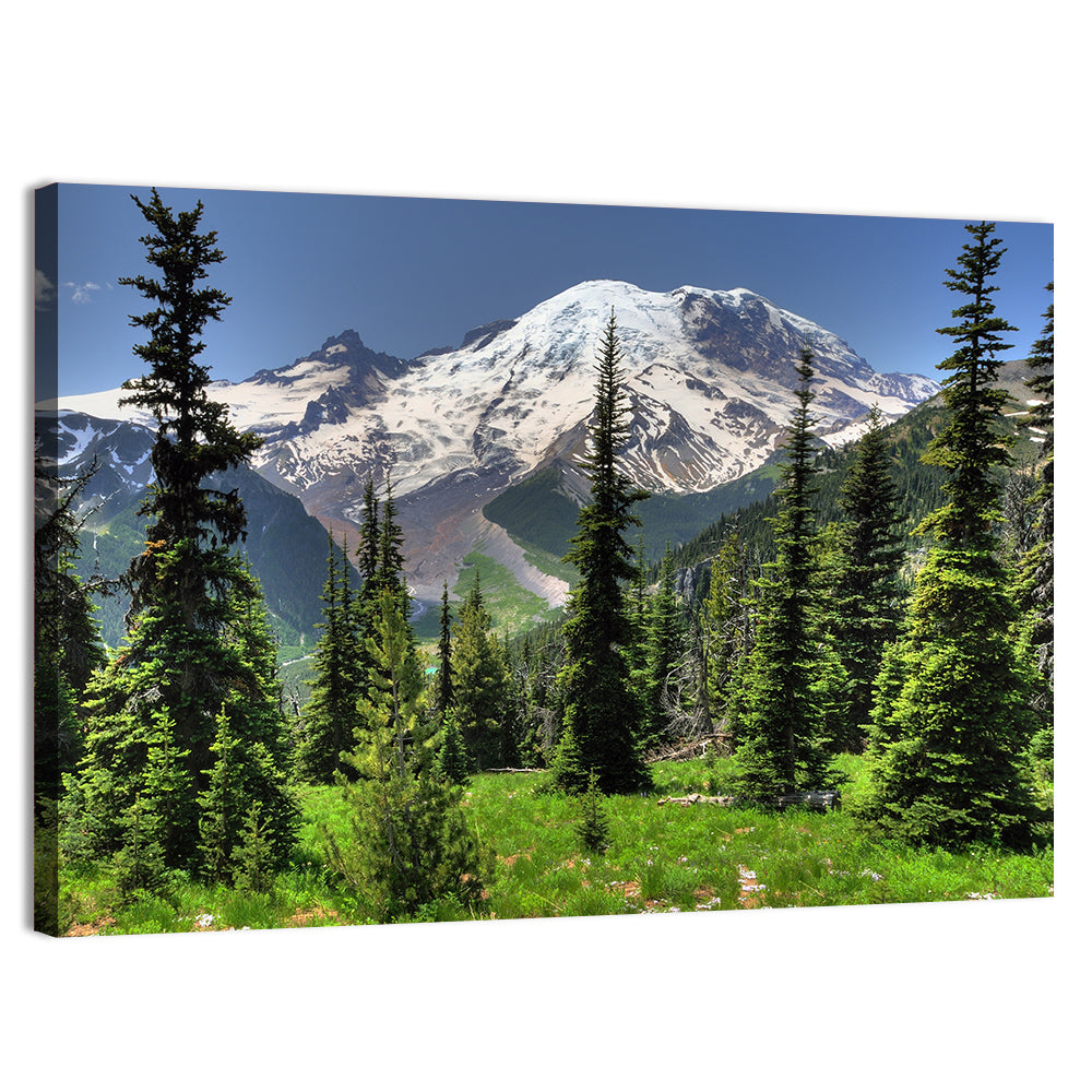 Mt Rainier & Conical Pine Trees Wall Art