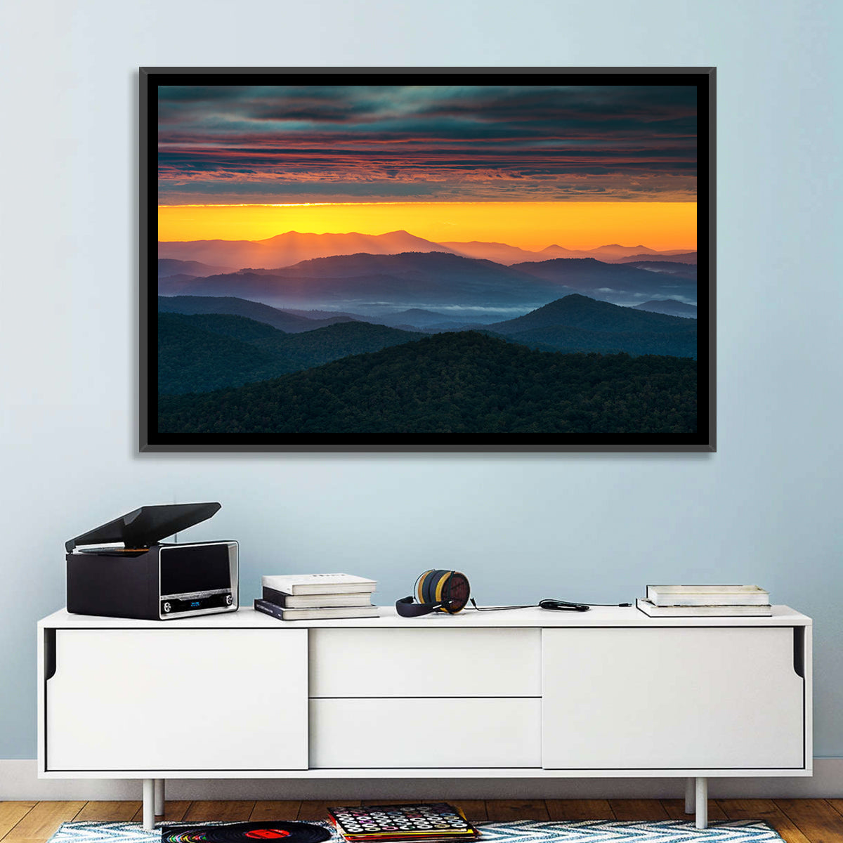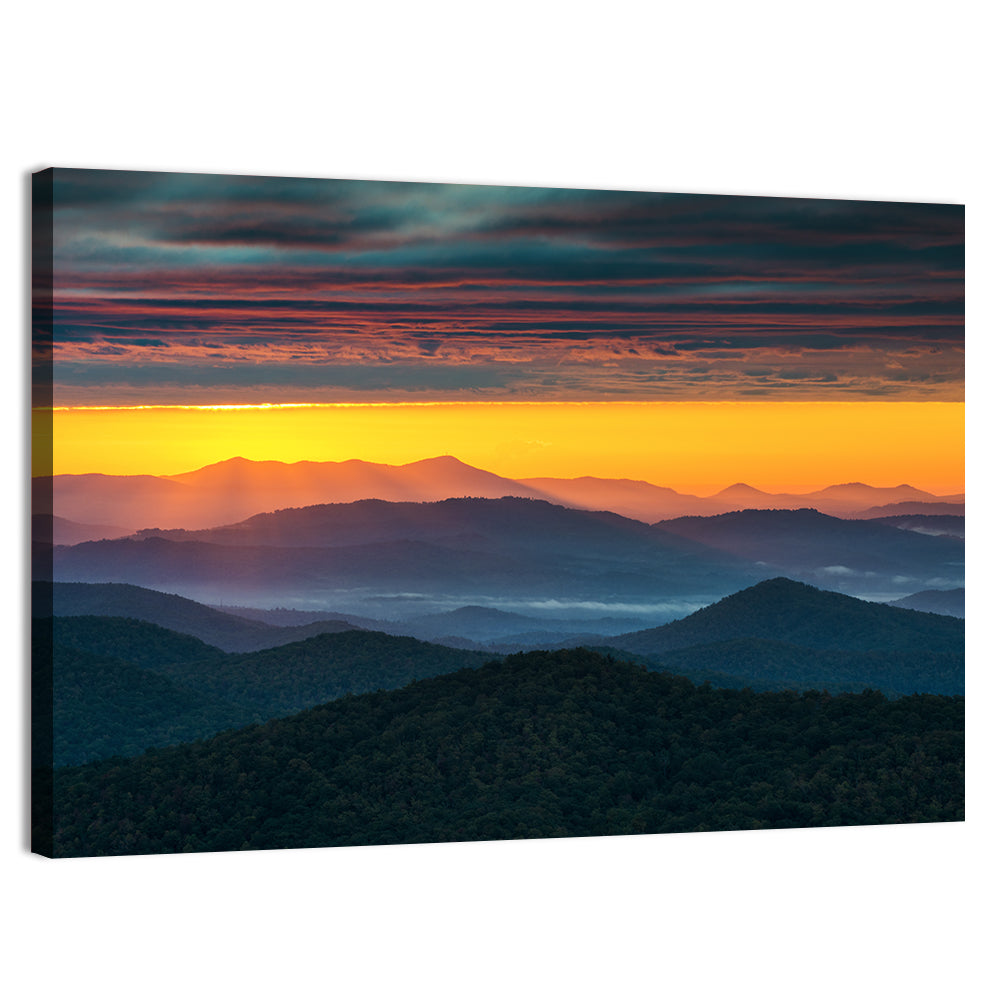 Whether you love art or just looking to decorate your home, this striking and powerful North Carolina Blue Ridge Sunrise Wall Art is an eye-catching decor element that can't go unnoticed. This art print by CanvasPiece is designed to resonate and spark a mix of feelings.