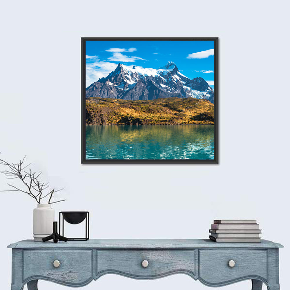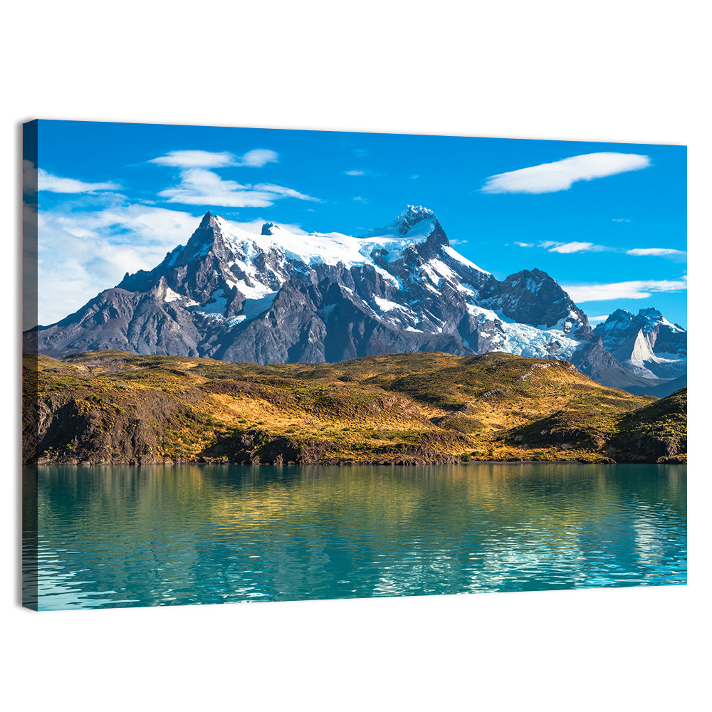 Experience the breathtaking beauty of Patagonia's Peaks of Torres del Paine with this stunning wall art by CanvasPiece. Adorn your home with a striking and powerful piece that captures the essence of the National Park. An eye-catching decor element that will evoke a mix of emotions.