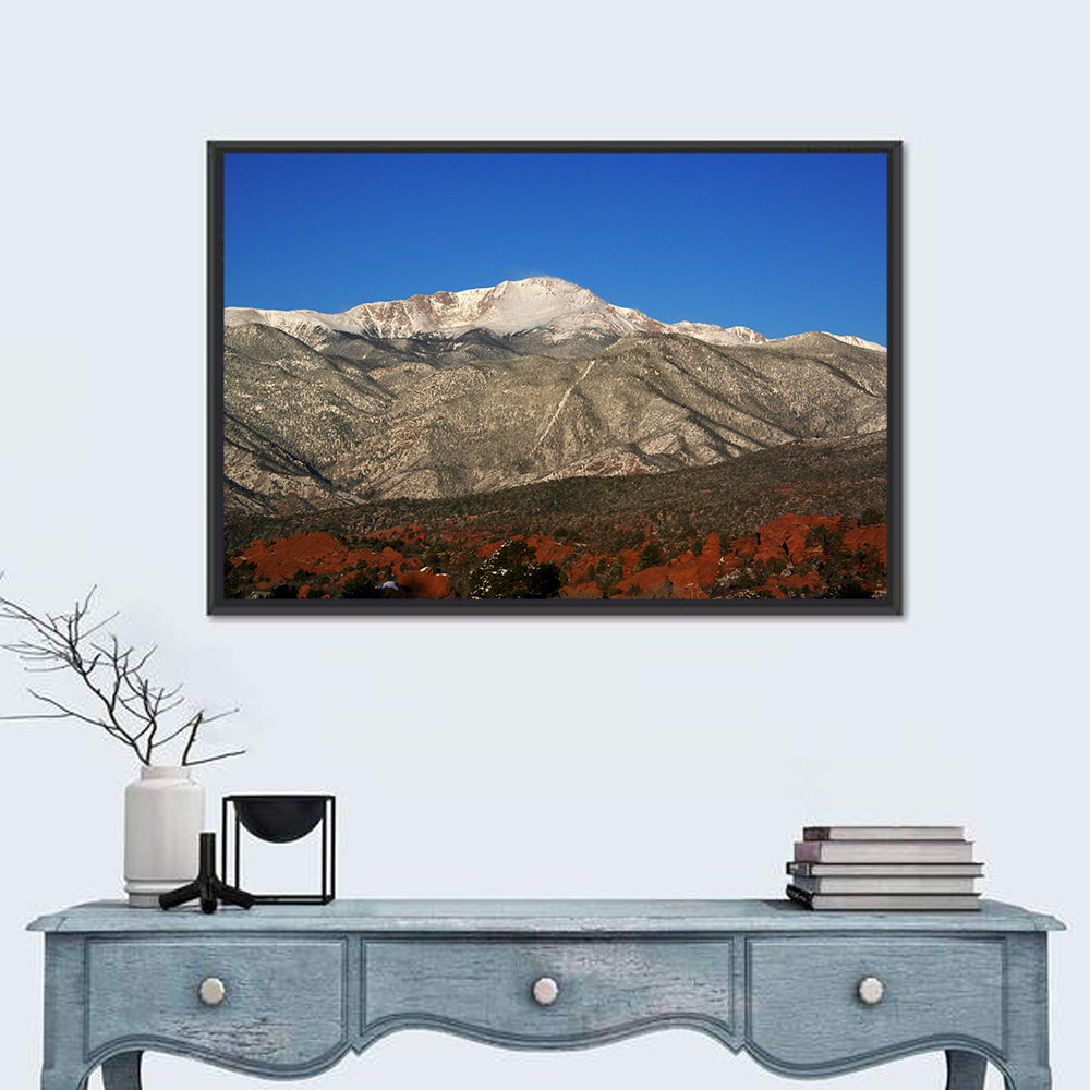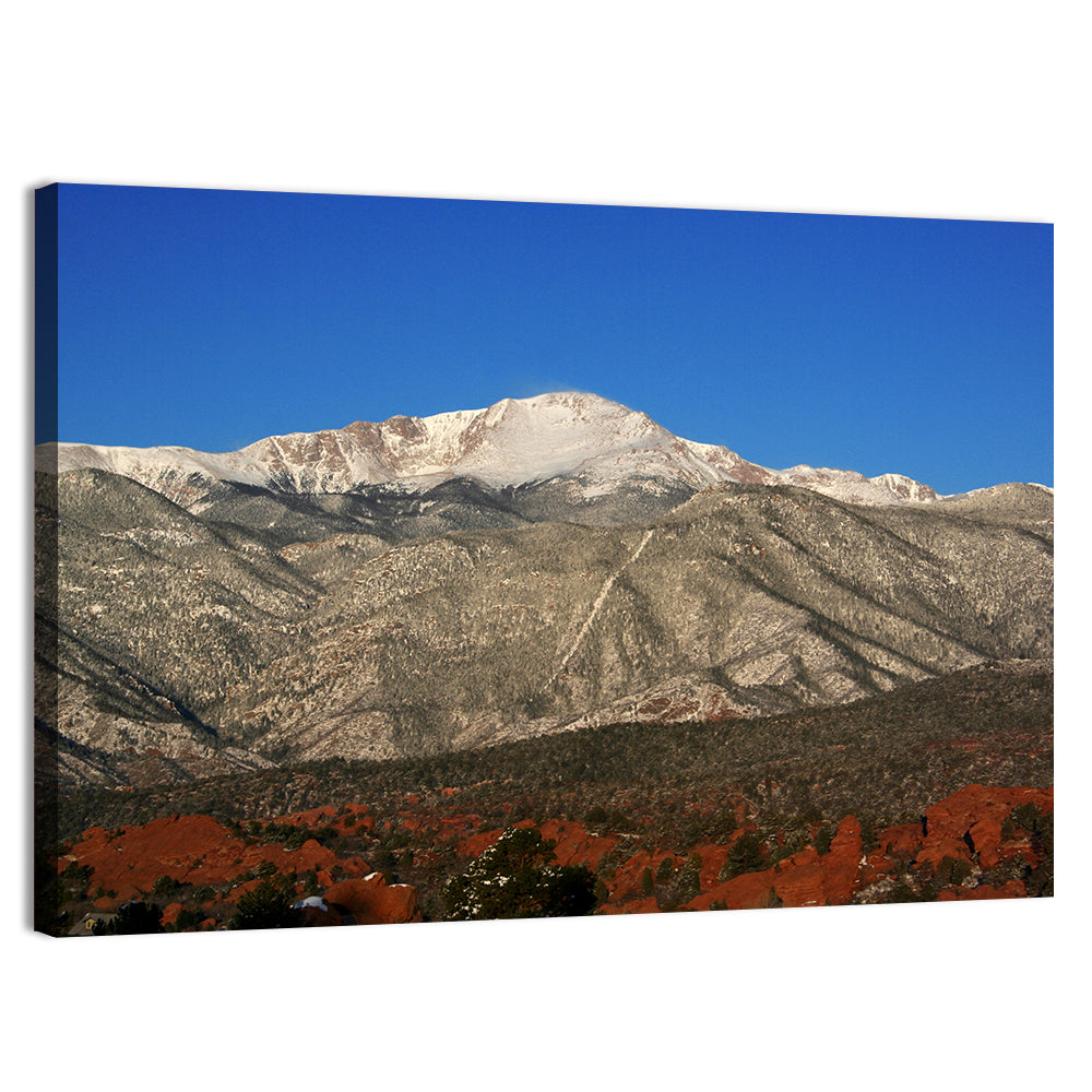 Whether you love art or just looking to decorate your home, this striking and powerful Pikes Peak mountain range from Garden of the Gods in Colorado Springs wall art is an eye-catching decor element that can't go unnoticed. This art print by CanvasPiece is designed to resonate and spark a mix of feelings.