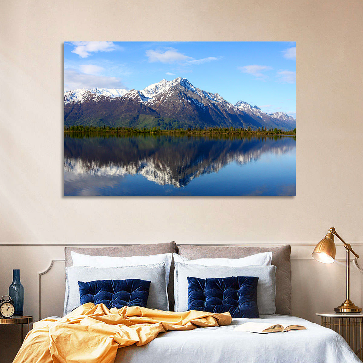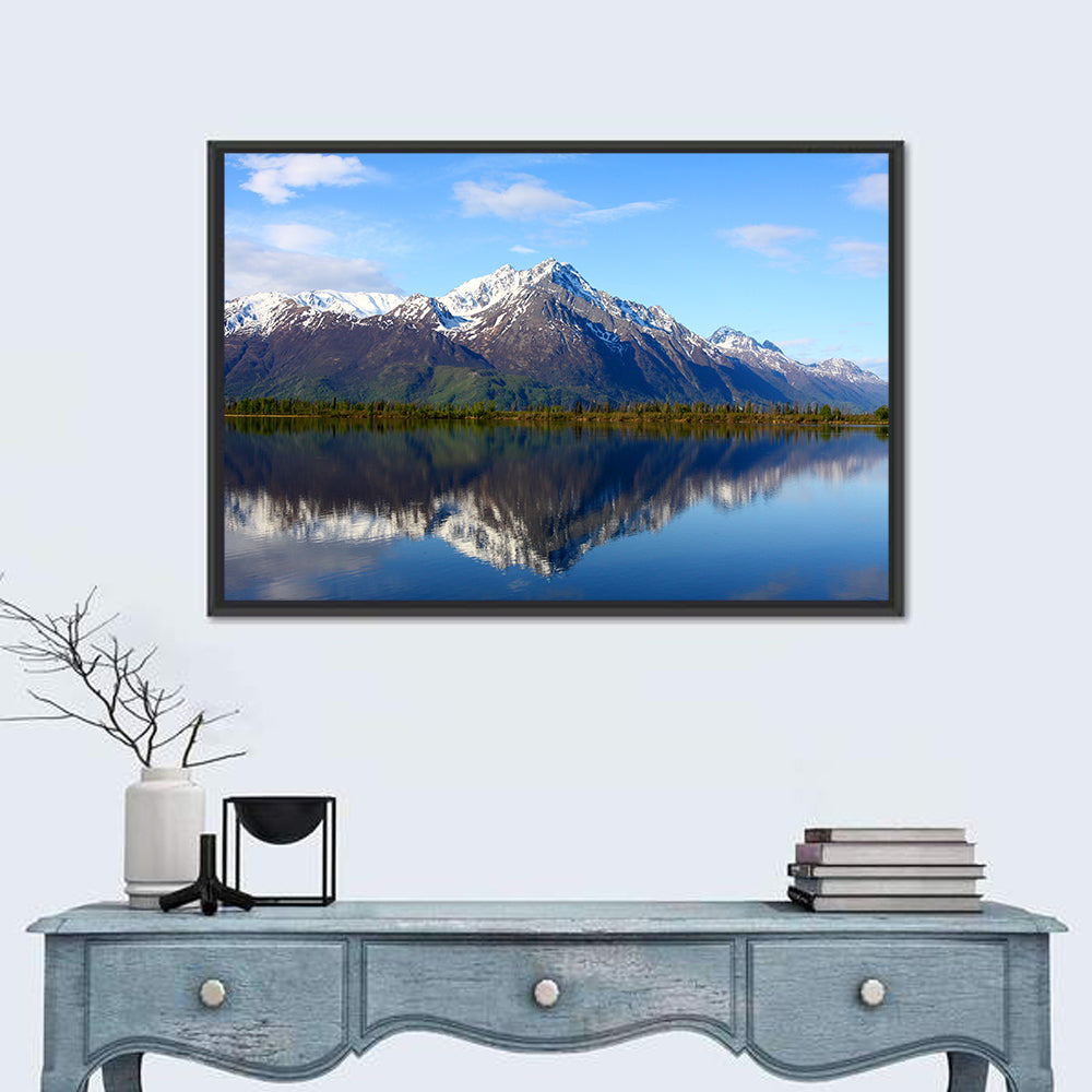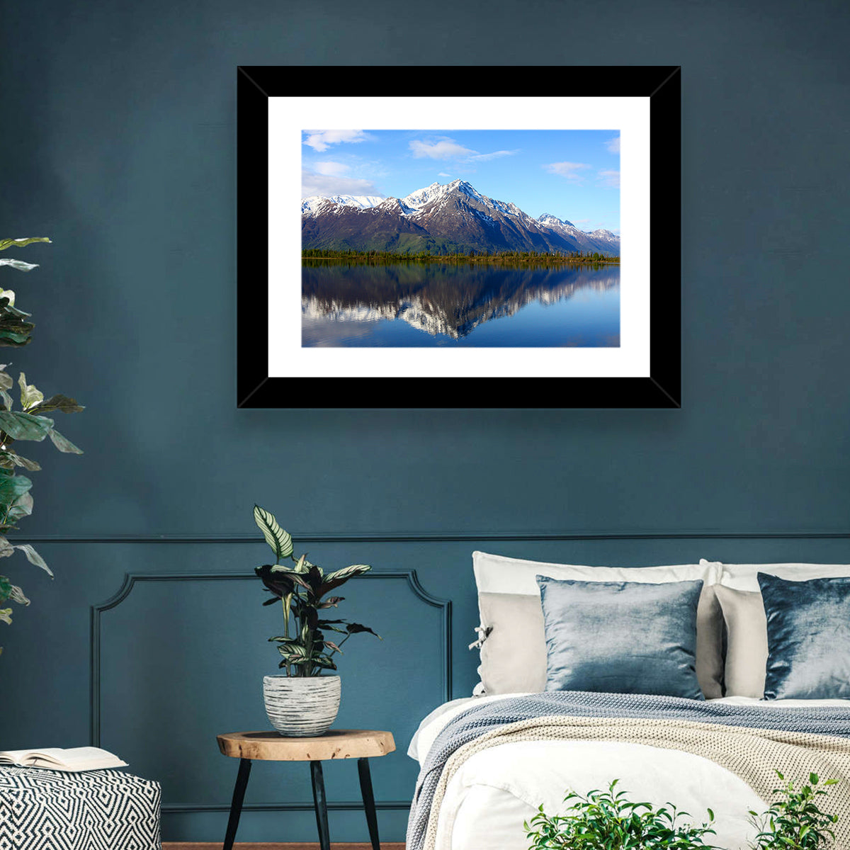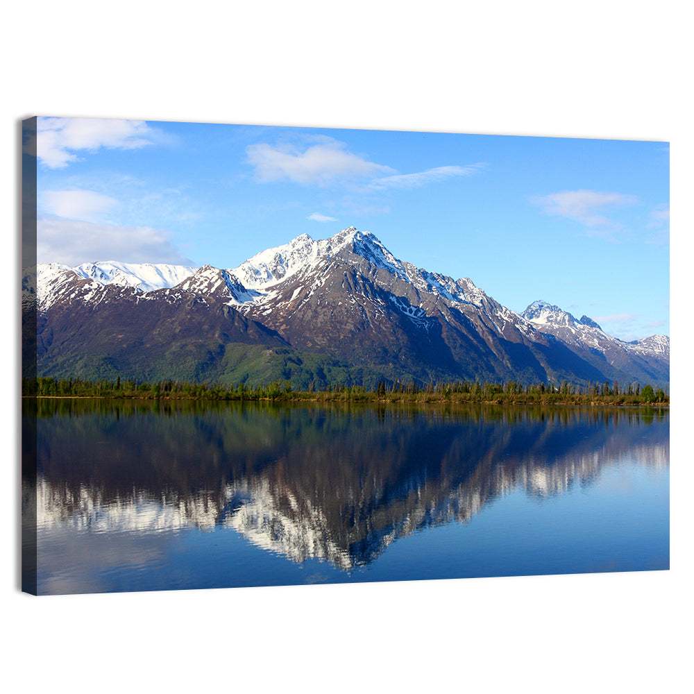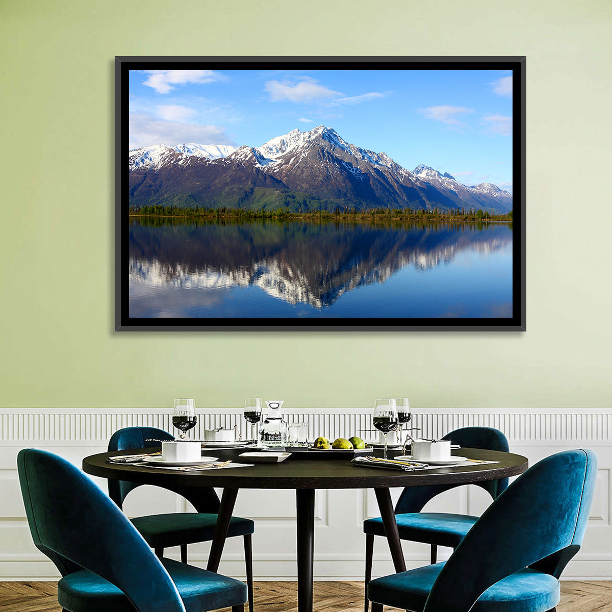 Whether you love art or just looking to decorate your home, this striking and powerful Pioneer Peak reflected in Jim Lake Alaska Wall Art is an eye-catching decor element that can't go unnoticed. This art print by CanvasPiece is designed to resonate and spark a mix of feelings.
