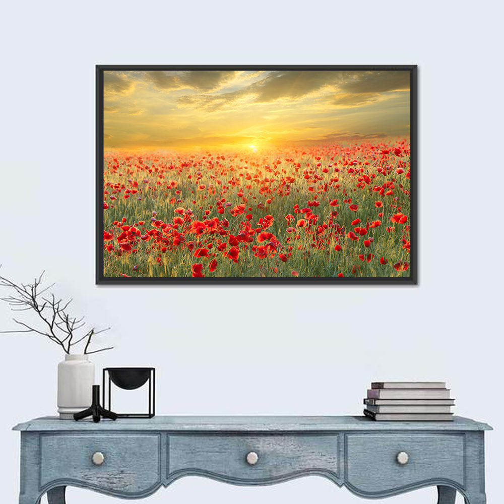 Poppy Field On Sunset Wall Art