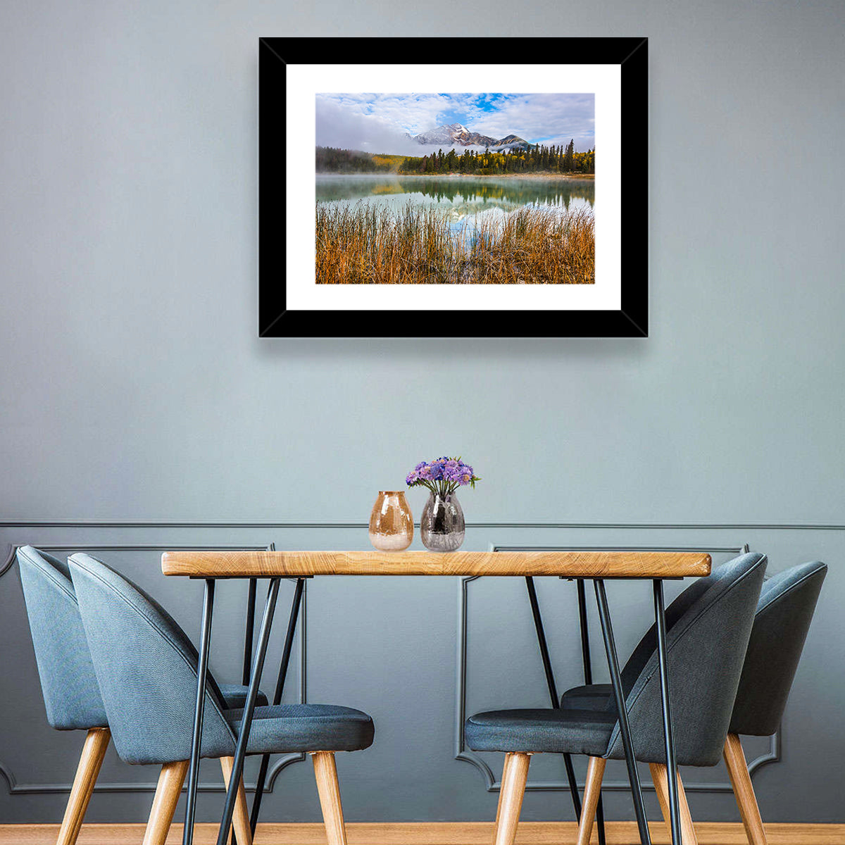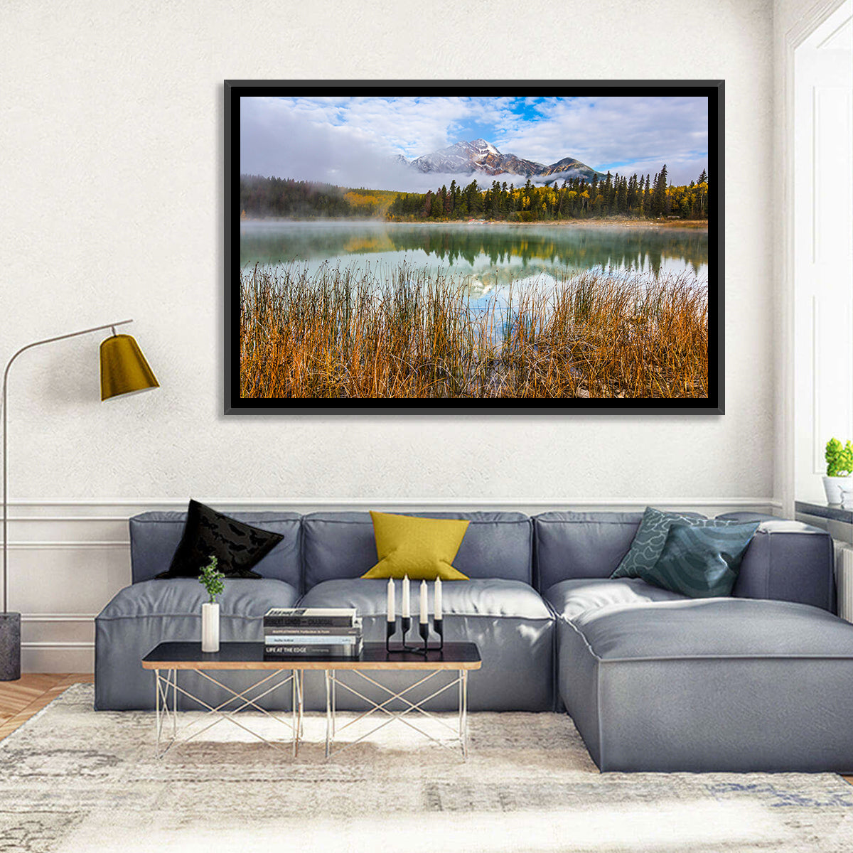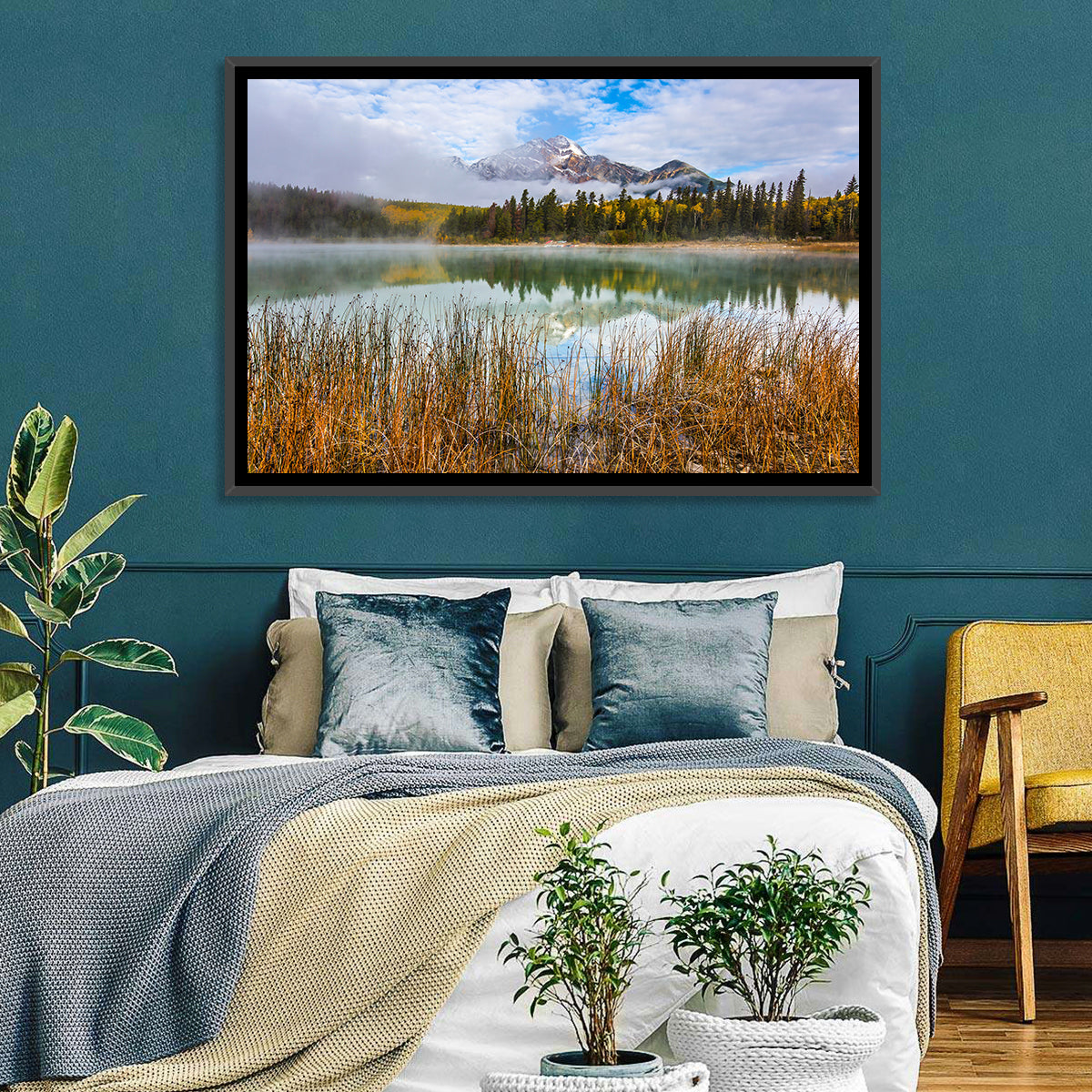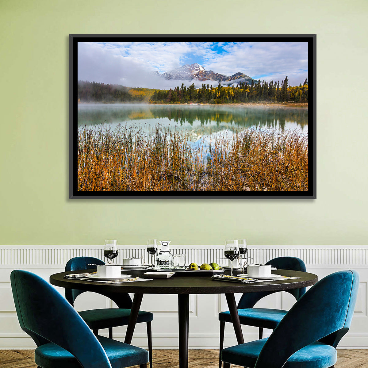 Whether you love art or just looking to decorate your home, this striking and powerful Patricia lake and Pyramid mountain Wall Art is an eye-catching decor element that can't go unnoticed. This art print by CanvasPiece is designed to resonate and spark a mix of feelings.